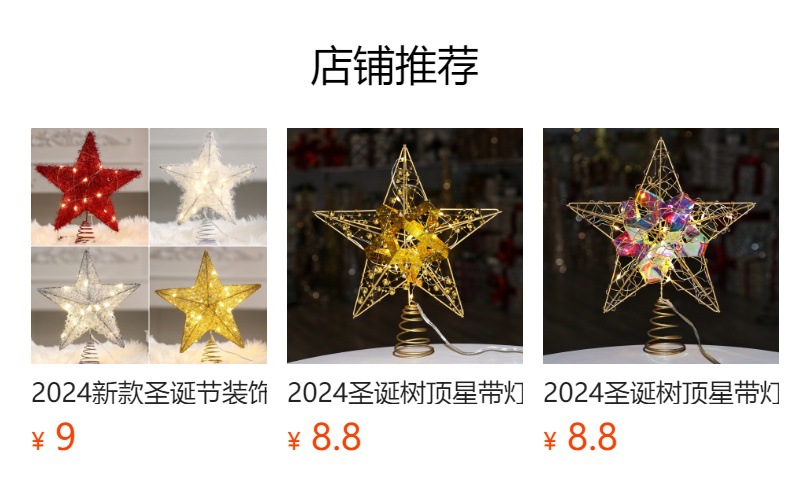 圣诞节装饰品圣诞树顶星 商场酒店橱窗民宿氛围装饰品 家居装饰品