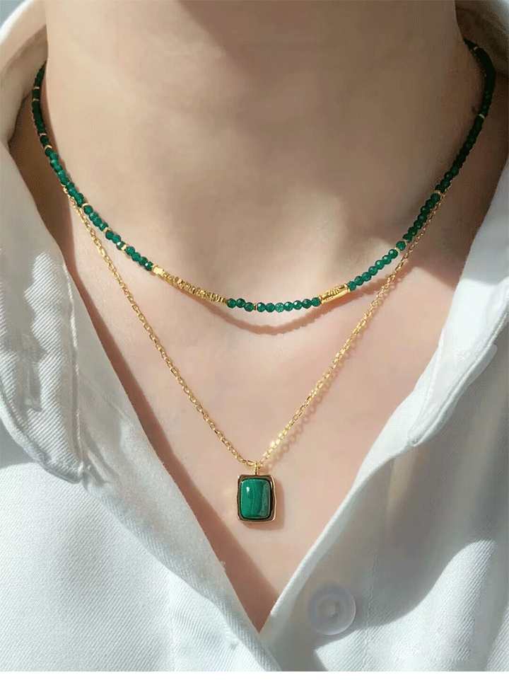 Kalung manik-manik beras kecil batu alam zamrud kalung klavikula manik-manik ceruk rasa tinggi semua cocok perhiasan gaya Tiongkok baru