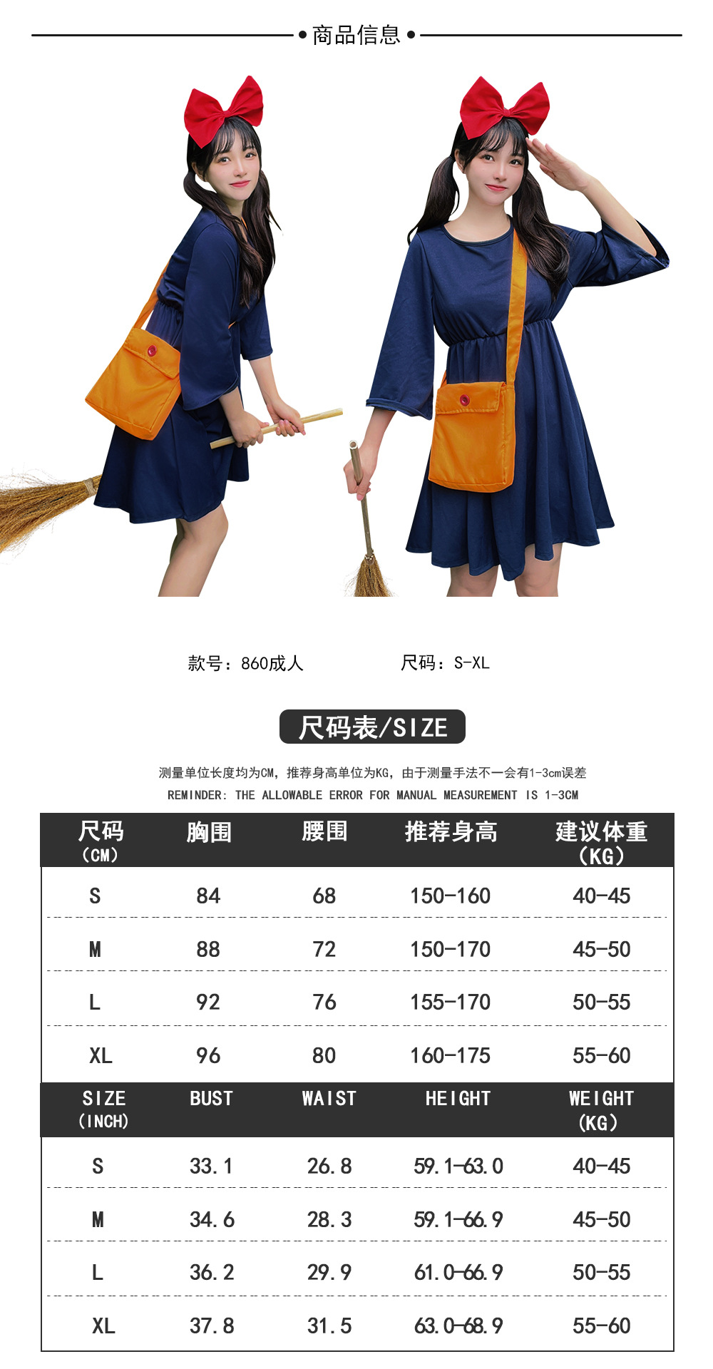 Cosplay dewasa dua dimensi putri gadis Iblis rumah mendesak Qiqi kostum bermain peran anime orangtua-anak