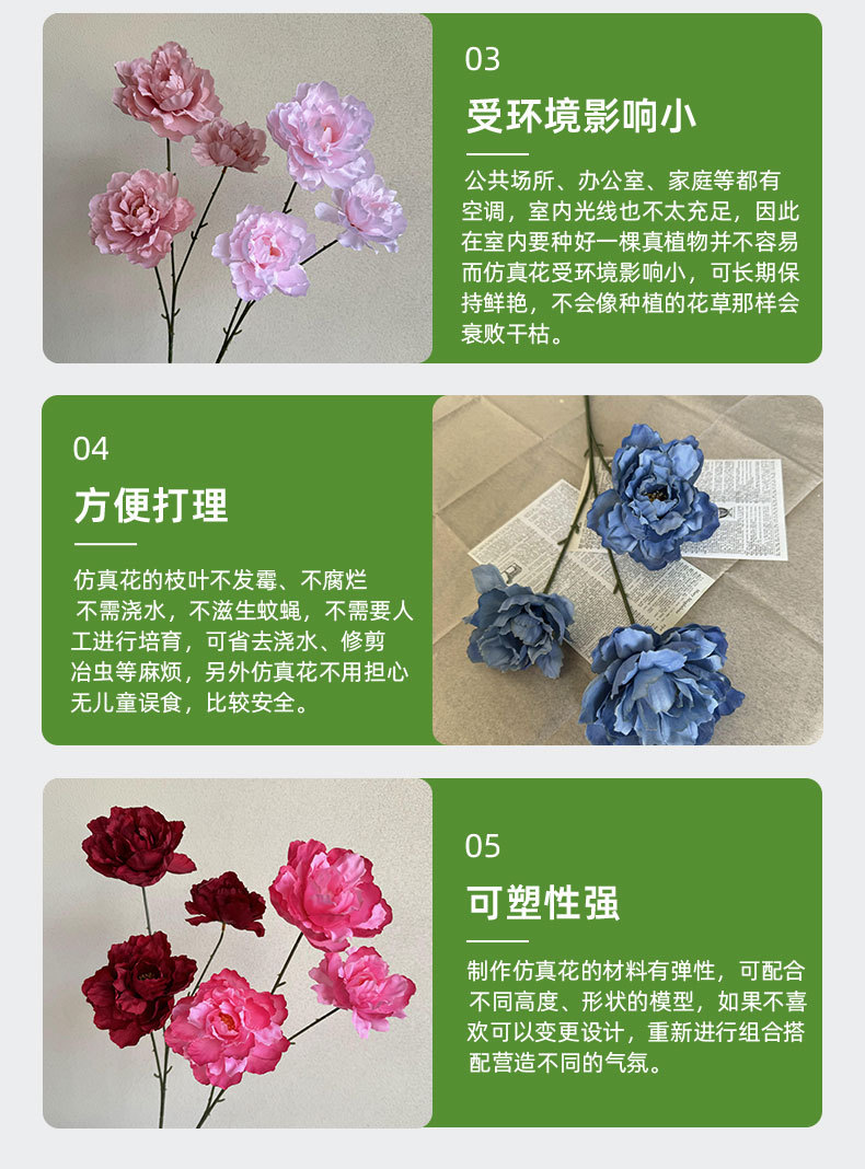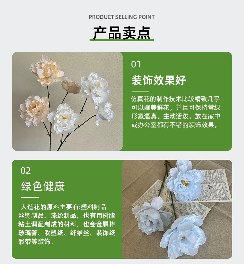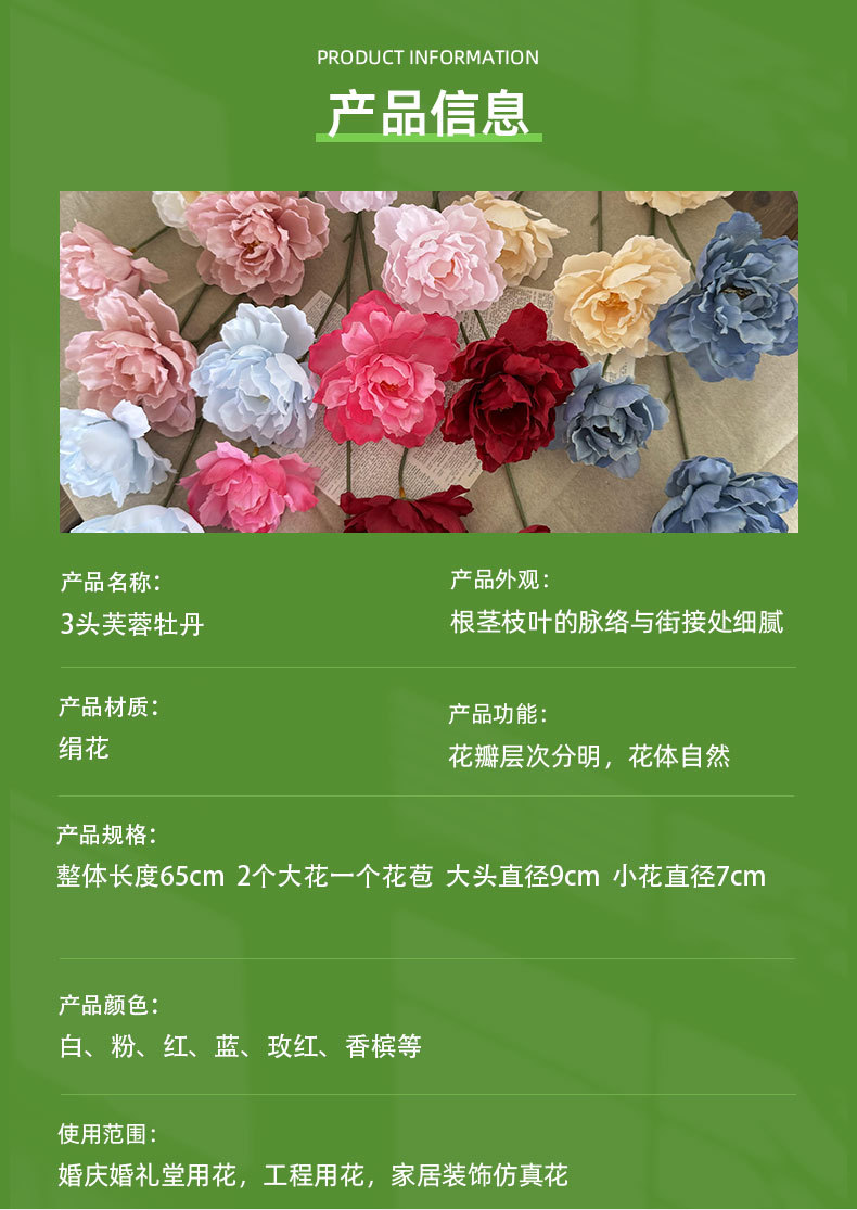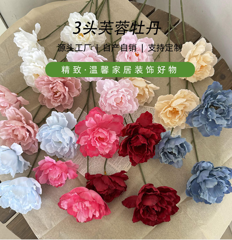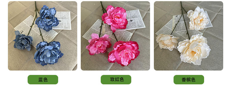 Bunga buatan 3-kepala kembang sepatu bunga peony sutra dekorasi pernikahan dekorasi panggung perlengkapan fotografi bunga palsu Spesial