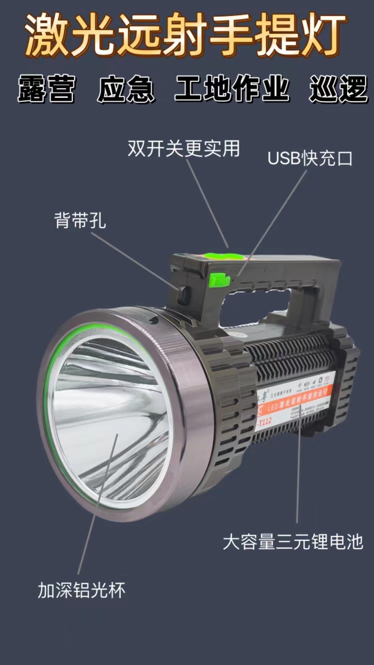 Lampu sorot portabel laser super terang lampu sorot LED lampu sorot tahan air baterai lithium tahan air