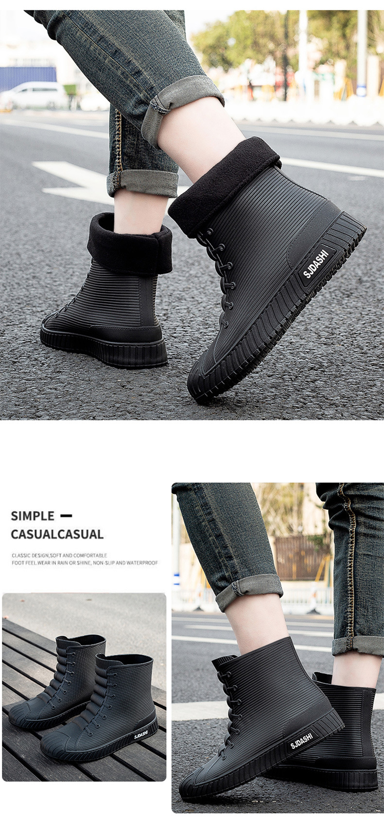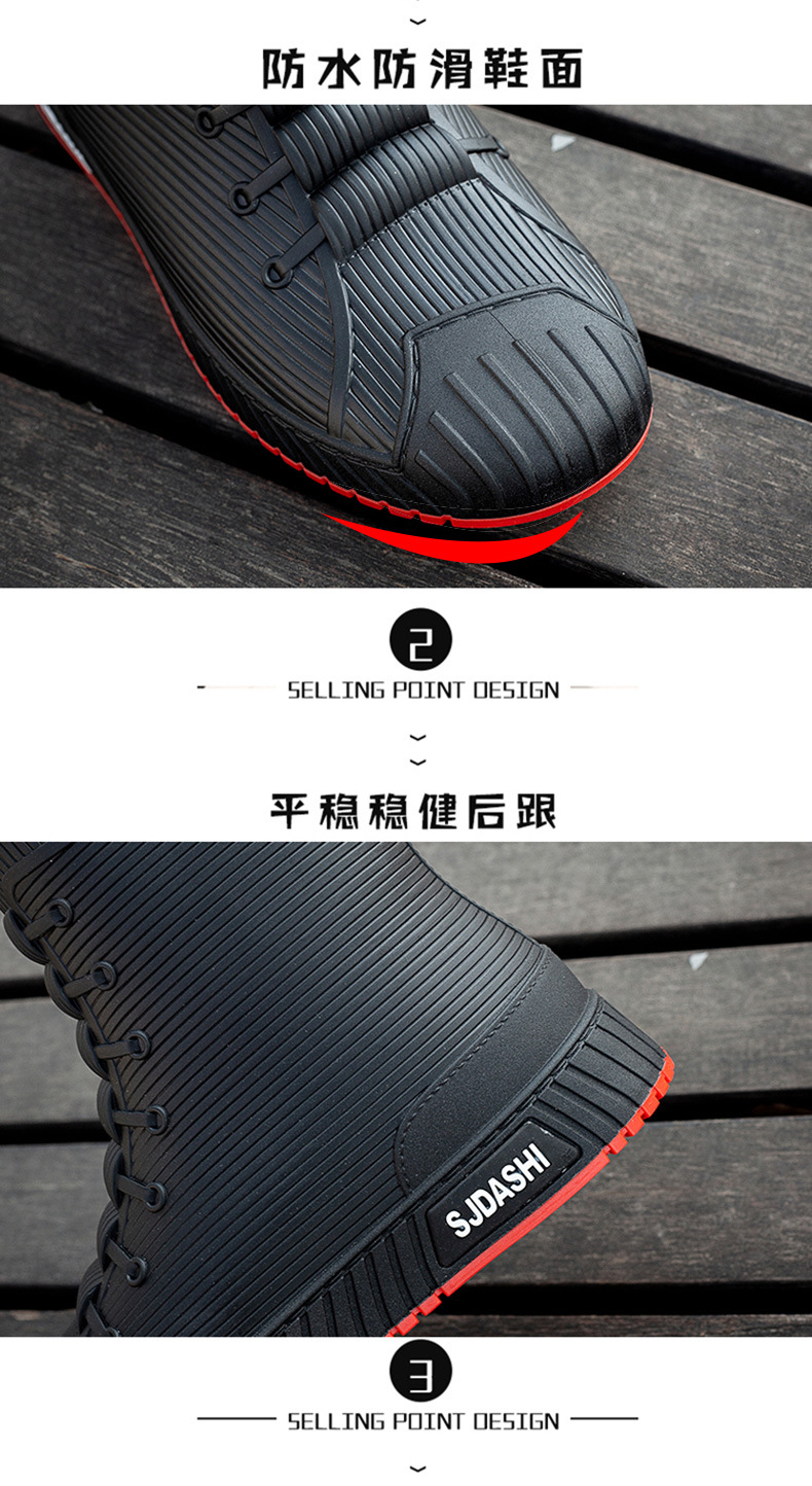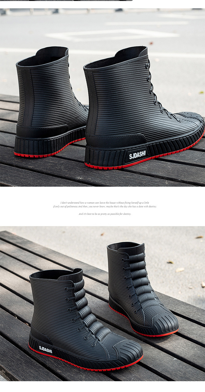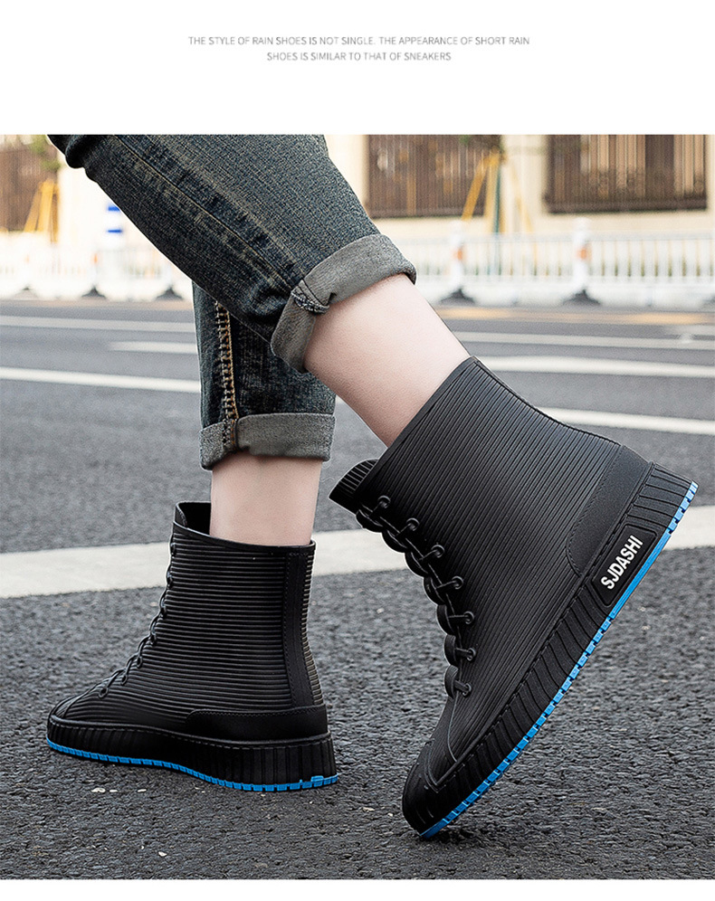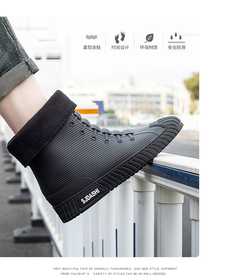 Sepatu bot hujan pria dan wanita, sepatu bot pasangan anti selip, sepatu tahan air tahan aus, sepatu karet gaya Korea plus beludru katun hangat