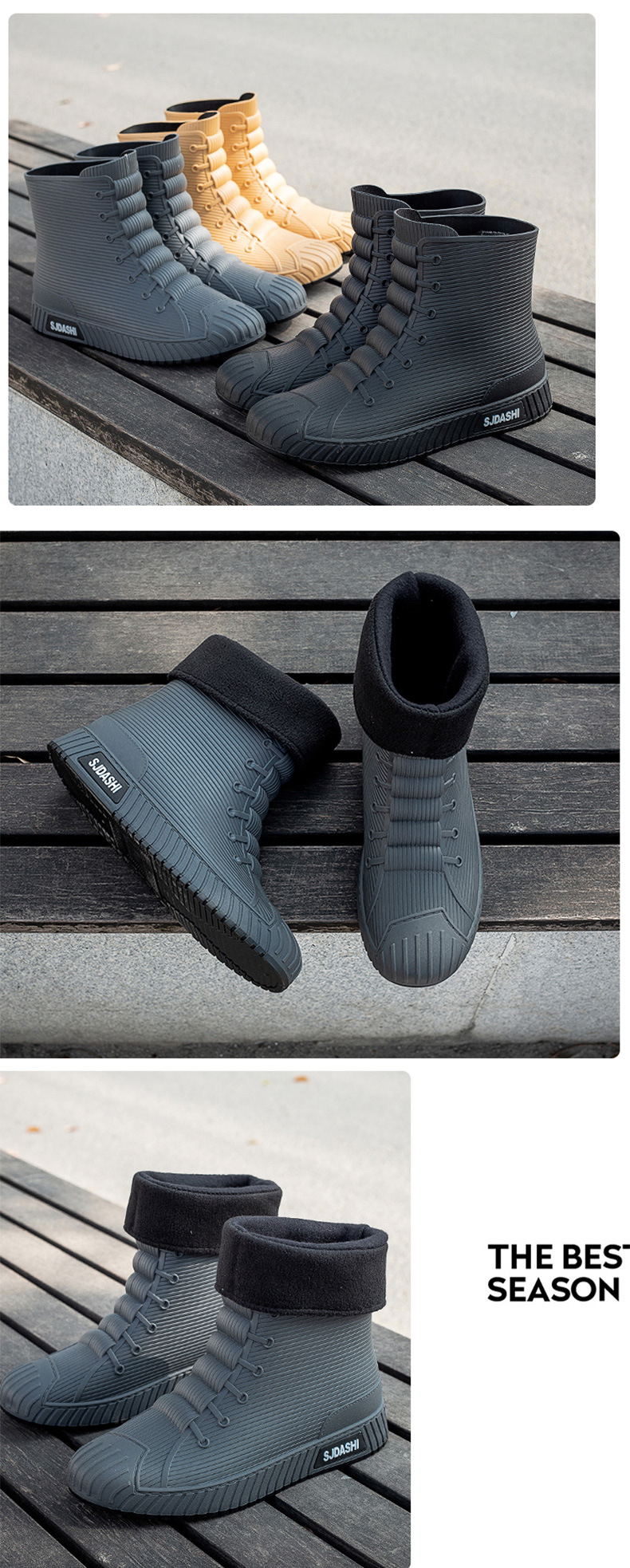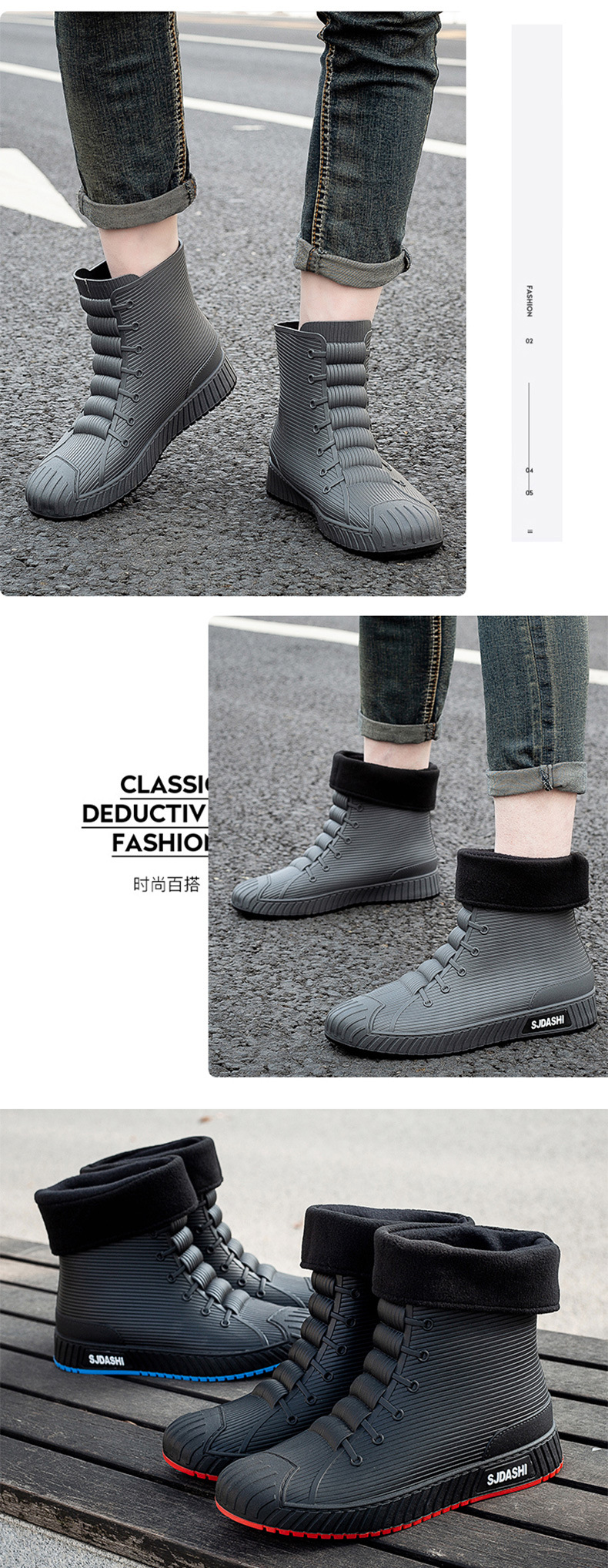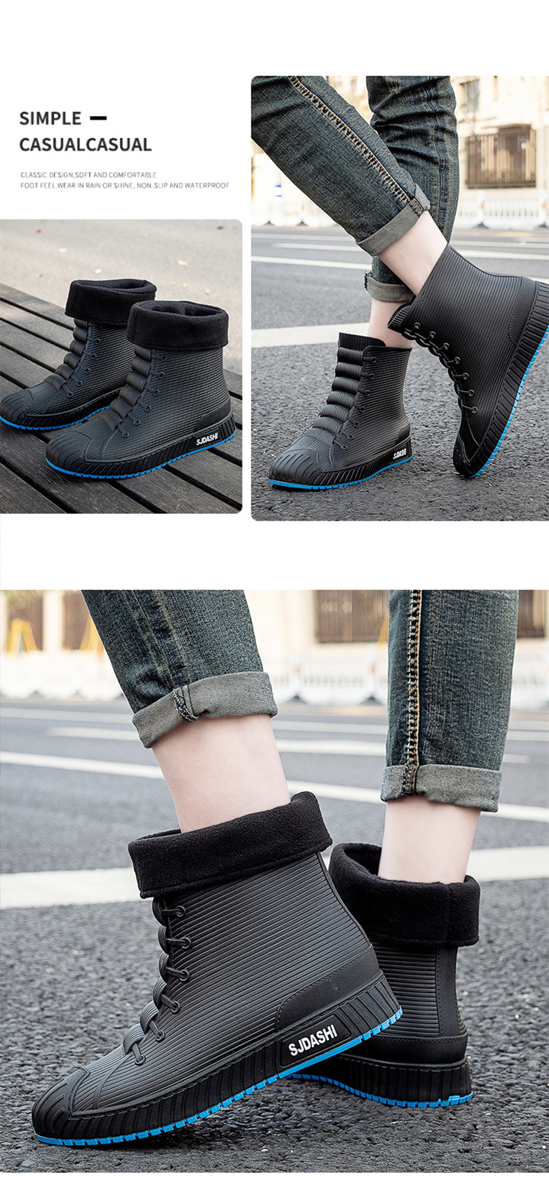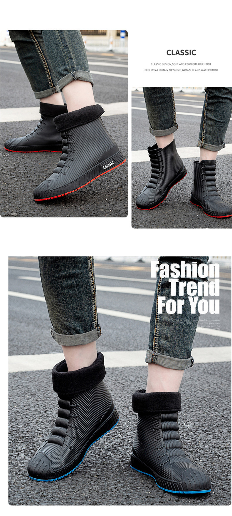 Sepatu bot hujan pria dan wanita, sepatu bot pasangan anti selip, sepatu tahan air tahan aus, sepatu karet gaya Korea plus beludru katun hangat
