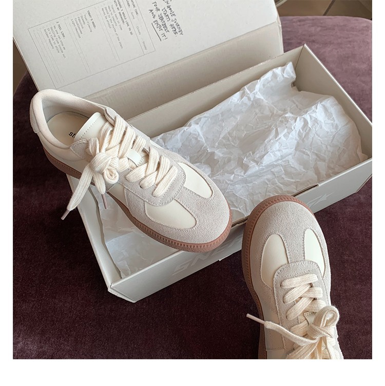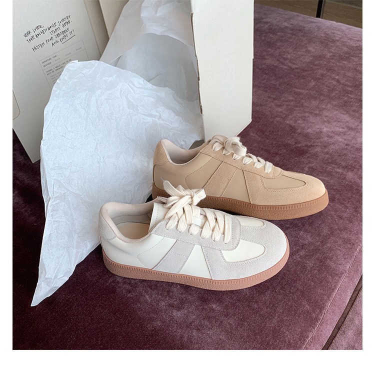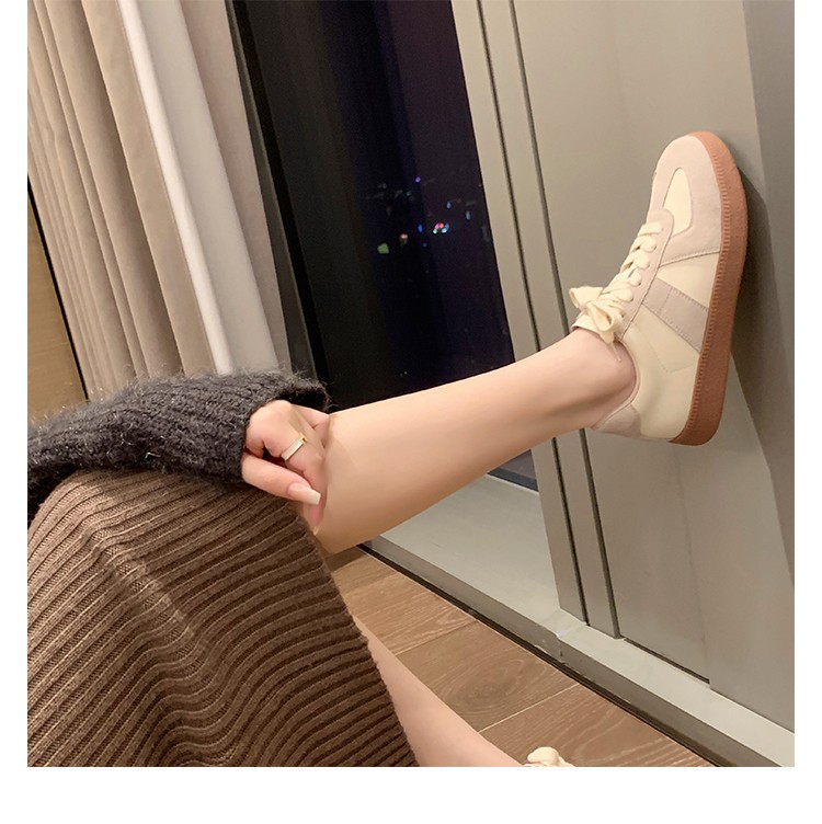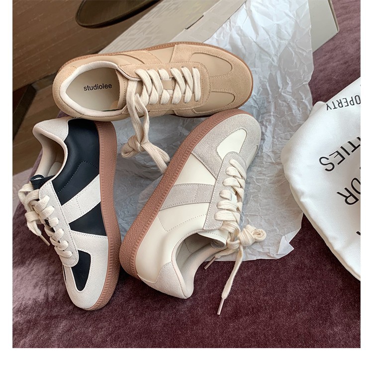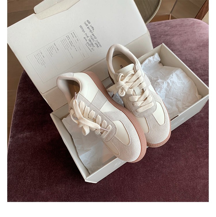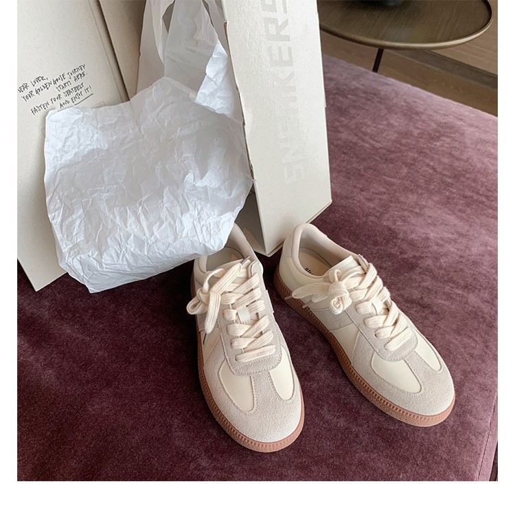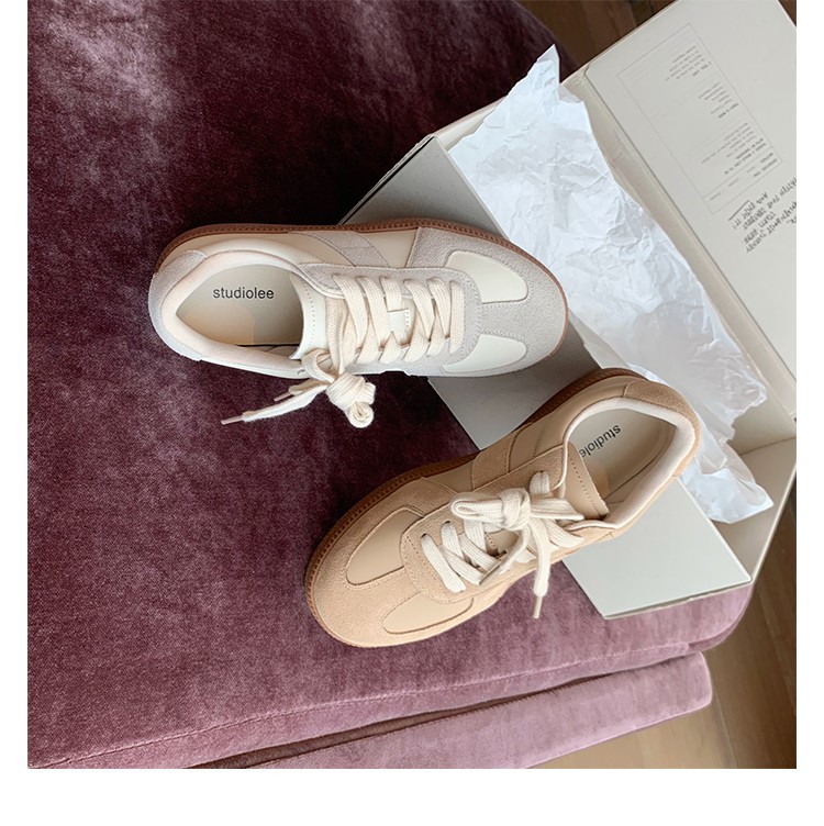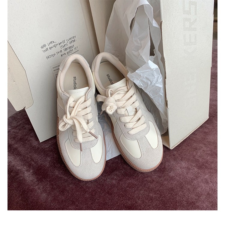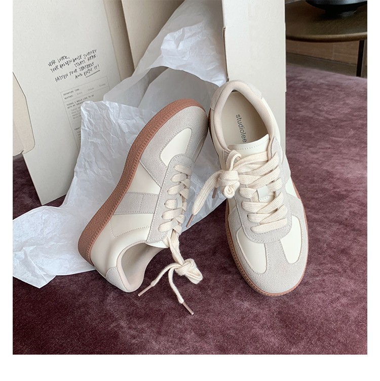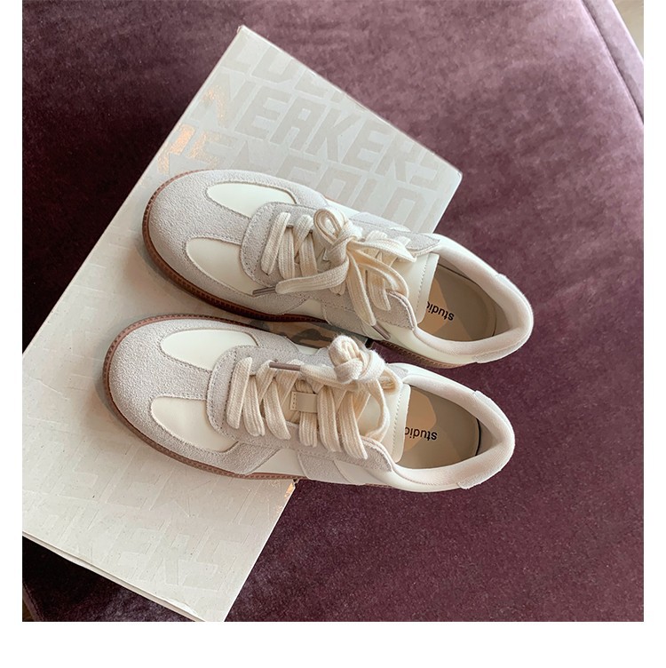 Ibu anggur studiolee retro gaya Hong Kong ujung bulat warna cocok sneakers kasual bertali latihan Jerman sepatu putih untuk wanita musim gugur dan musim dingin