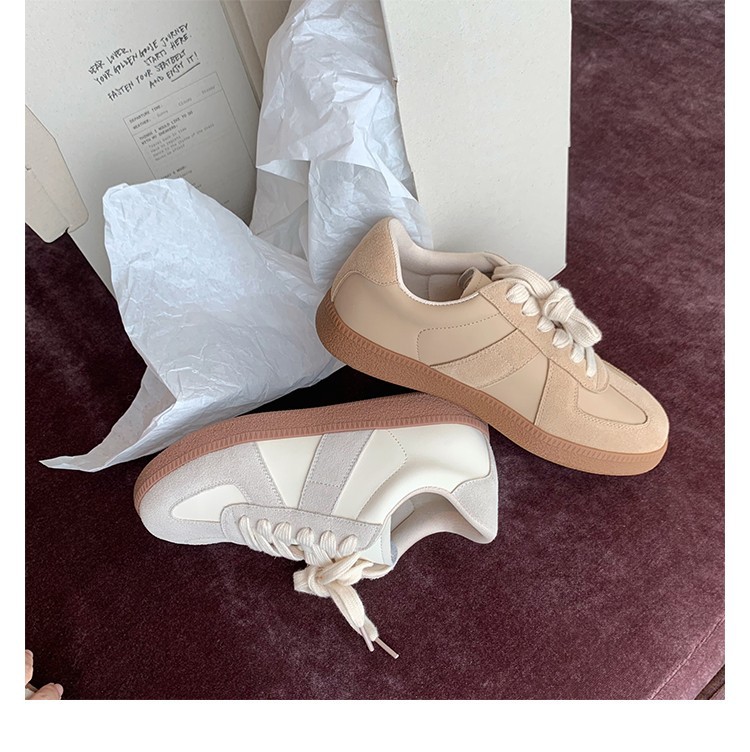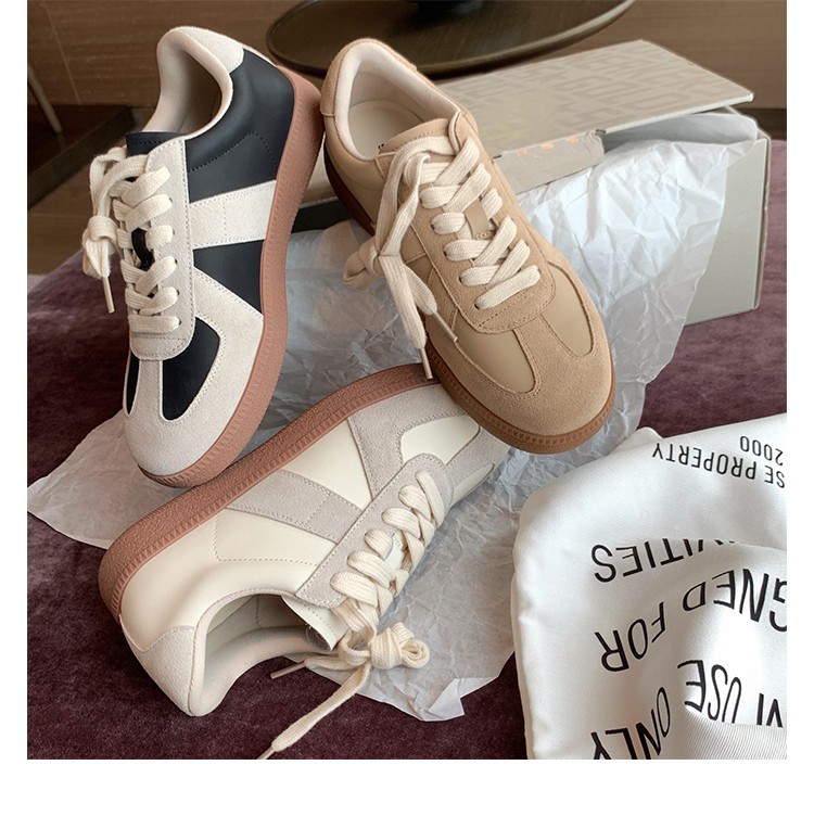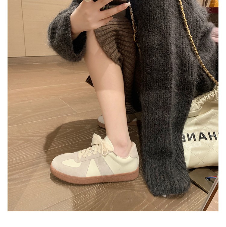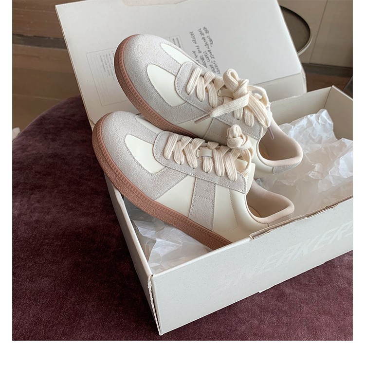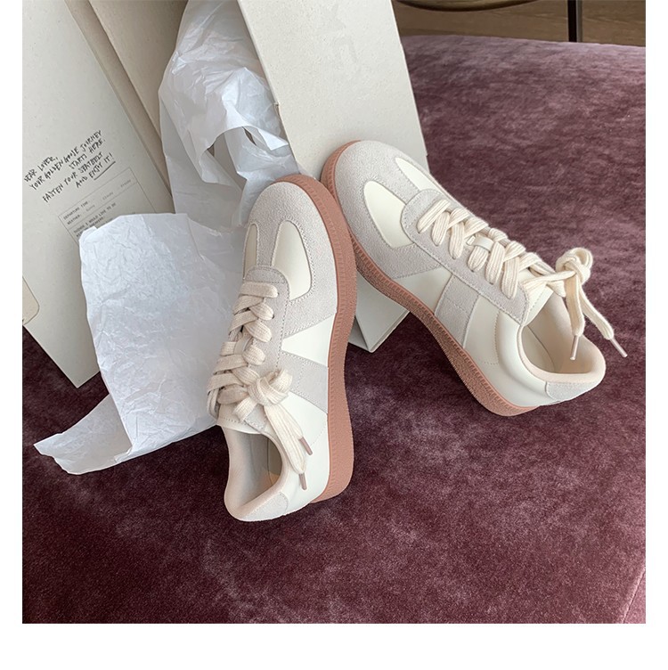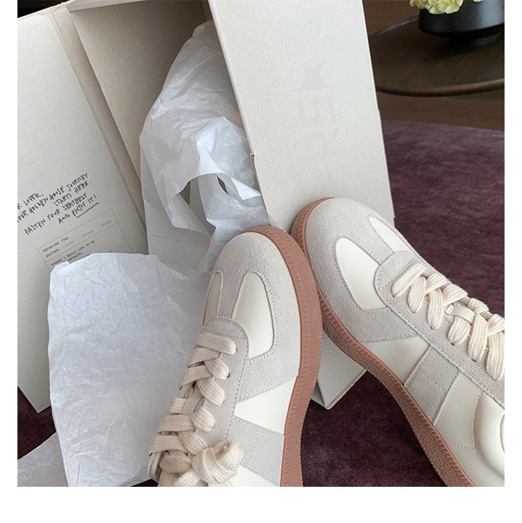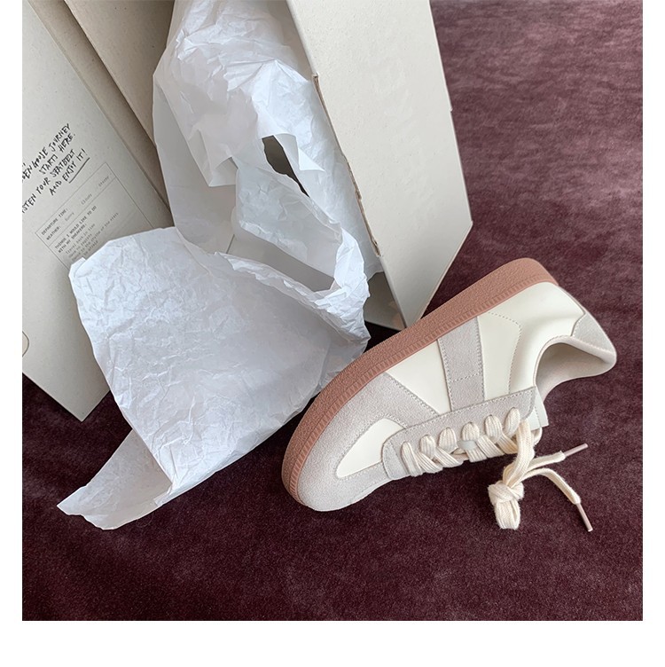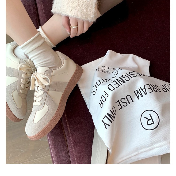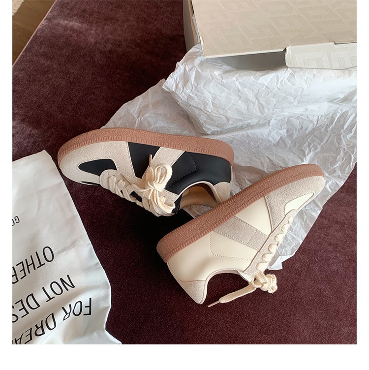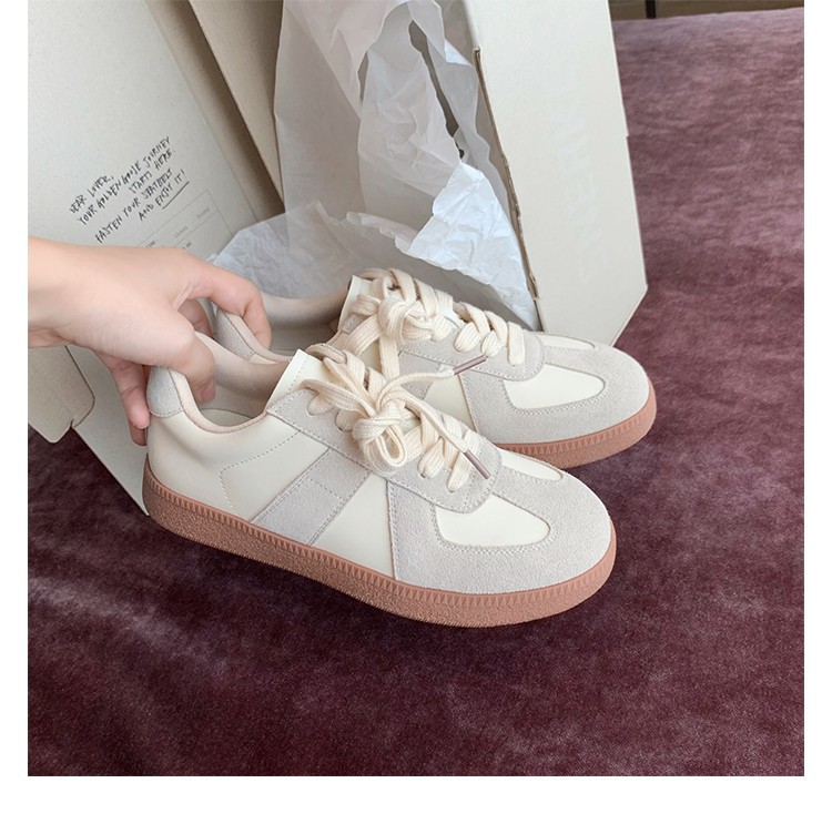Ibu anggur studiolee retro gaya Hong Kong ujung bulat warna cocok sneakers kasual bertali latihan Jerman sepatu putih untuk wanita musim gugur dan musim dingin
