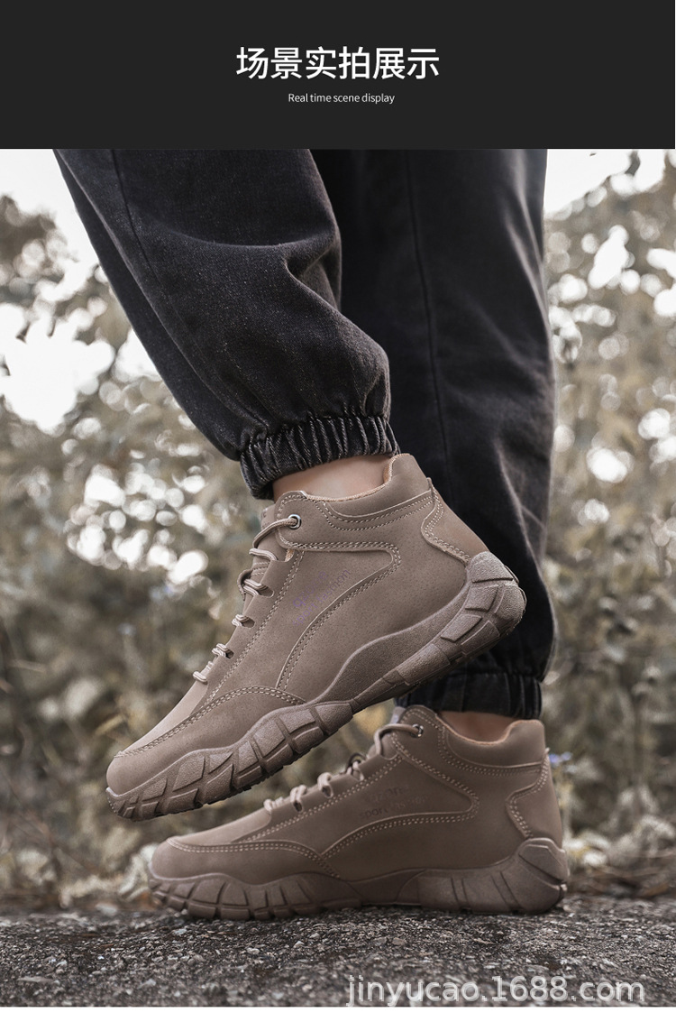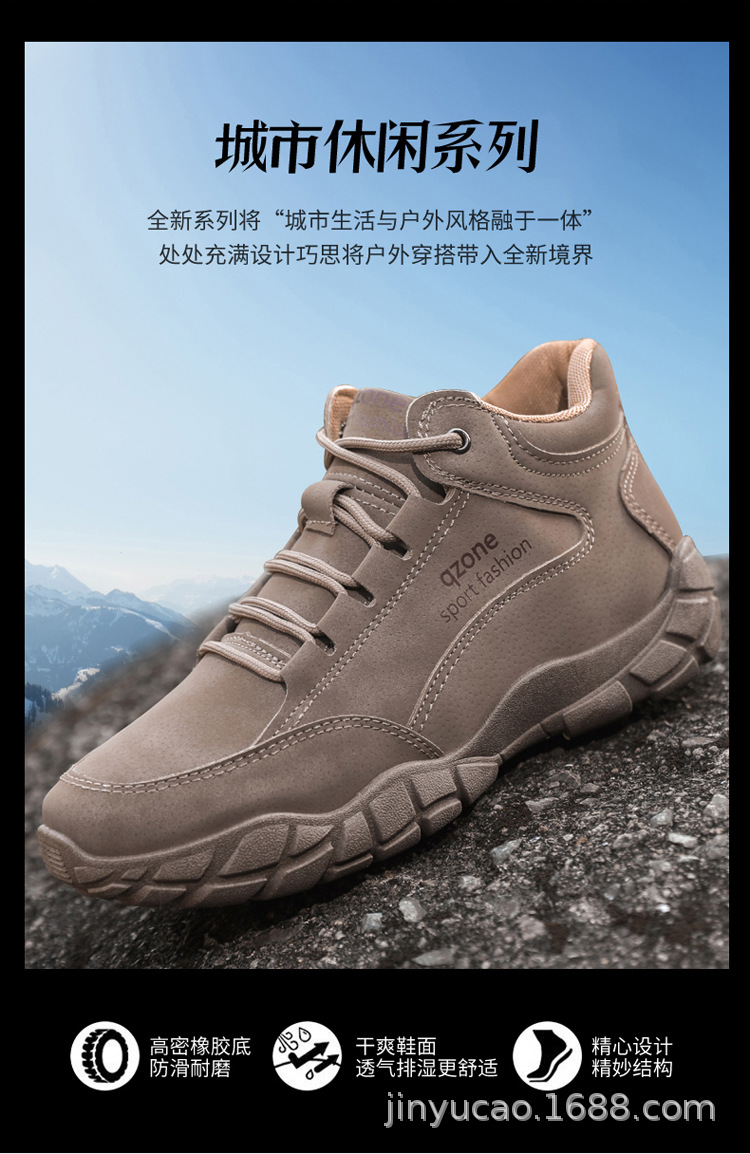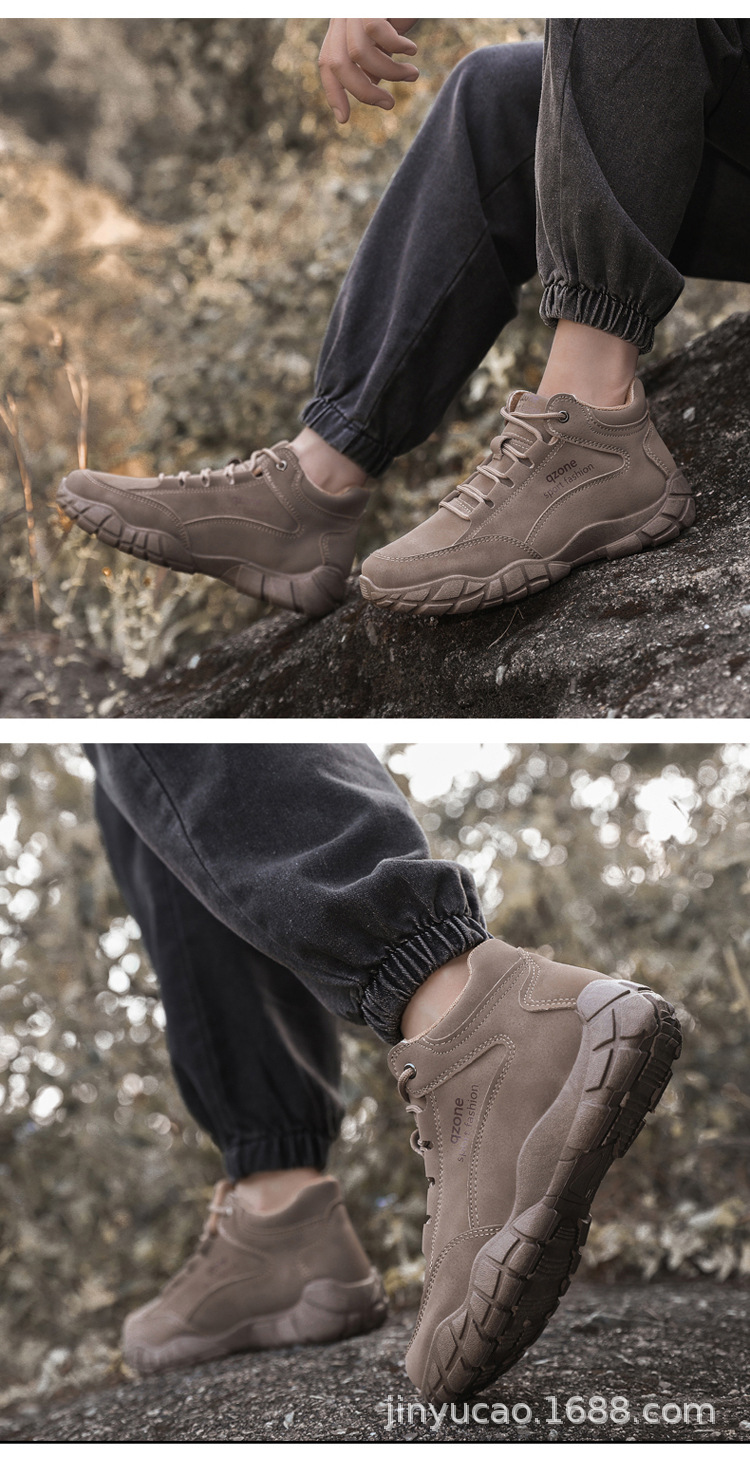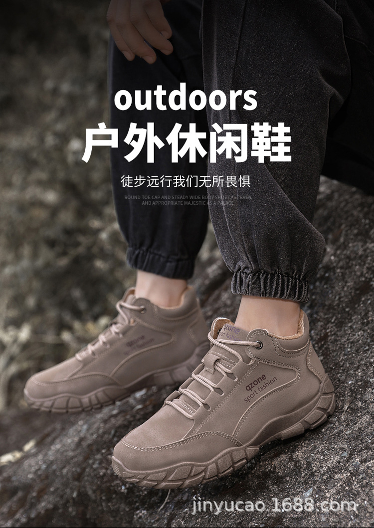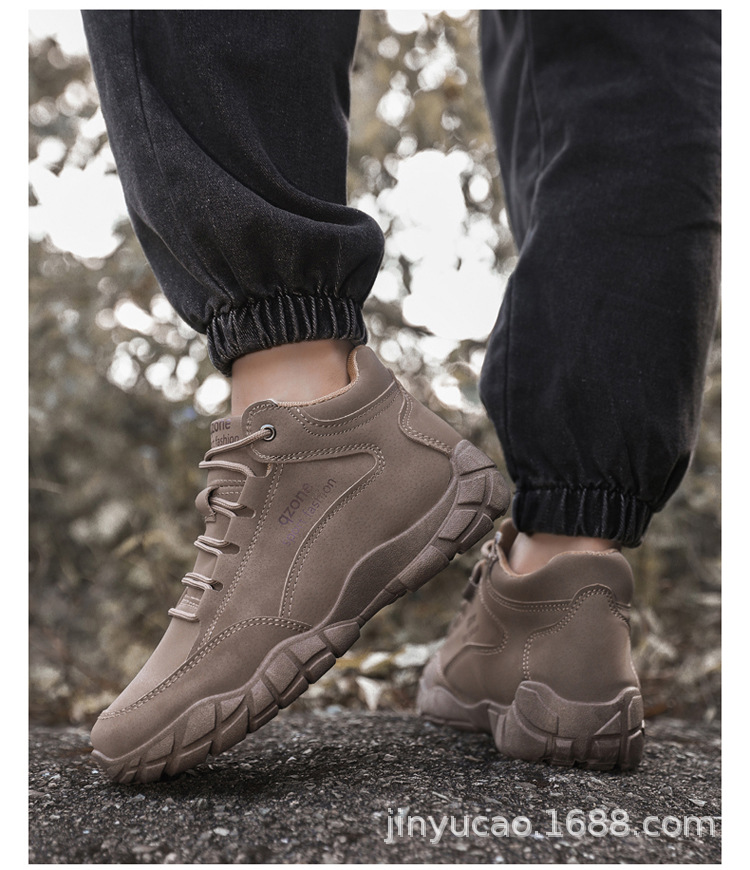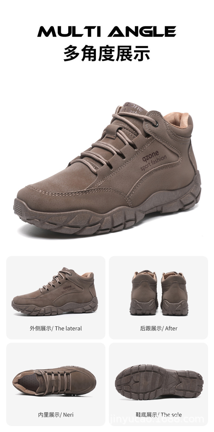 Sepatu hiking serbaguna baru untuk pria, musim gugur dan musim dingin, sepatu olahraga kulit outdoor berhak tinggi dengan sol lembut, sepatu kasual serbaguna dengan sol tebal.