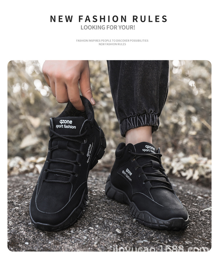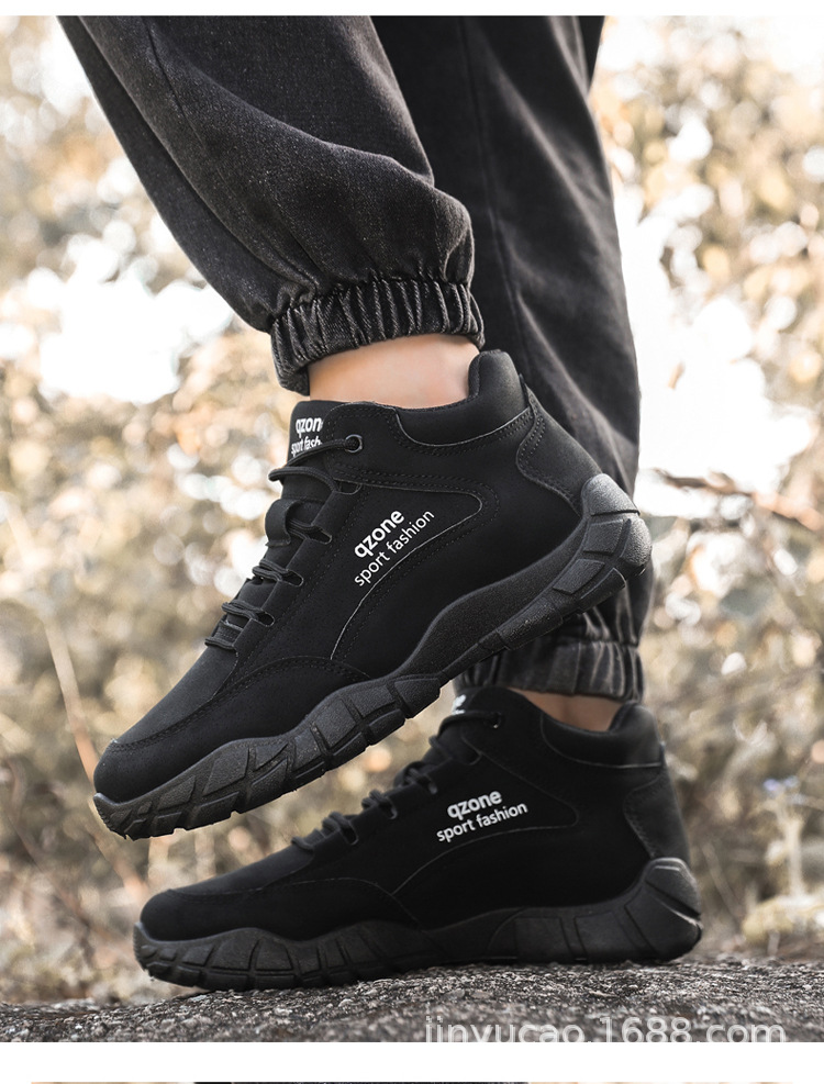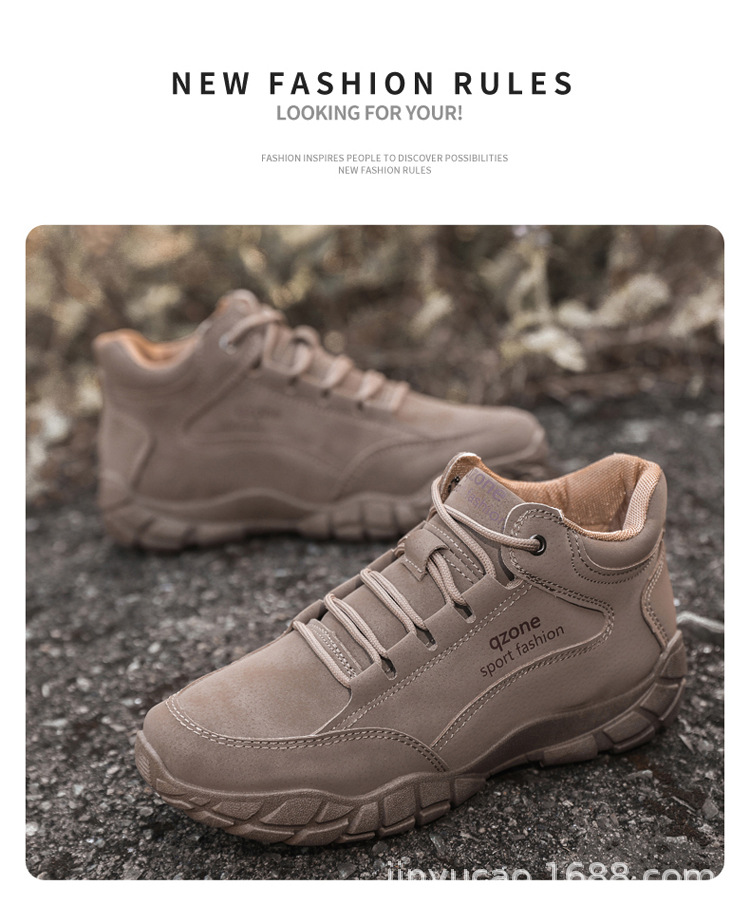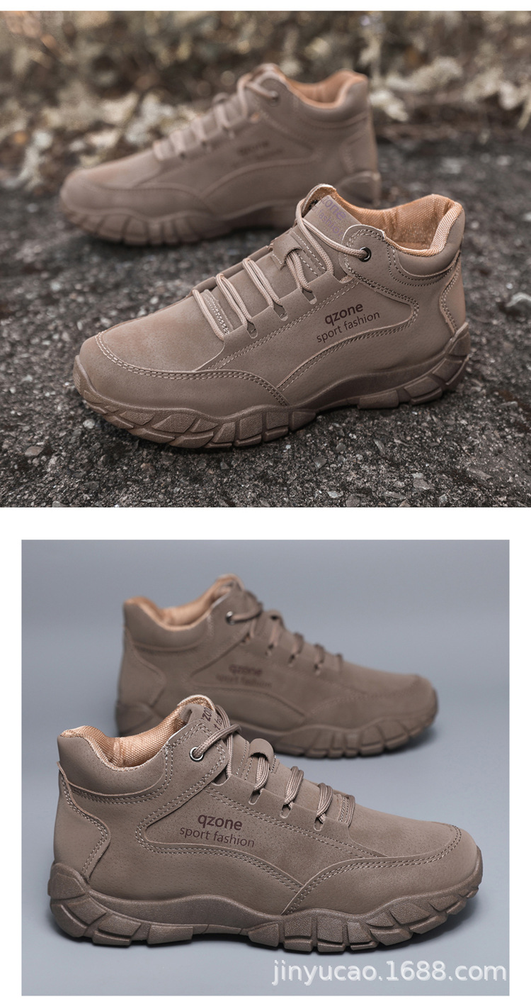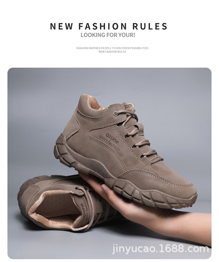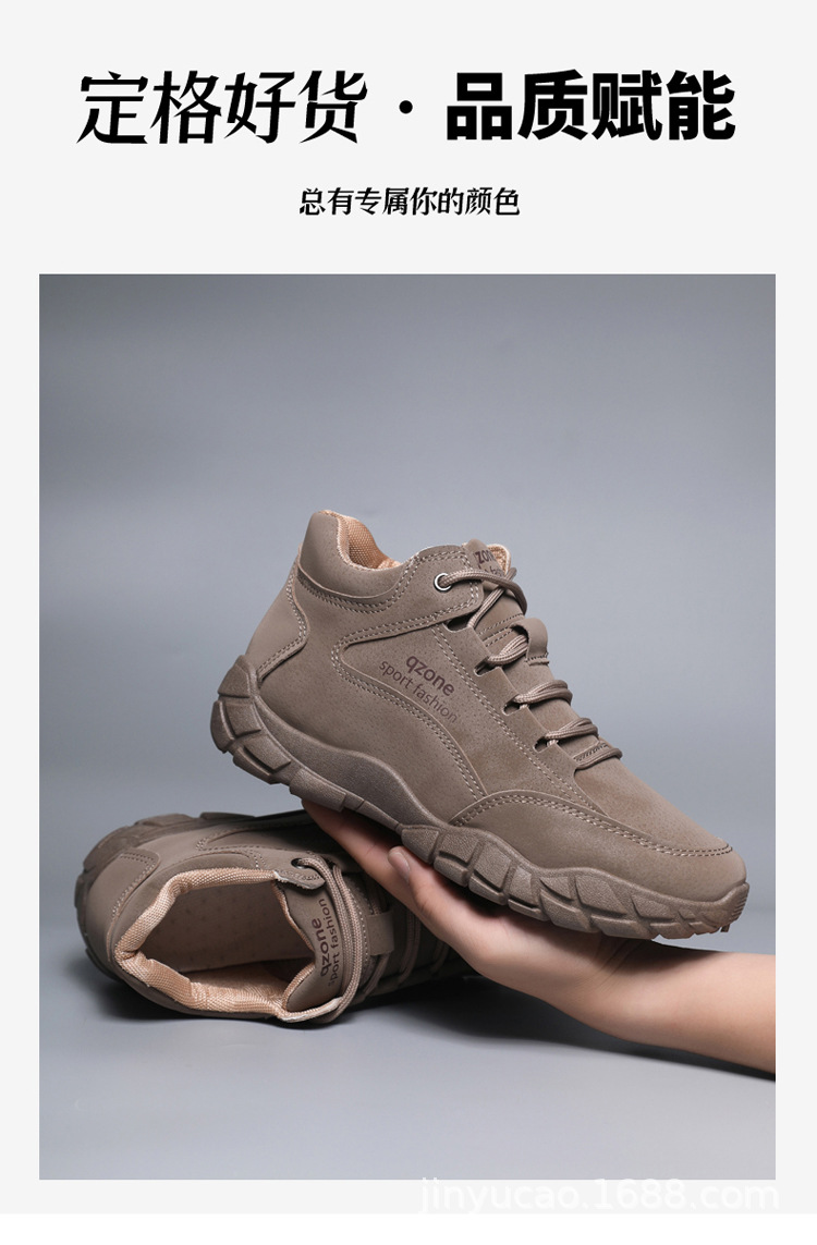 Sepatu hiking serbaguna baru untuk pria, musim gugur dan musim dingin, sepatu olahraga kulit outdoor berhak tinggi dengan sol lembut, sepatu kasual serbaguna dengan sol tebal.