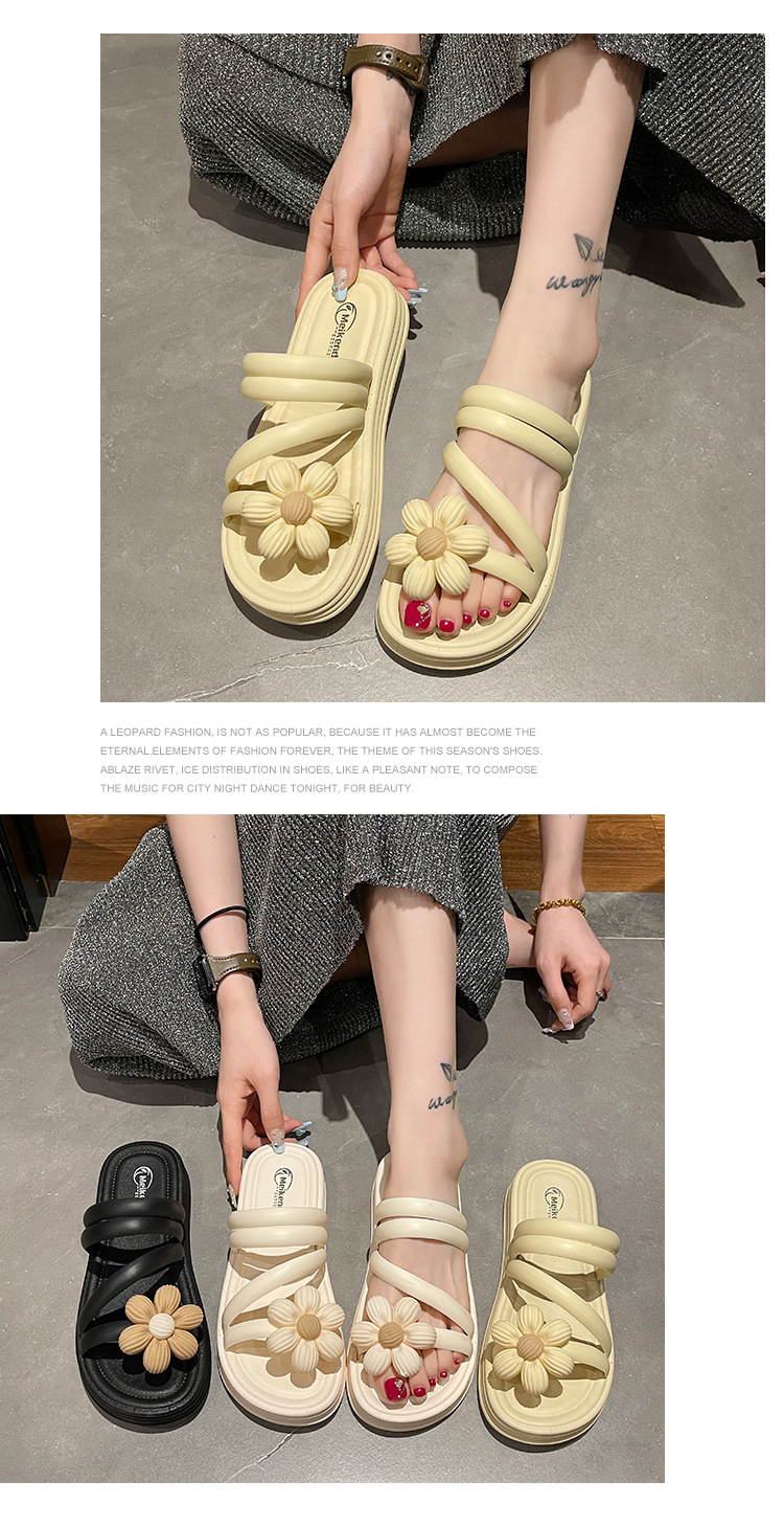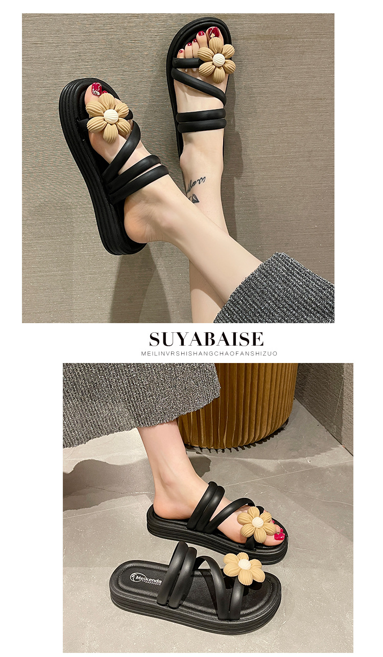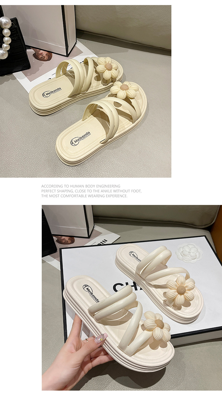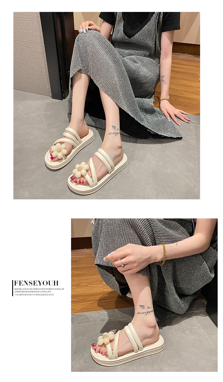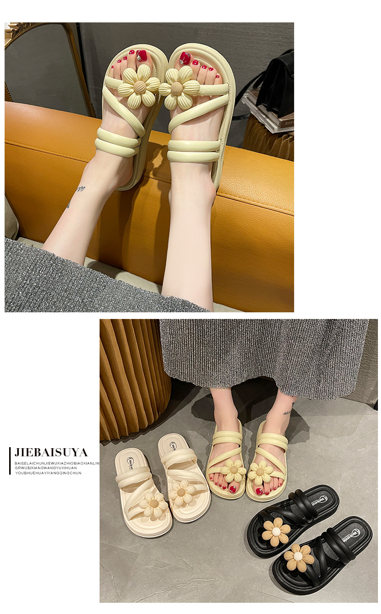Sandal bunga wanita, Kasut Roman bawah tebal non slip musim panas gaya peri keluar dua arah kasual grosir