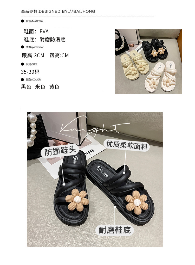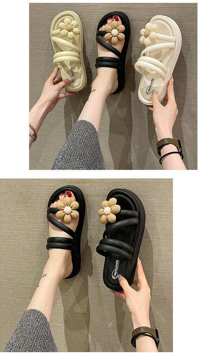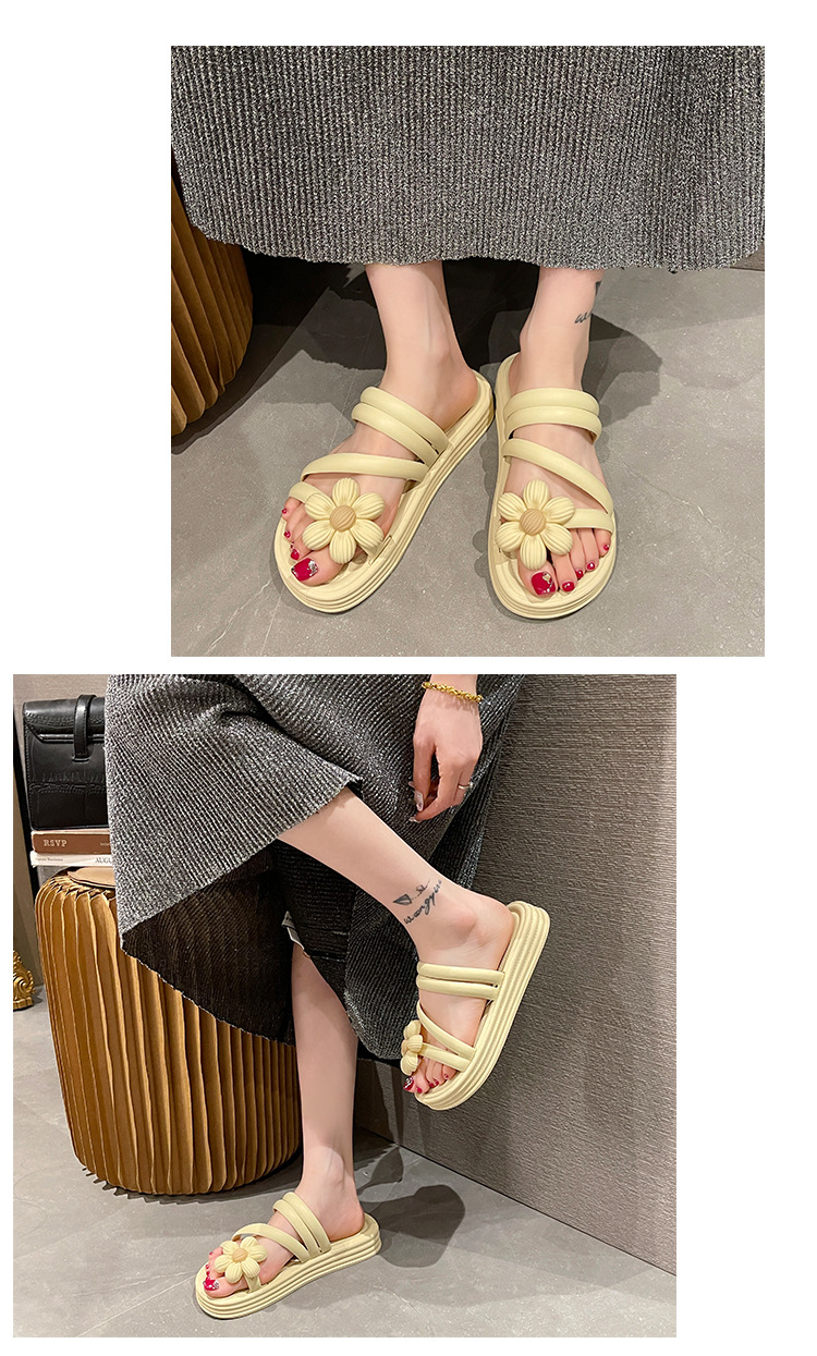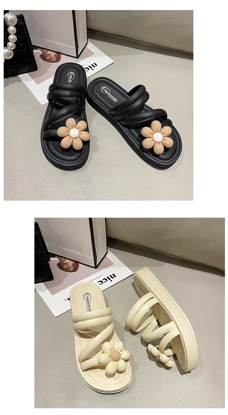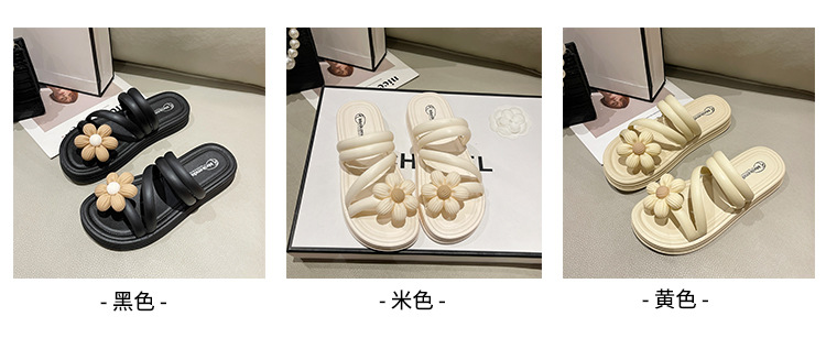Sandal bunga wanita, Kasut Roman bawah tebal non slip musim panas gaya peri keluar dua arah kasual grosir