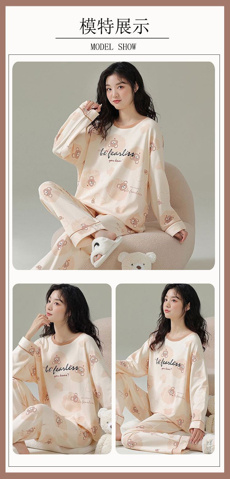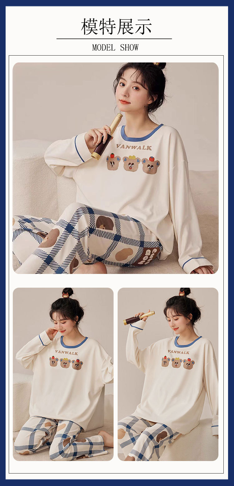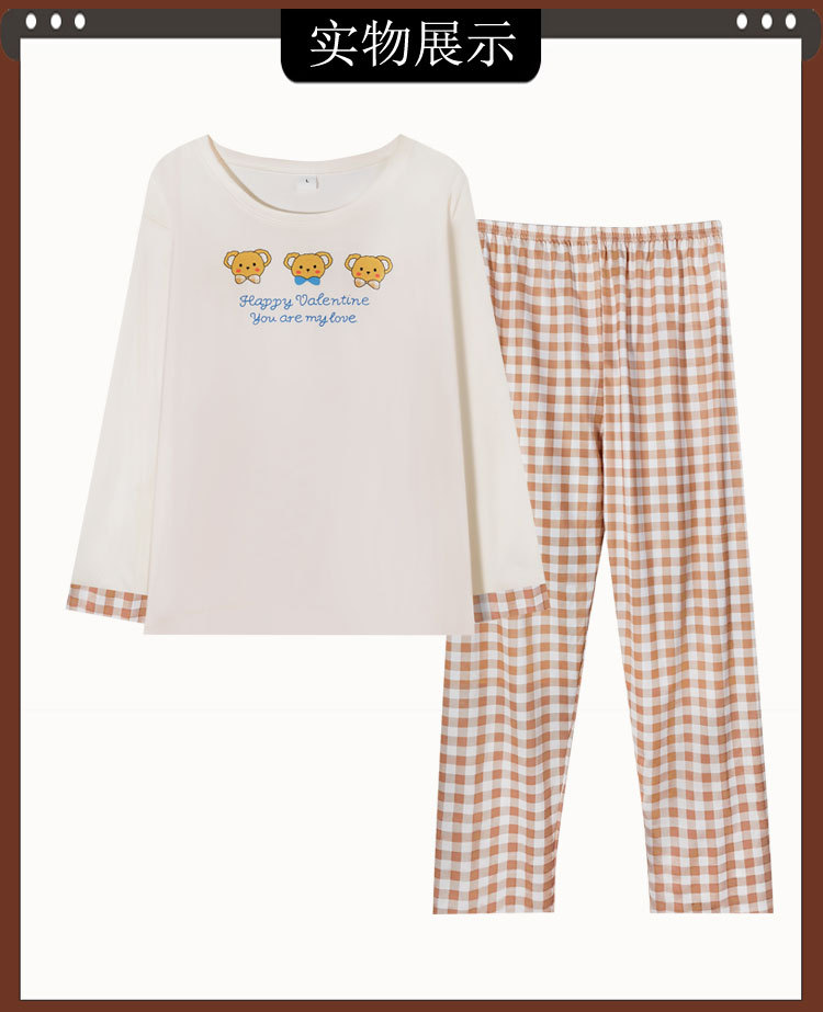 Piyama Beruang Kartun Wanita Musim Semi dan Musim Gugur Model Baru Celana Panjang Lengan Panjang Kontrol Kotak-Kotak Artistik Bisa Dipakai Luar Set Pakaian Rumah