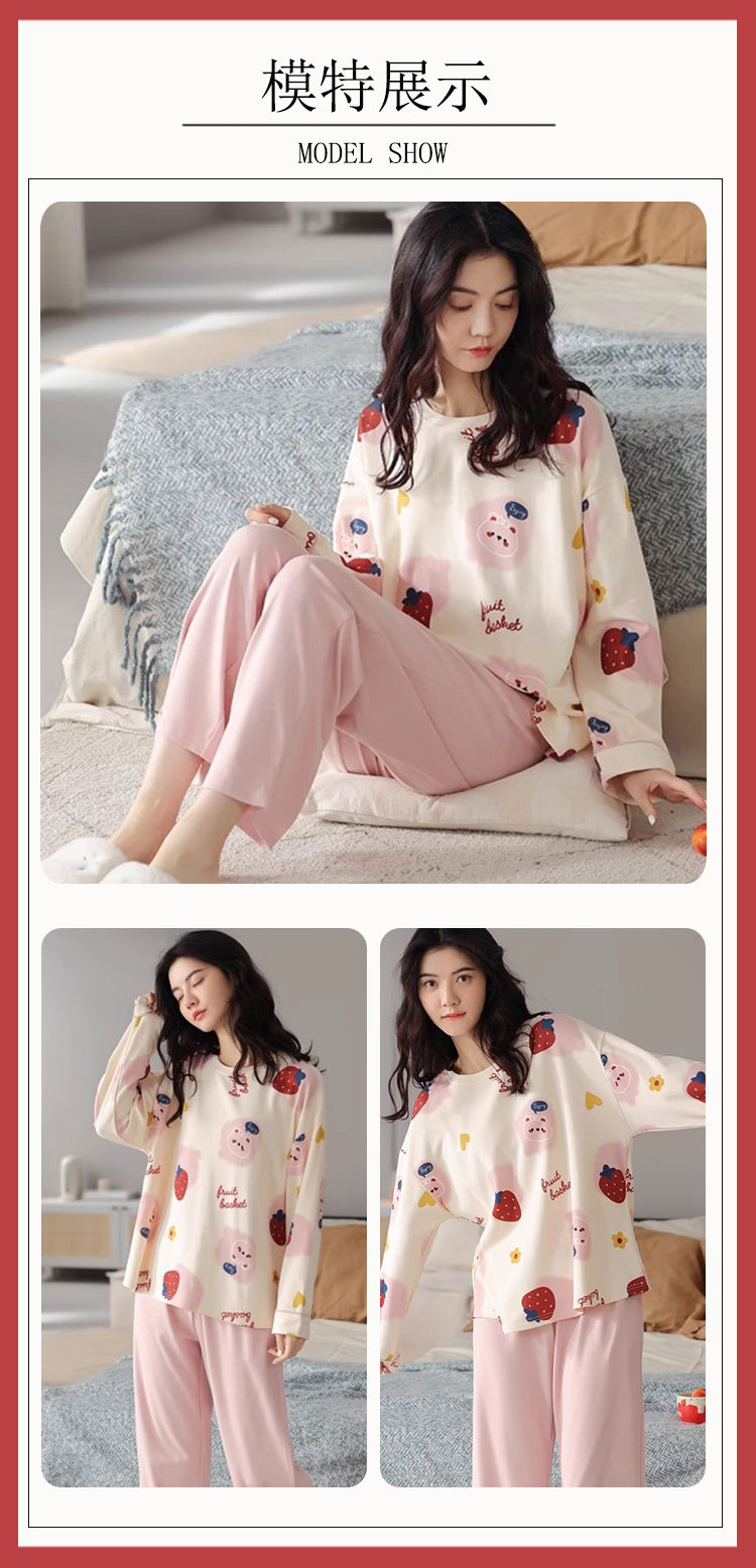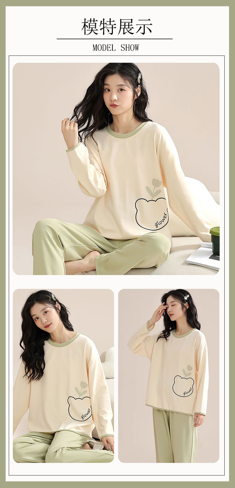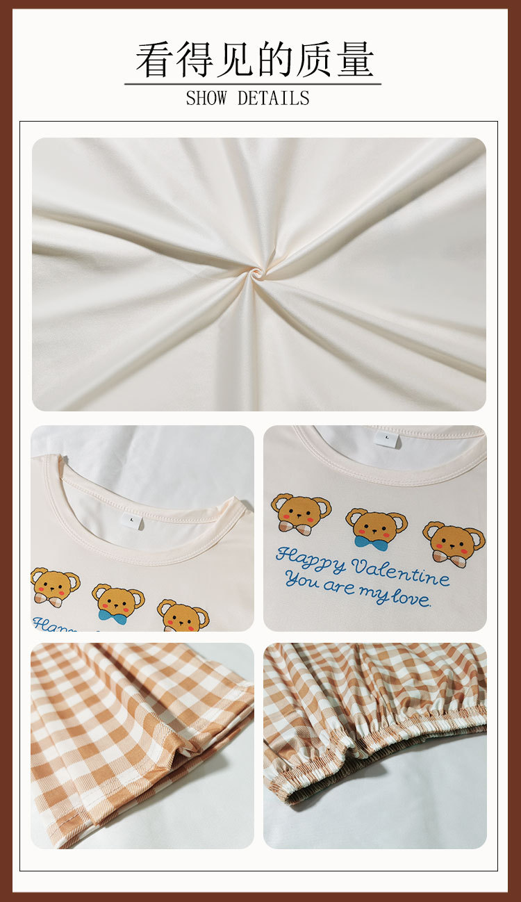 Piyama Beruang Kartun Wanita Musim Semi dan Musim Gugur Model Baru Celana Panjang Lengan Panjang Kontrol Kotak-Kotak Artistik Bisa Dipakai Luar Set Pakaian Rumah