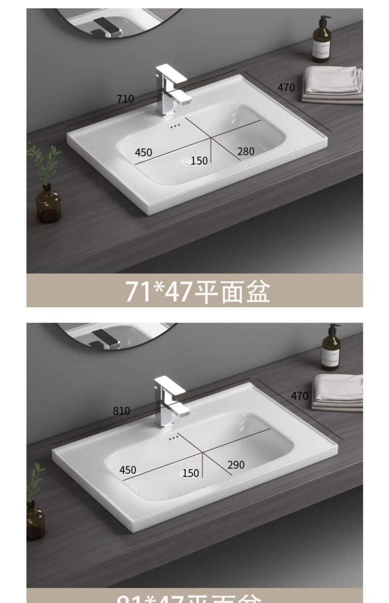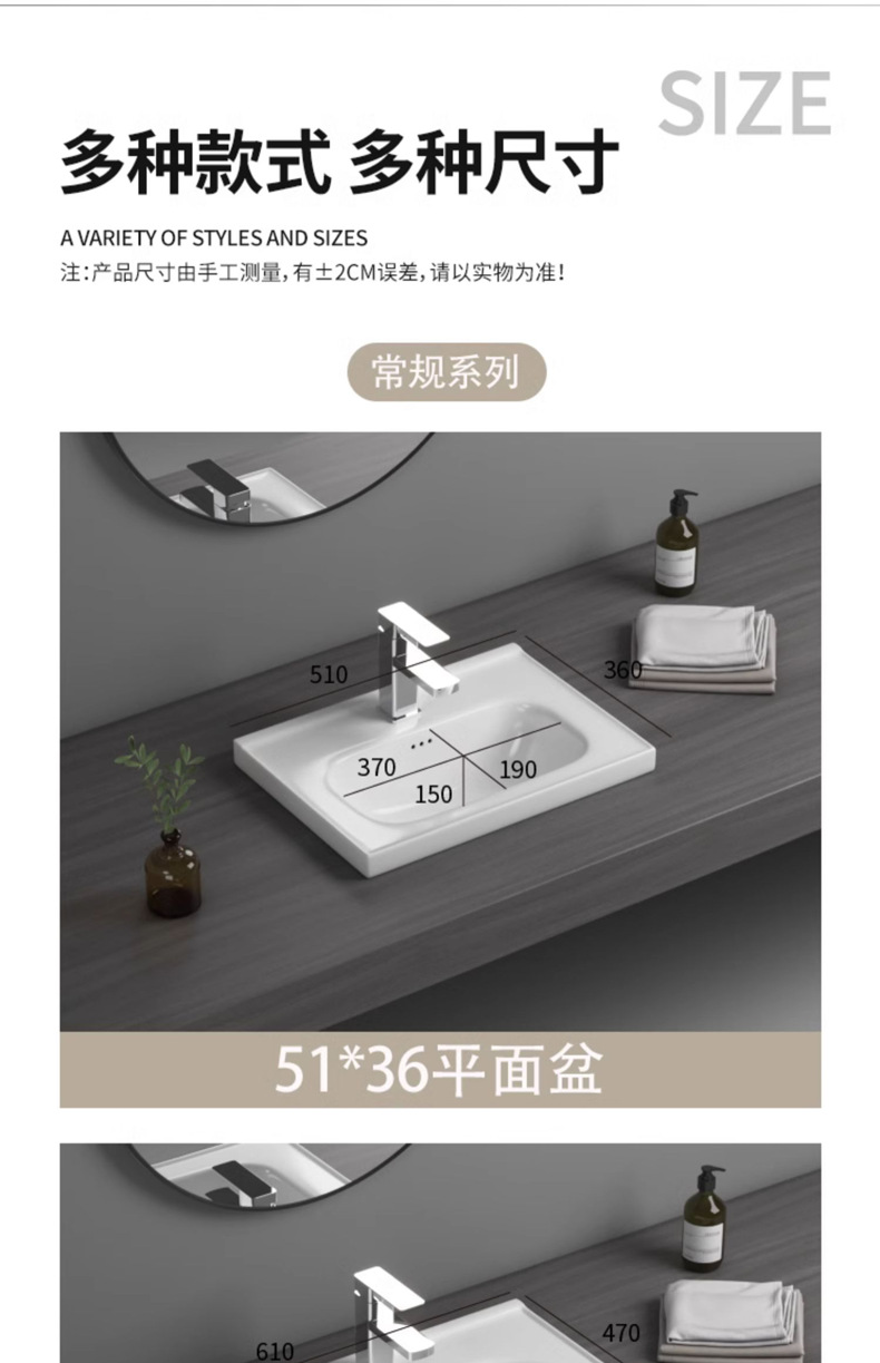 本厂生产各种浴室柜盆,包括艺术盆,薄边盆,中边盆,洗衣盆,配备了100条洗手盆生产线,产能大,质量稳定,采用1280度的高温窑炉烧制,陶瓷釉面平整度高,光滑耐污,优等率高。欢迎浴室柜厂家,工程承包商,建筑商,外贸公司,电商公司洽谈合作。