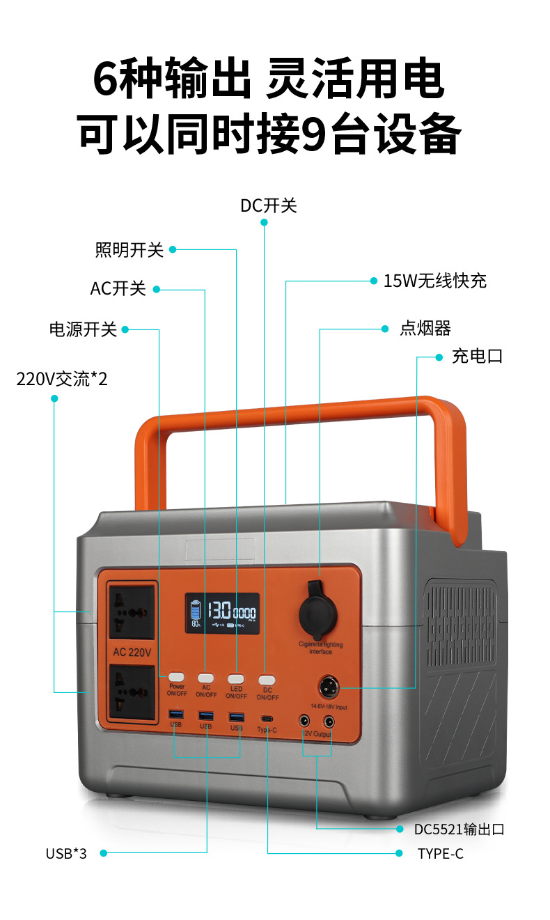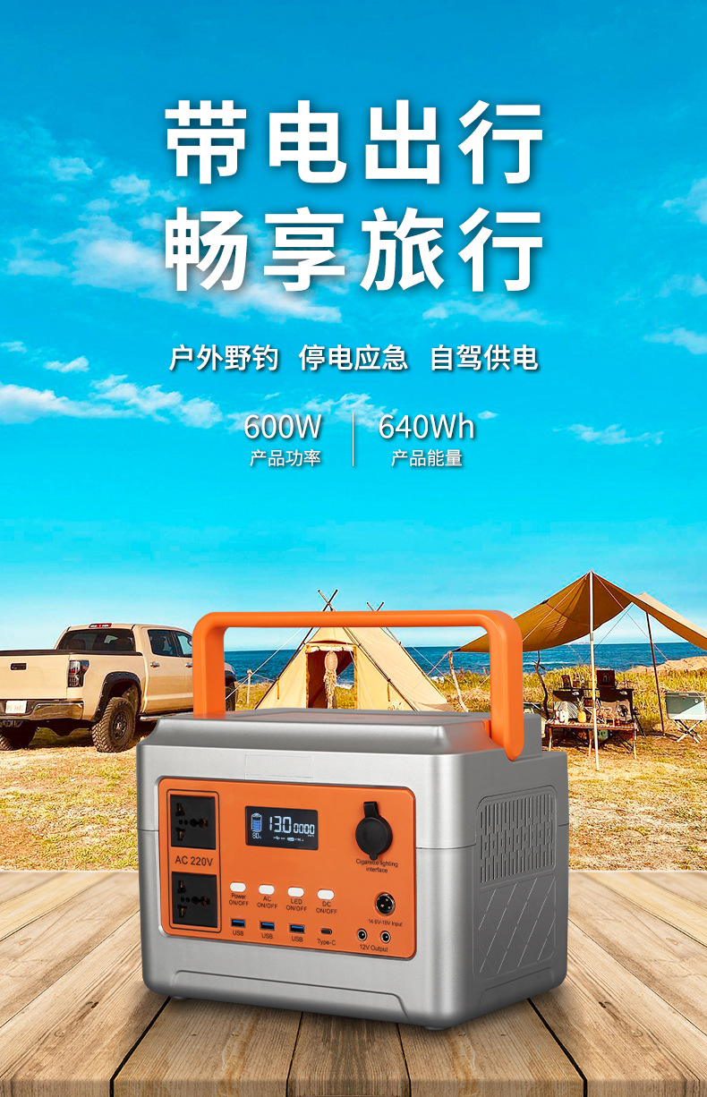 Catu daya ponsel luar ruangan, 600W portabel lithium besi fosfat penyimpanan energi surya Kemah kapasitas besar berkendara sendiri