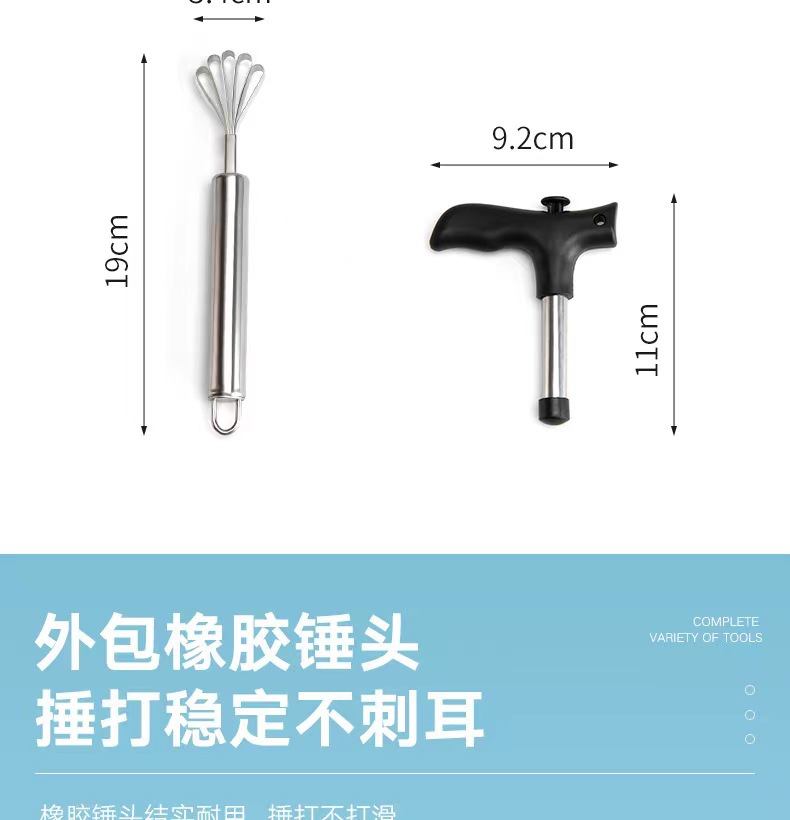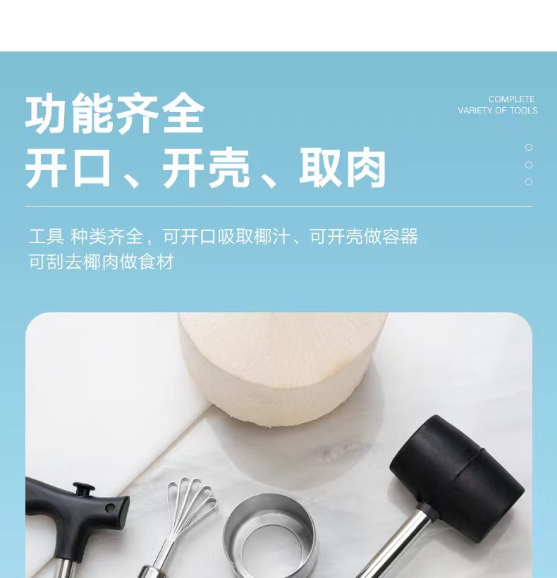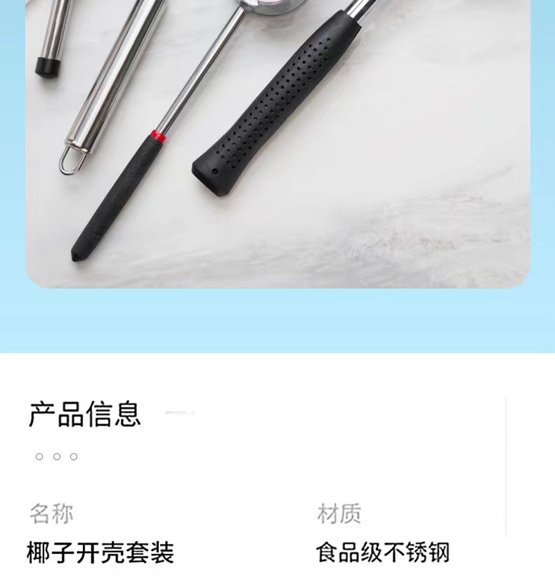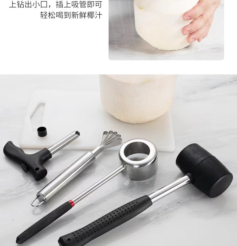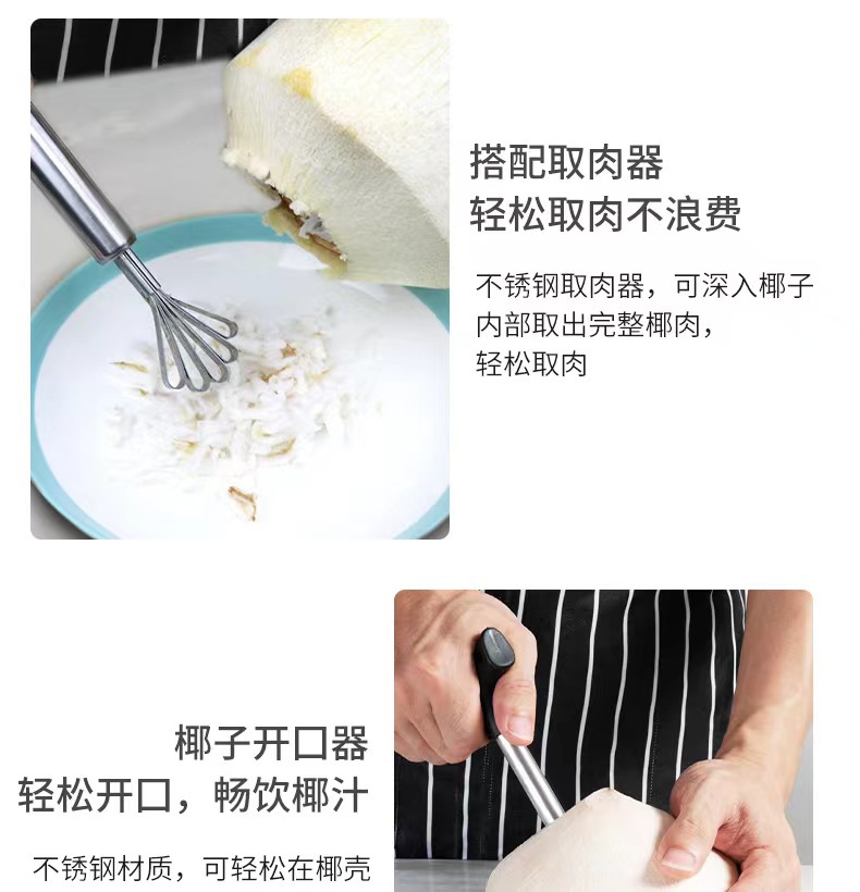 Set pembuka kelapa stainless steel, alat pembuat lubang kelapa, parutan daging kelapa, alat pembuka cangkang, pembuka kelapa tersedia, manual.