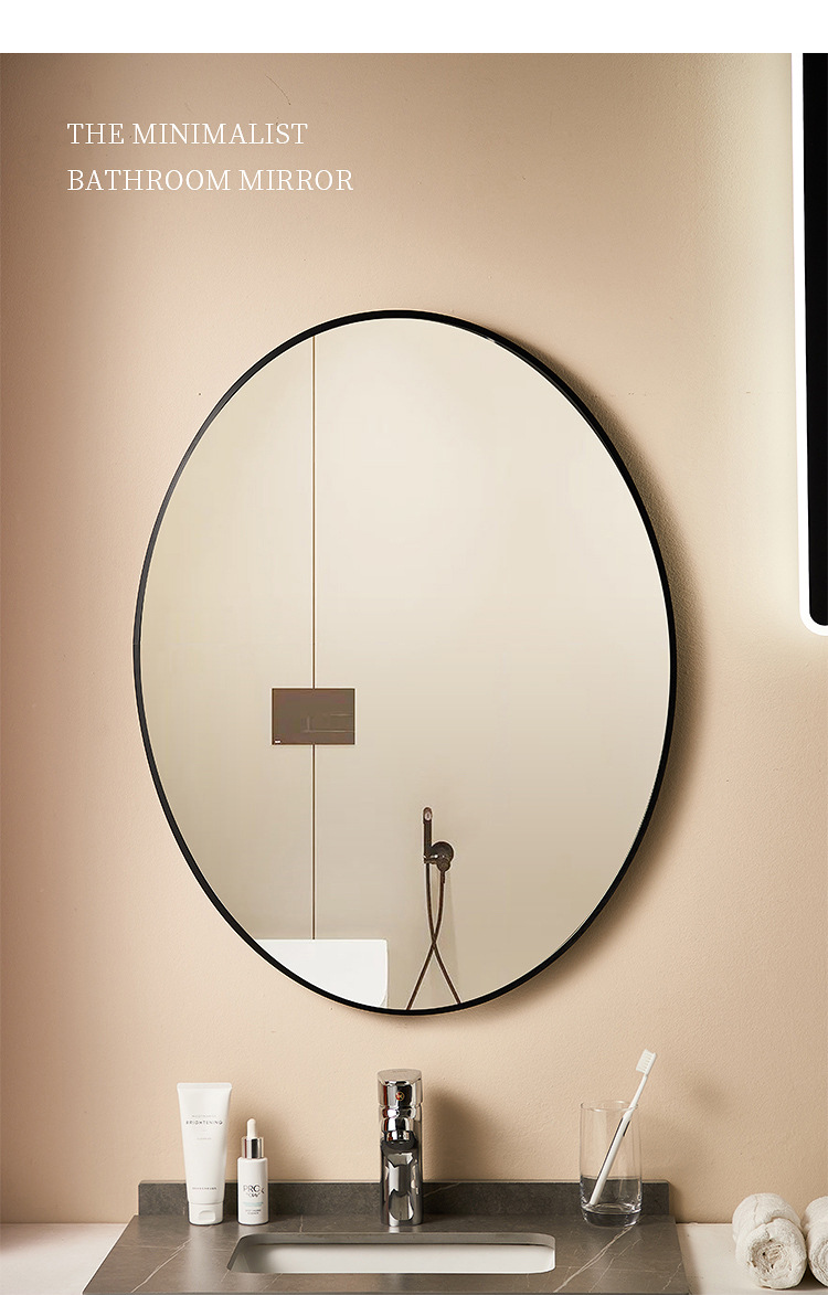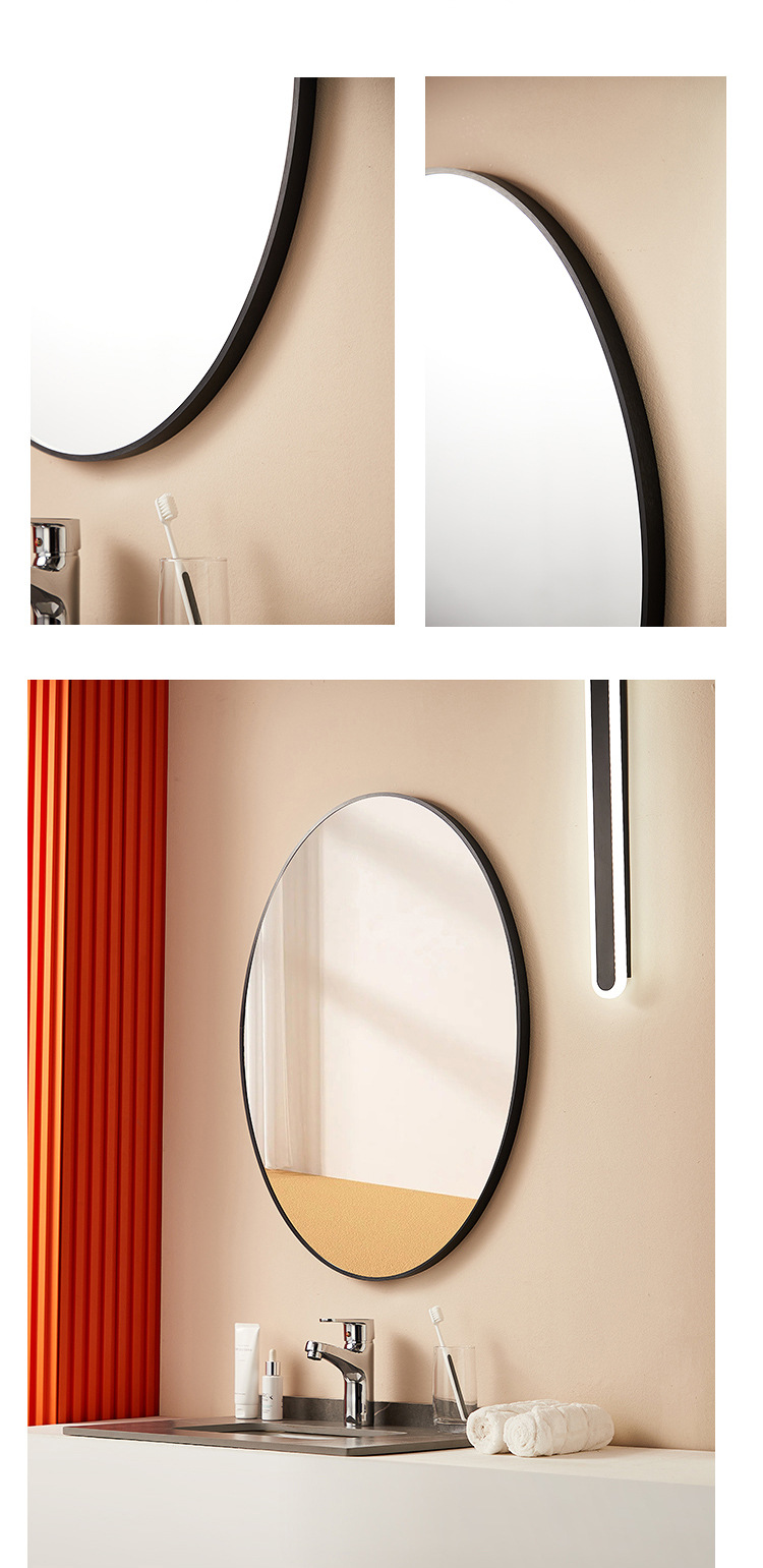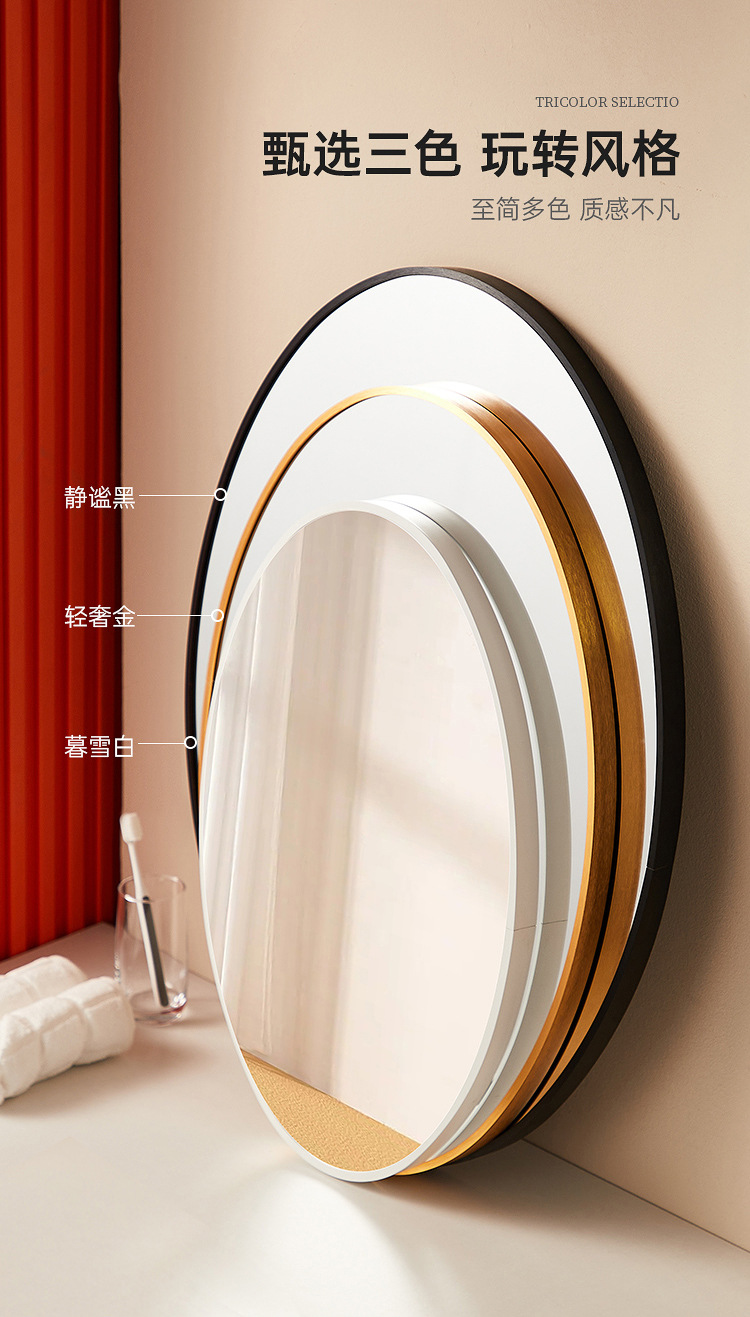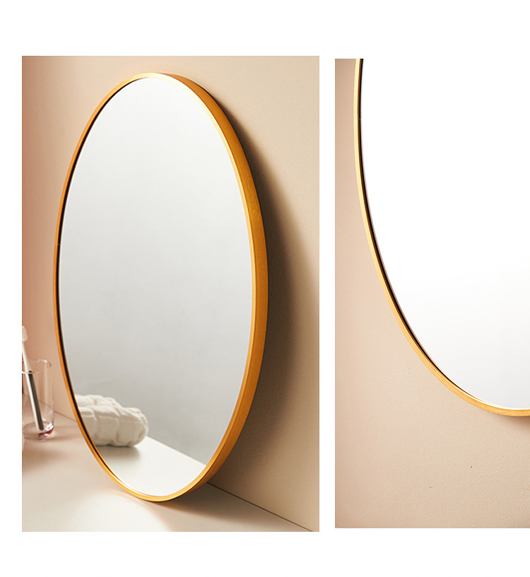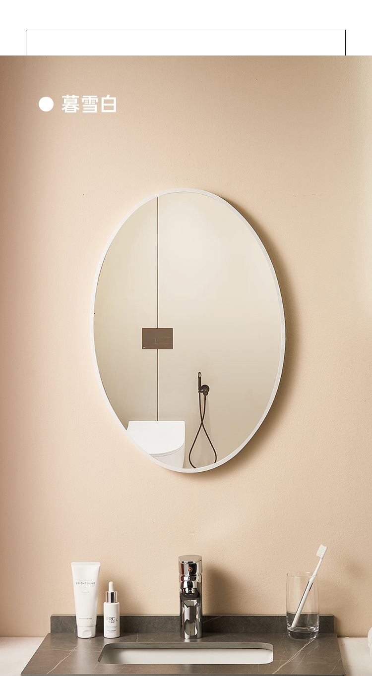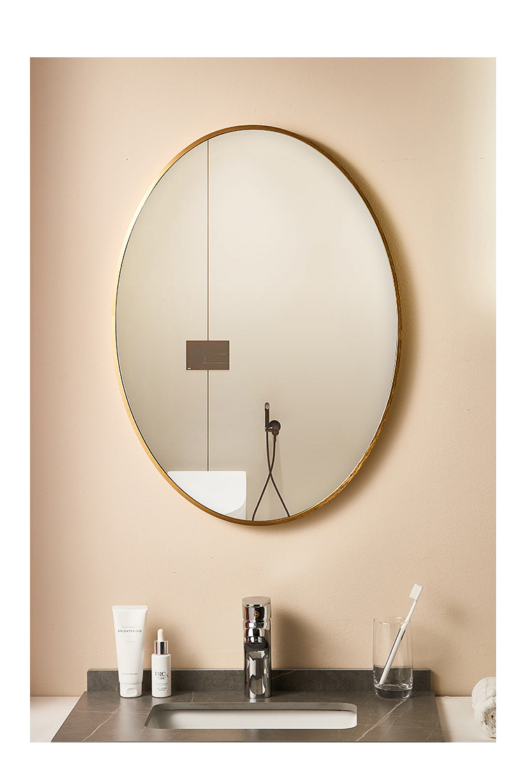 Cermin kamar mandi minimalis, cermin aluminium Aloi Oval kamar mandi toilet bebas lubang cermin kosmetik meja rias hotel cermin kosmetik