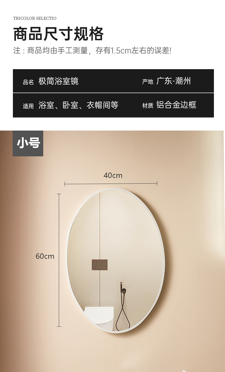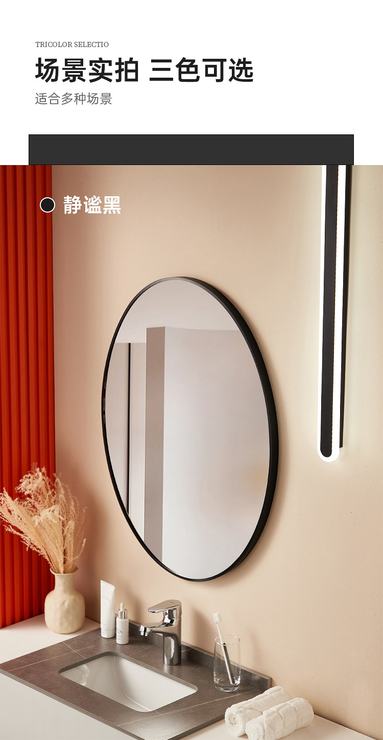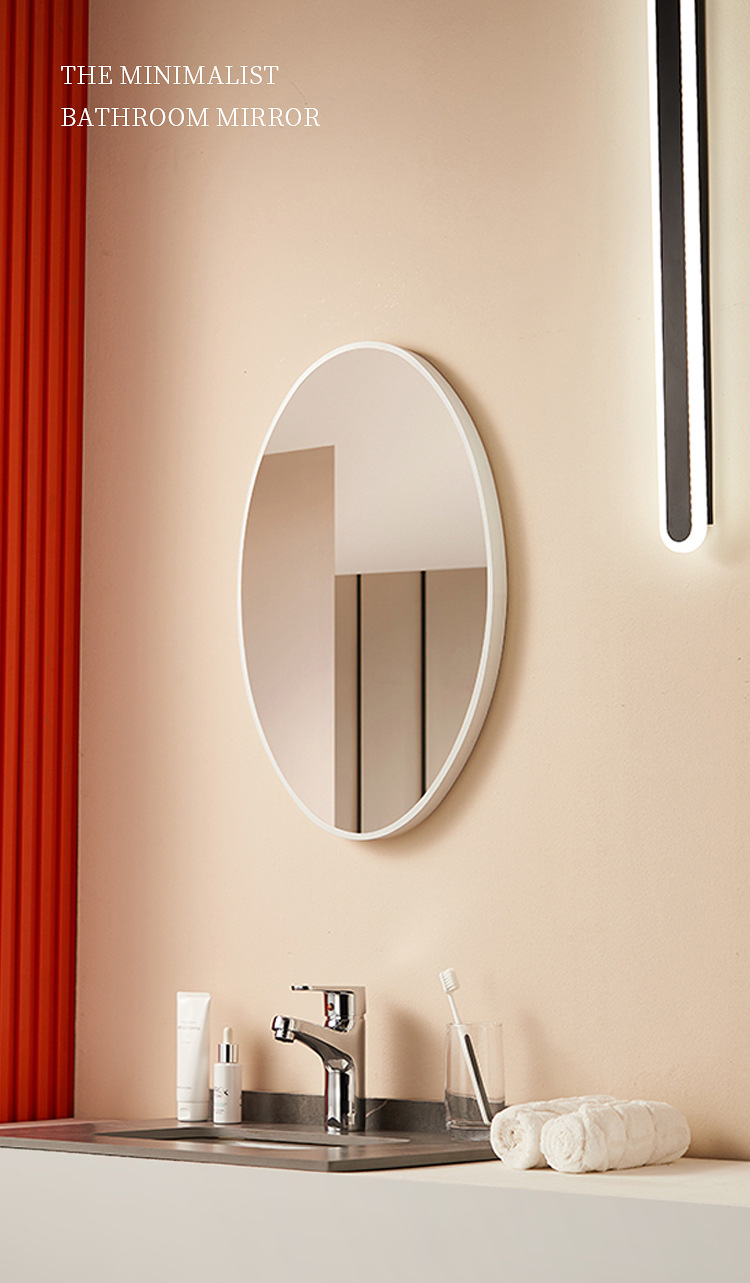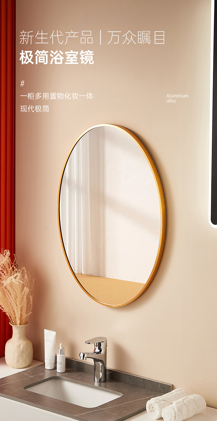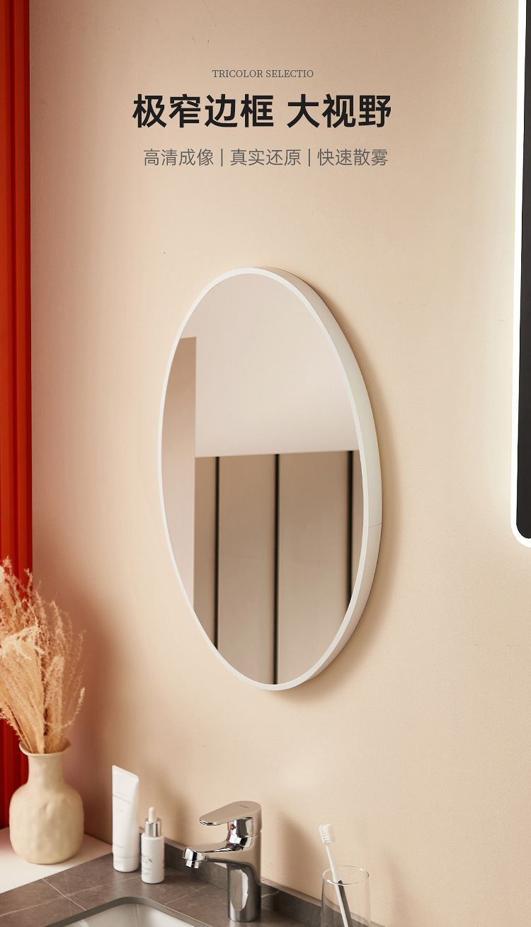Cermin kamar mandi minimalis, cermin aluminium Aloi Oval kamar mandi toilet bebas lubang cermin kosmetik meja rias hotel cermin kosmetik