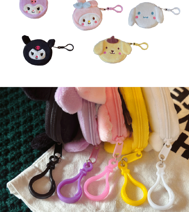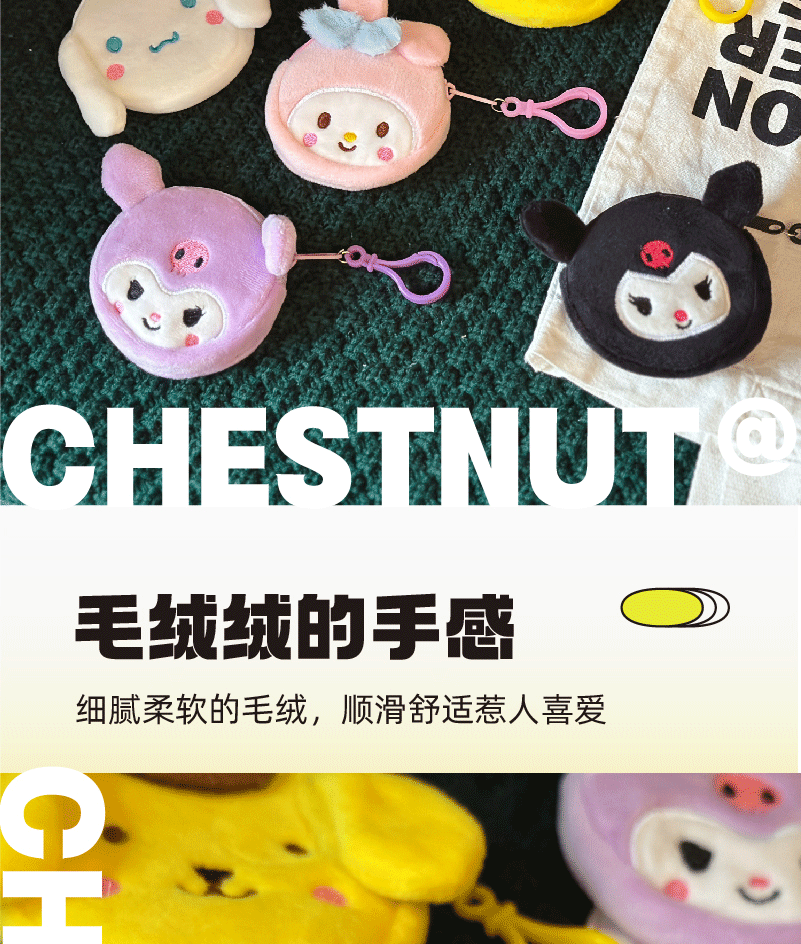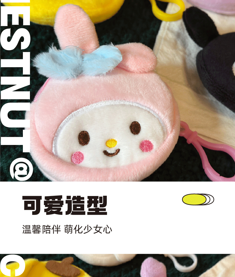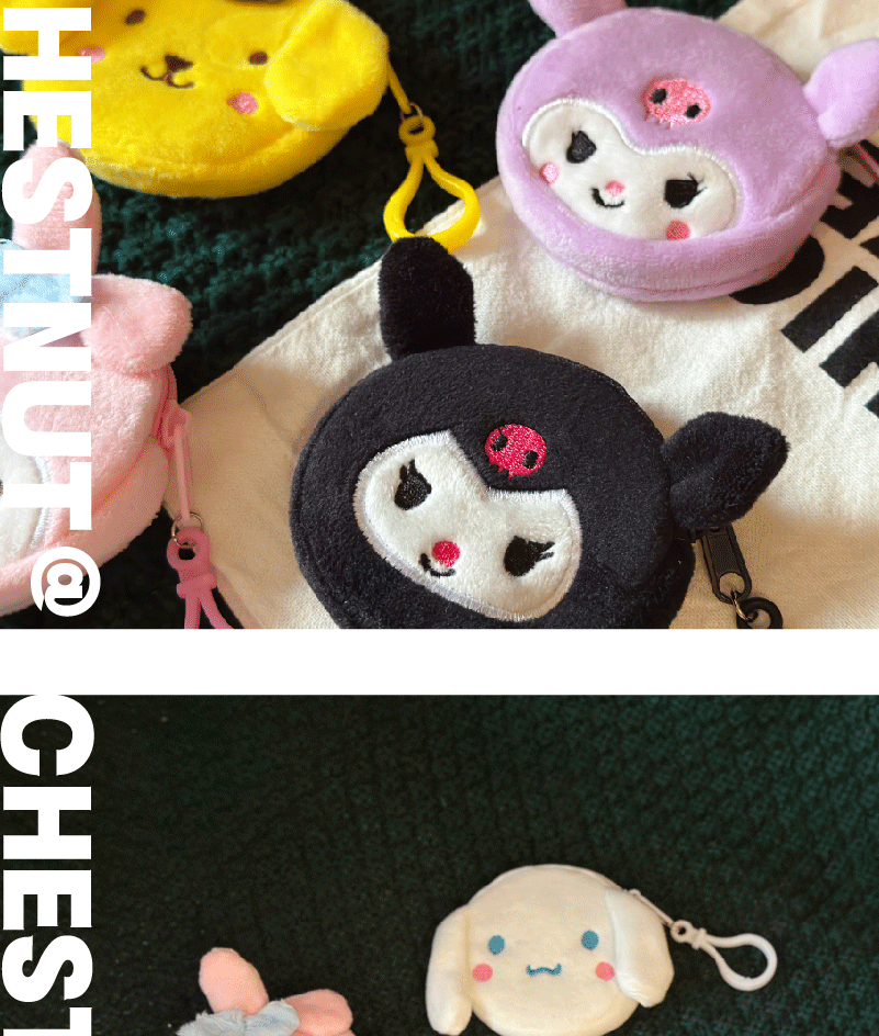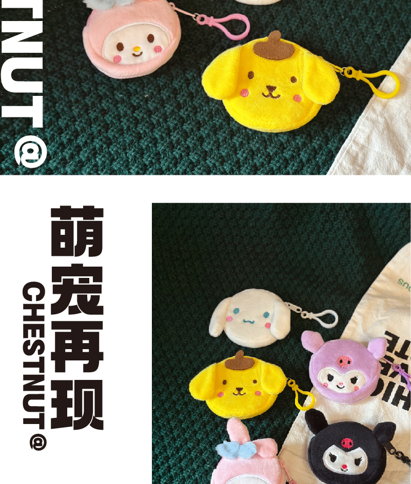 Seri Sanrio dompet kecil bulat mainan mewah tas earphone tas gantungan kunci boneka anjing puding anjing yuui