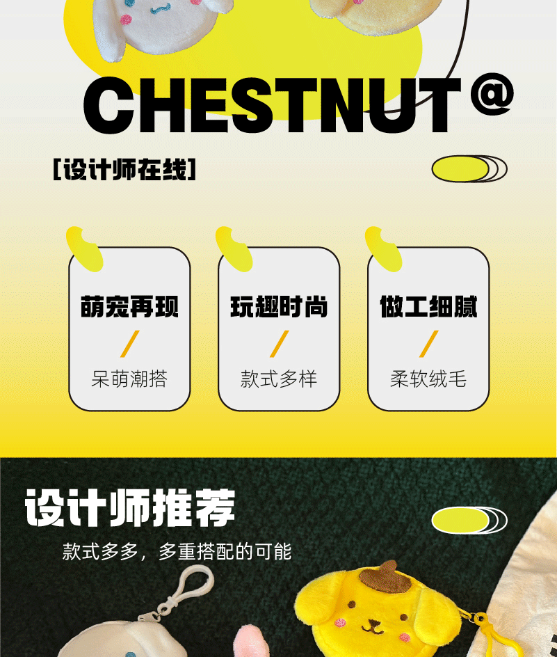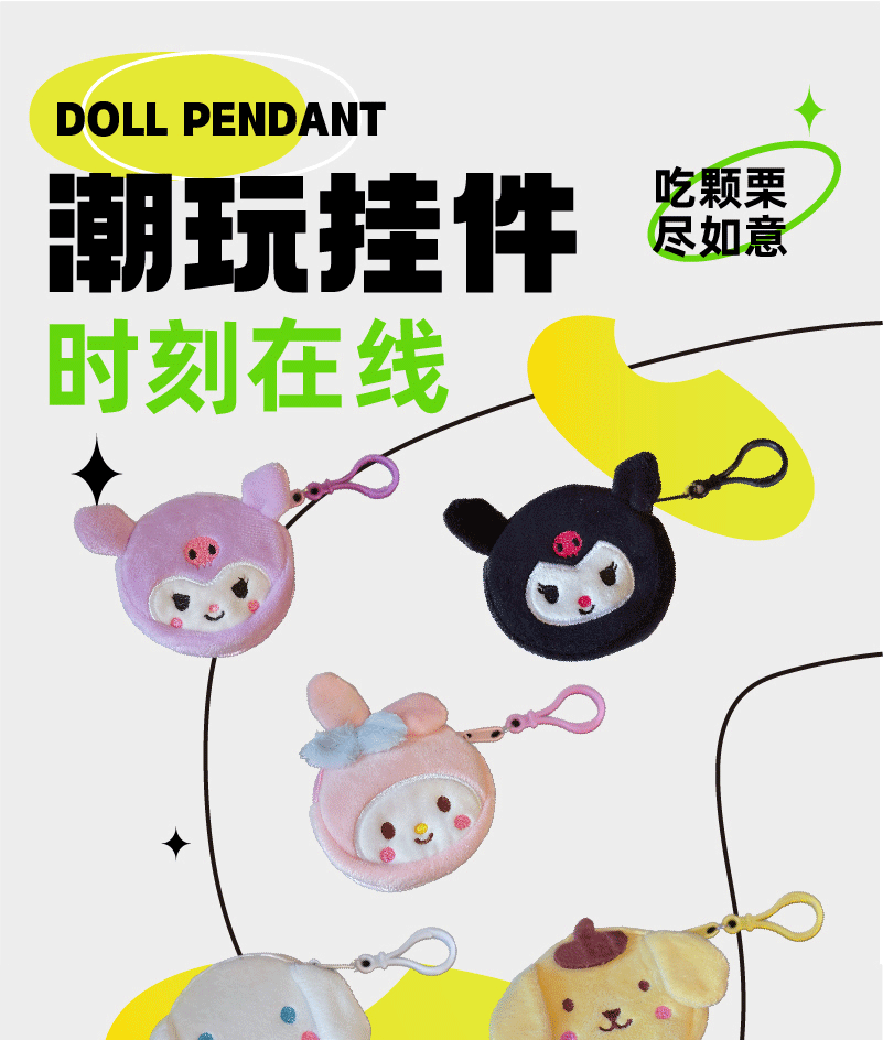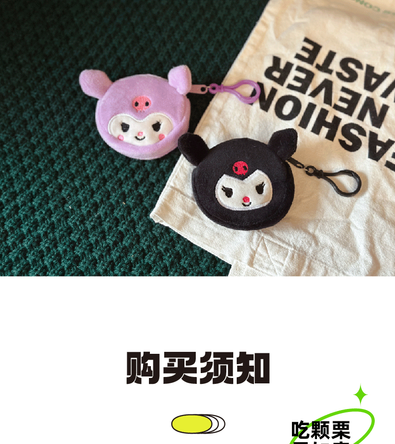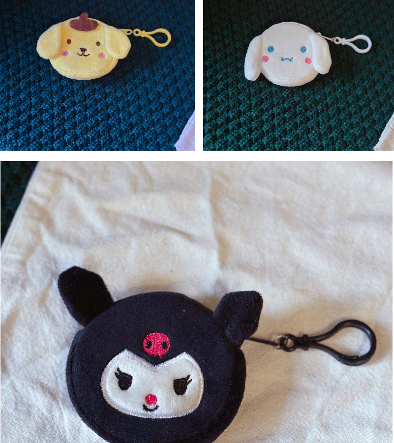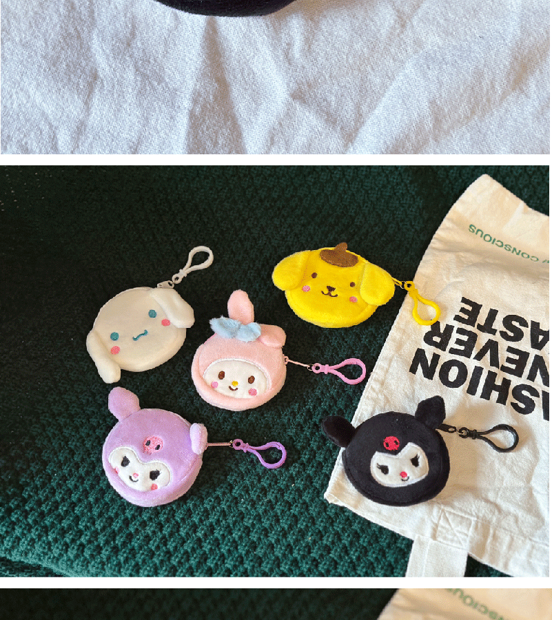 Seri Sanrio dompet kecil bulat mainan mewah tas earphone tas gantungan kunci boneka anjing puding anjing yuui