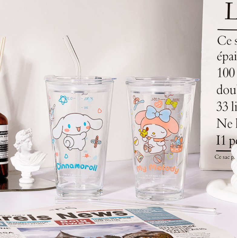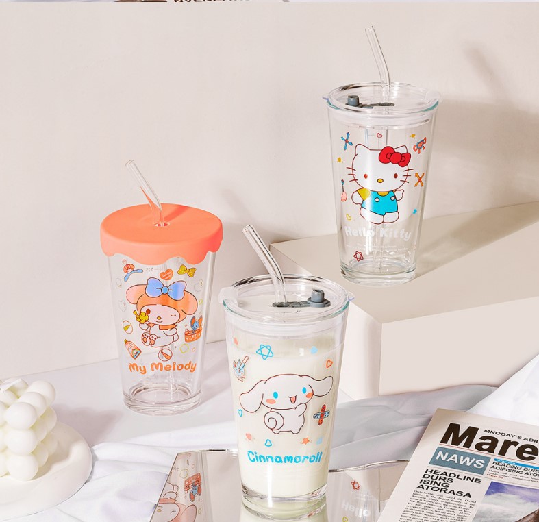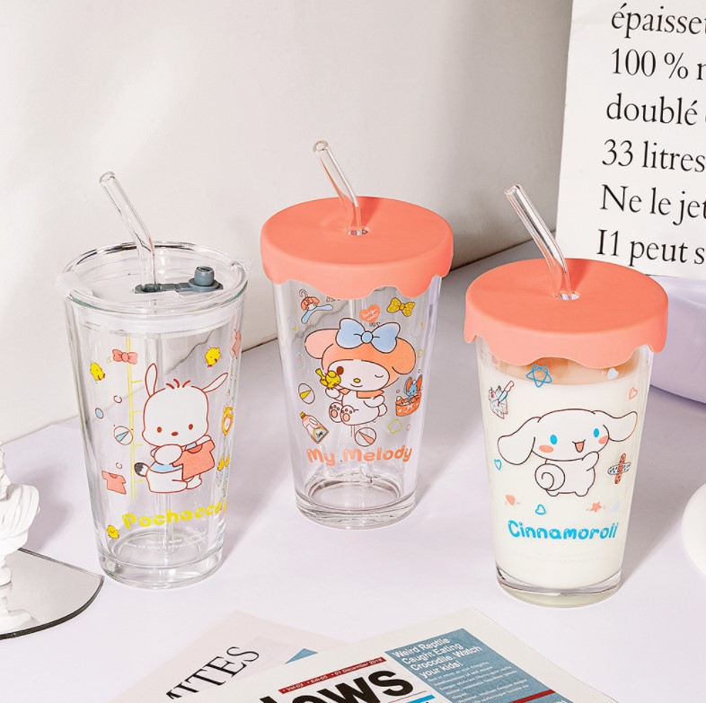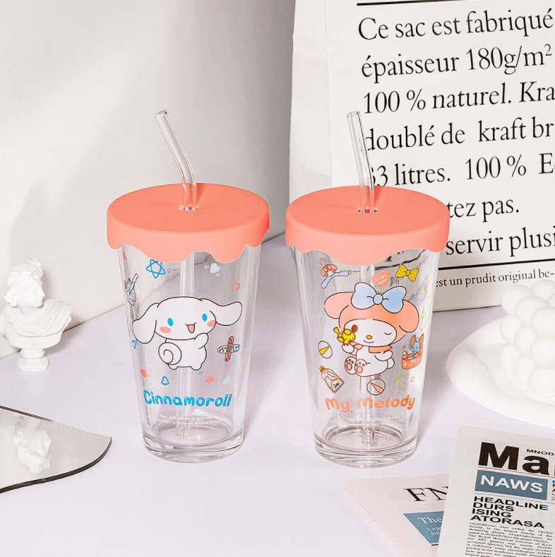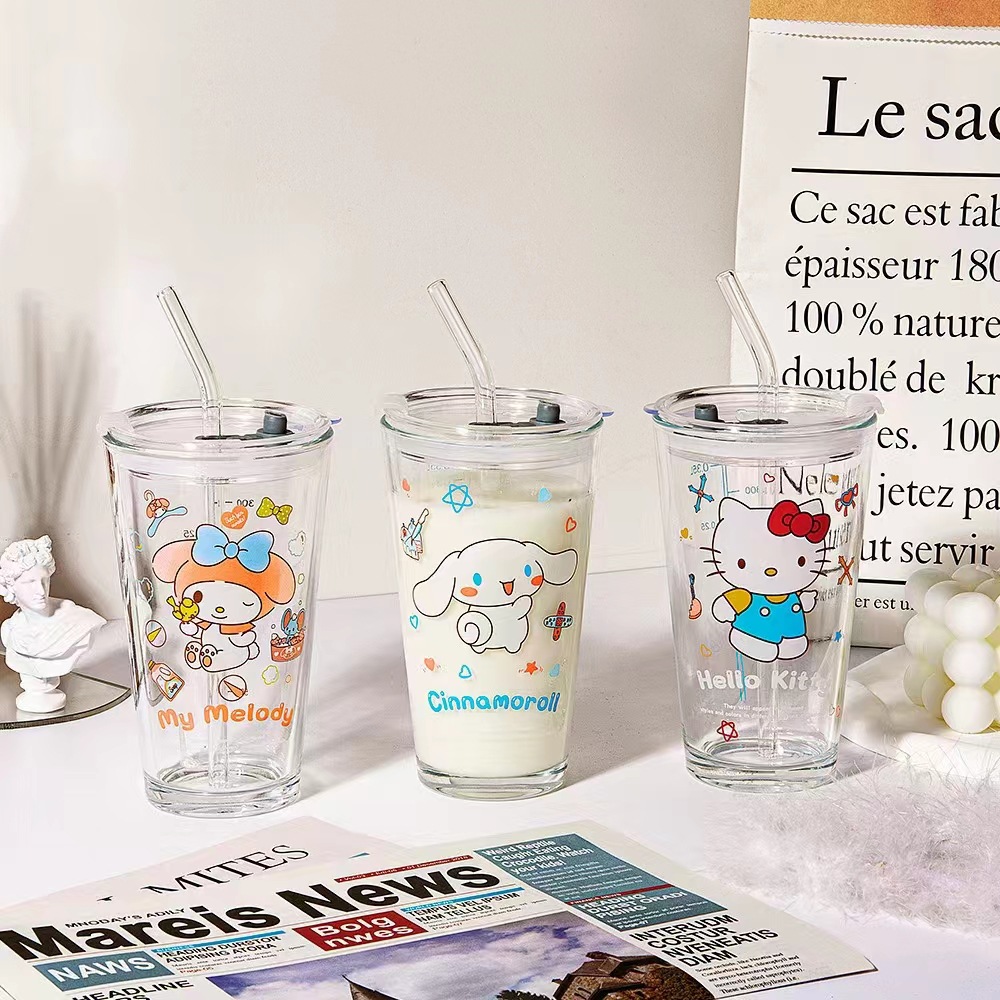 Cangkir air Sanrio, gaya INS hadiah ulang tahun cangkir sedotan kaca selebriti internet cangkir susu jus rumah tangga