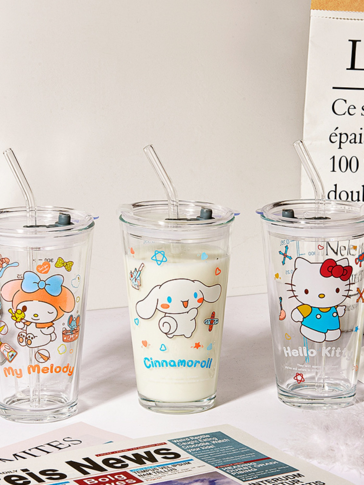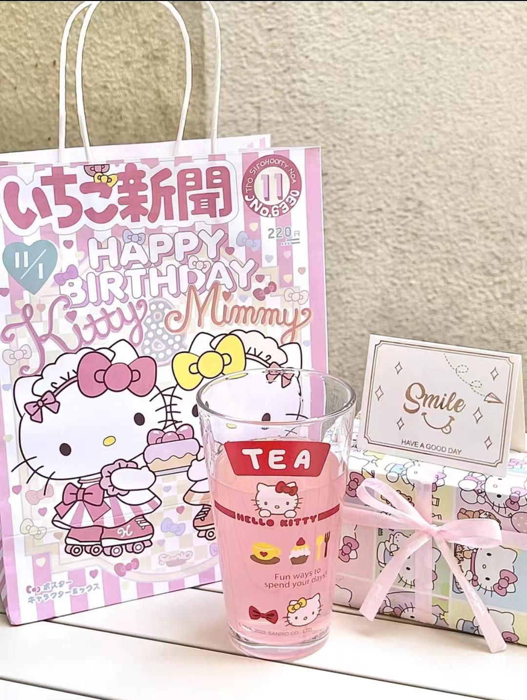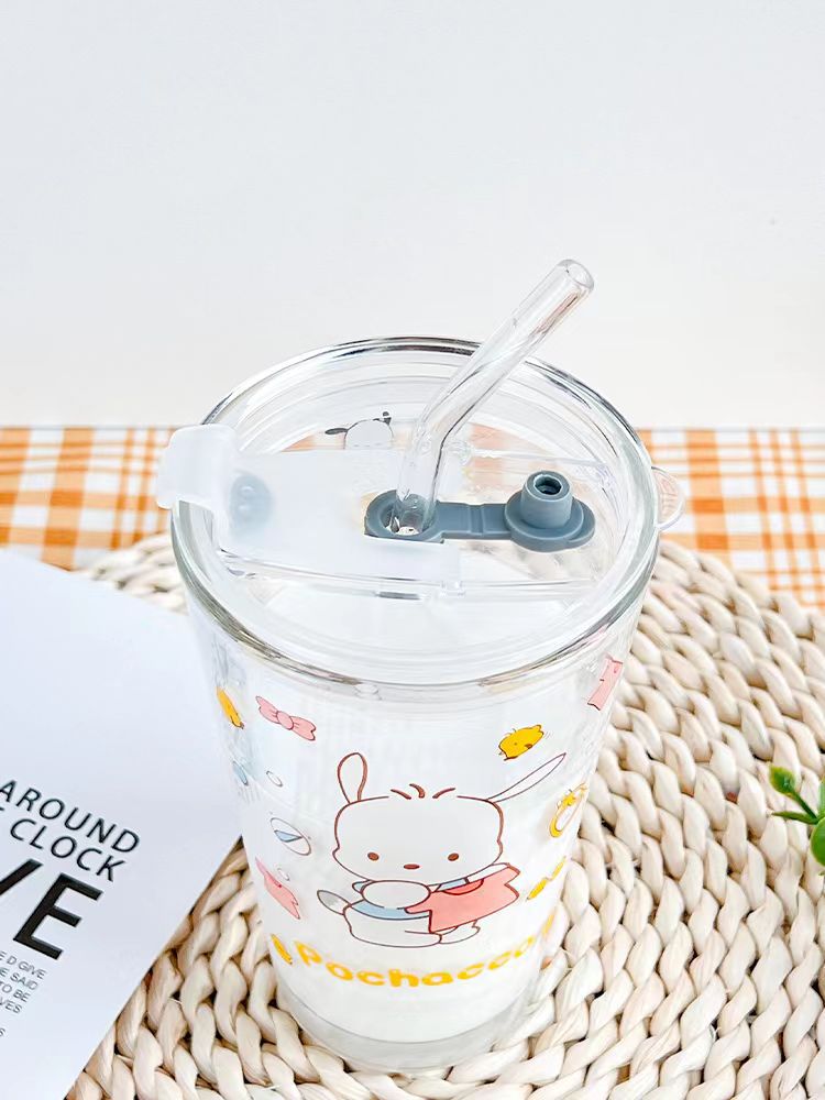 Cangkir air Sanrio, gaya INS hadiah ulang tahun cangkir sedotan kaca selebriti internet cangkir susu jus rumah tangga