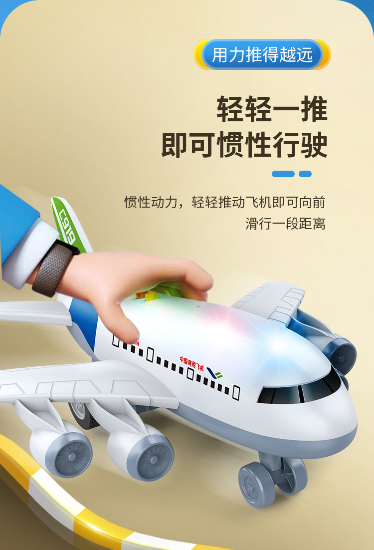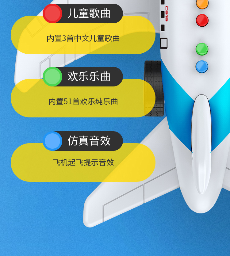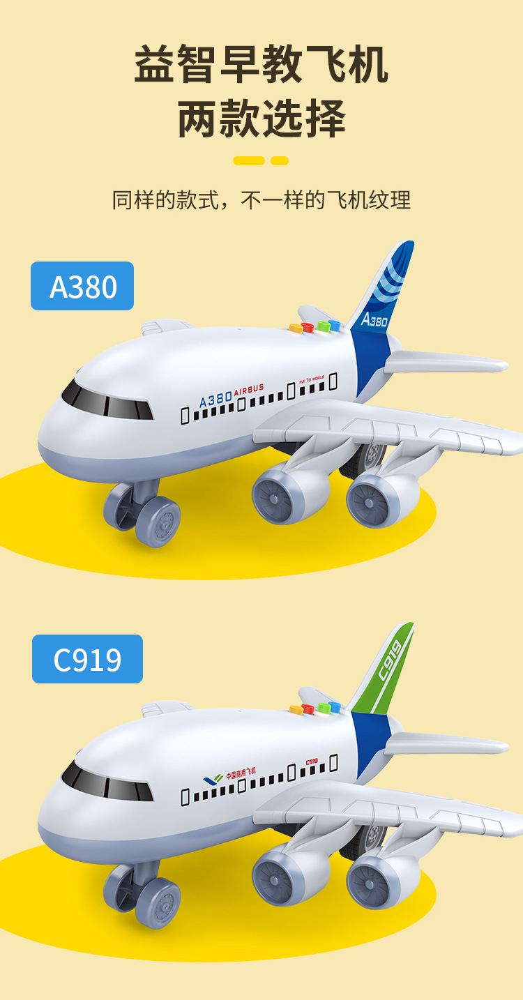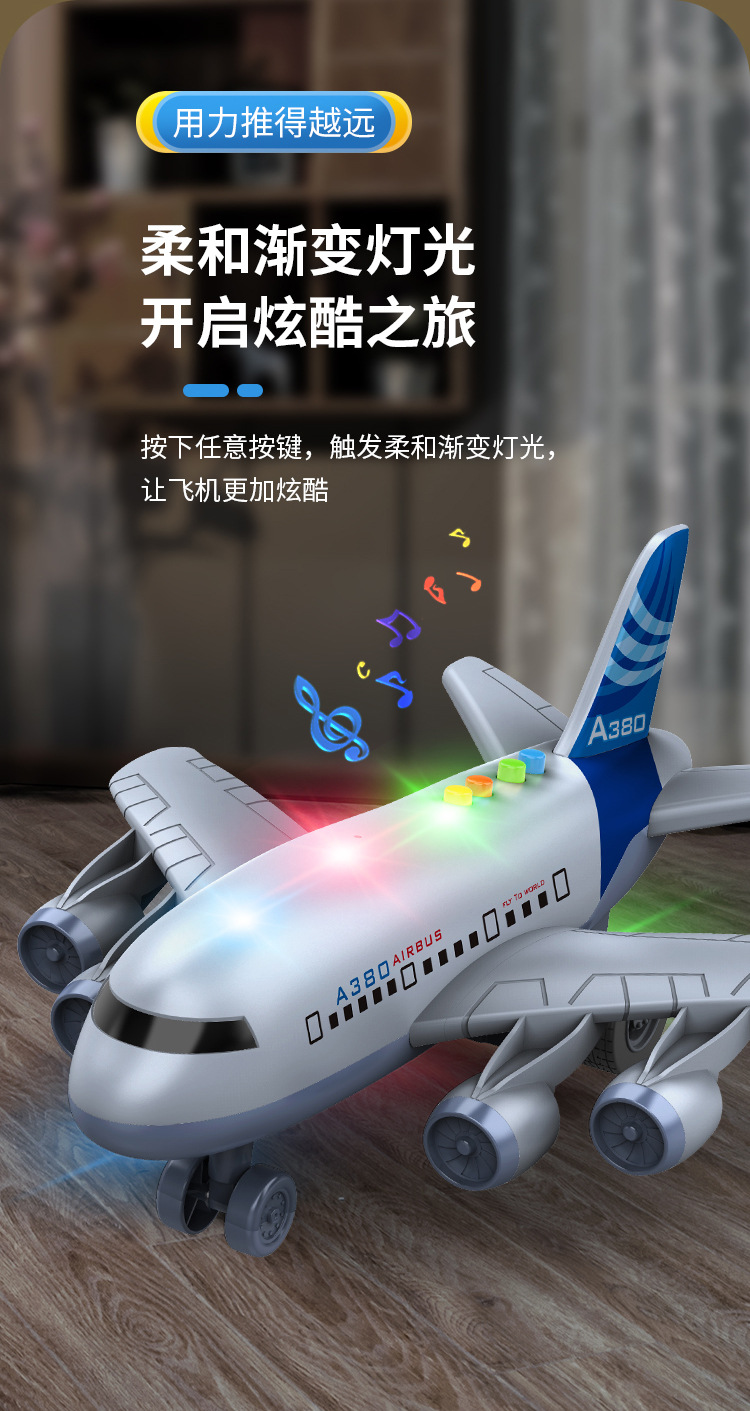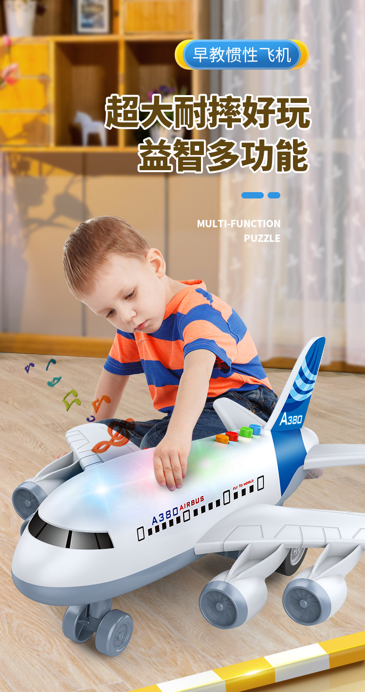 Mainan pesawat simulasi anak-anak, mainan pesawat terbang musik bayi laki-laki, pesawat penumpang A380 anti jatuh, ukuran besar
