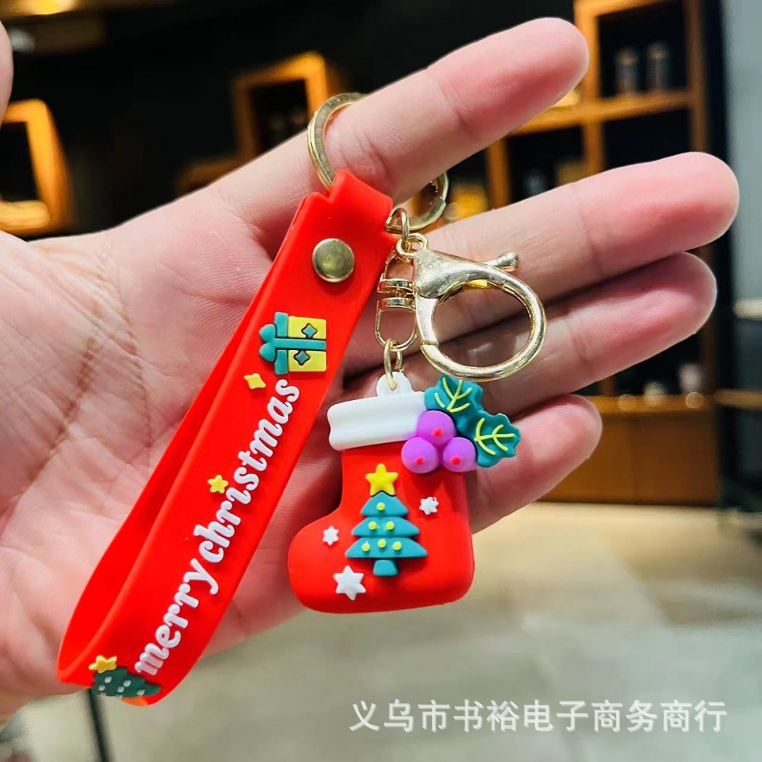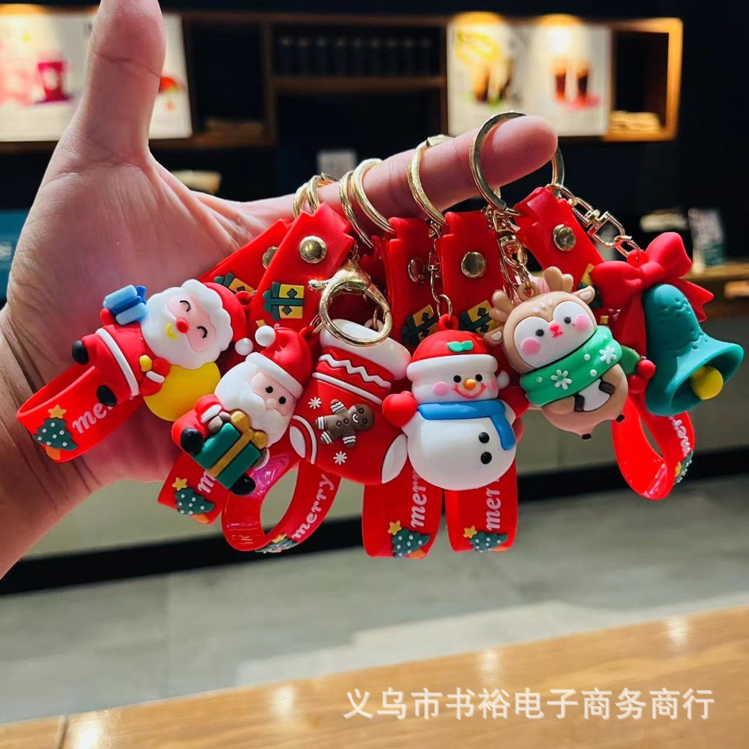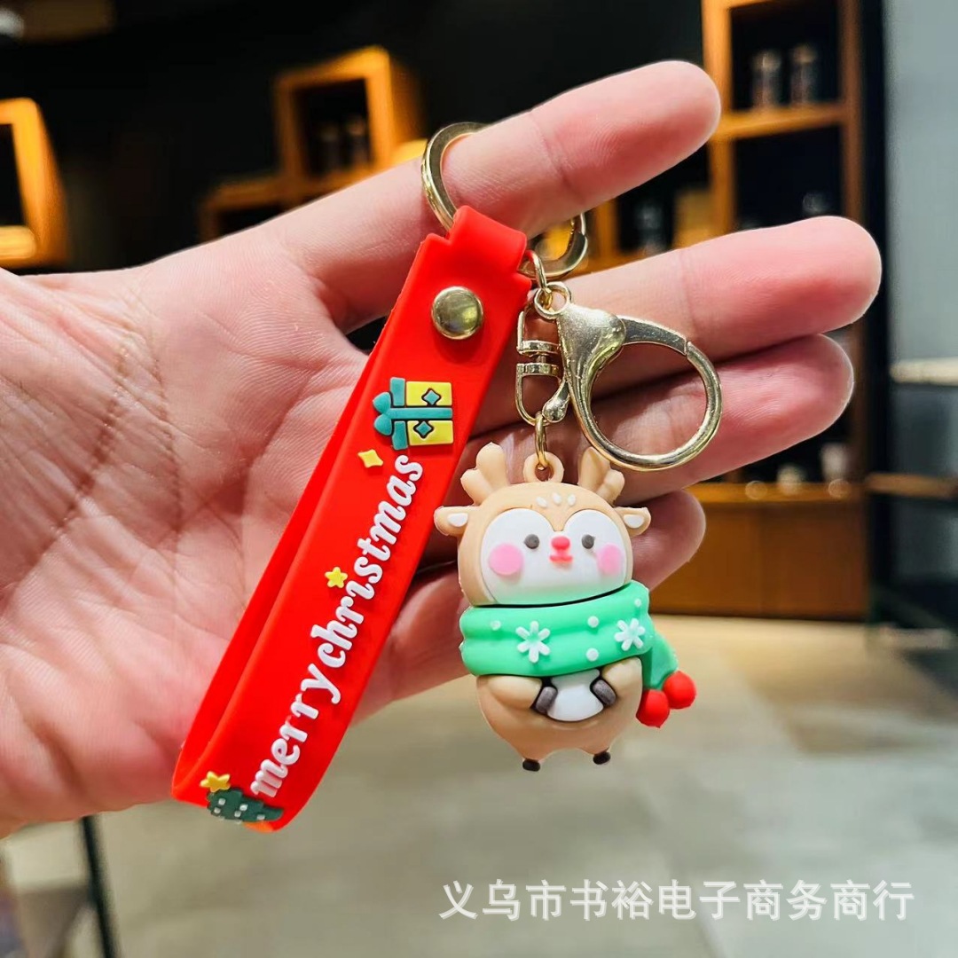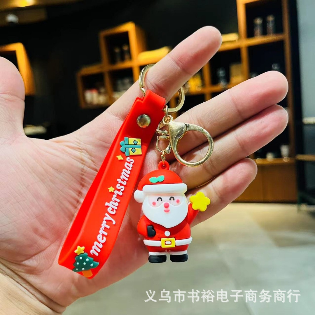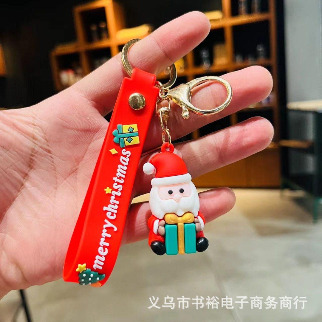 Santa Claus gantungan kunci liontin manusia salju Natal gantungan kunci tas mobil ornamen lintas batas mendorong hadiah grosir