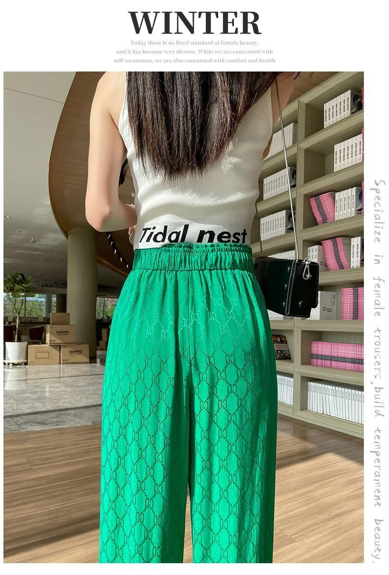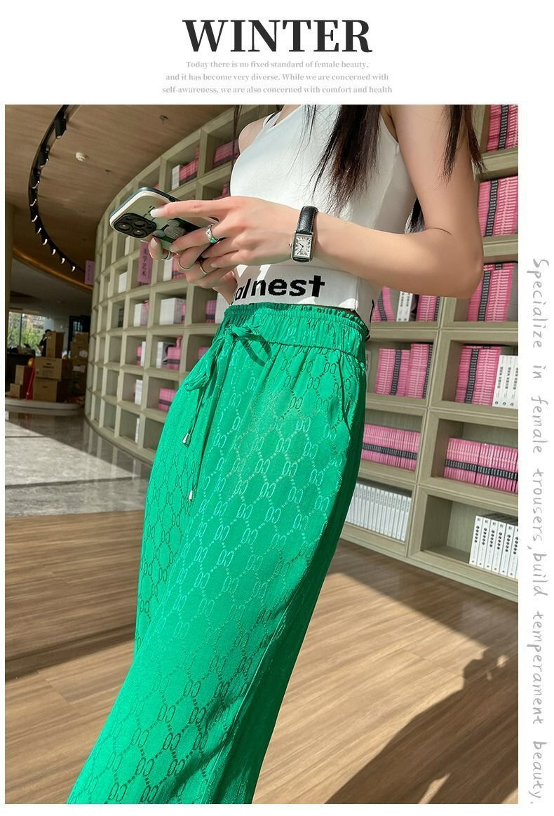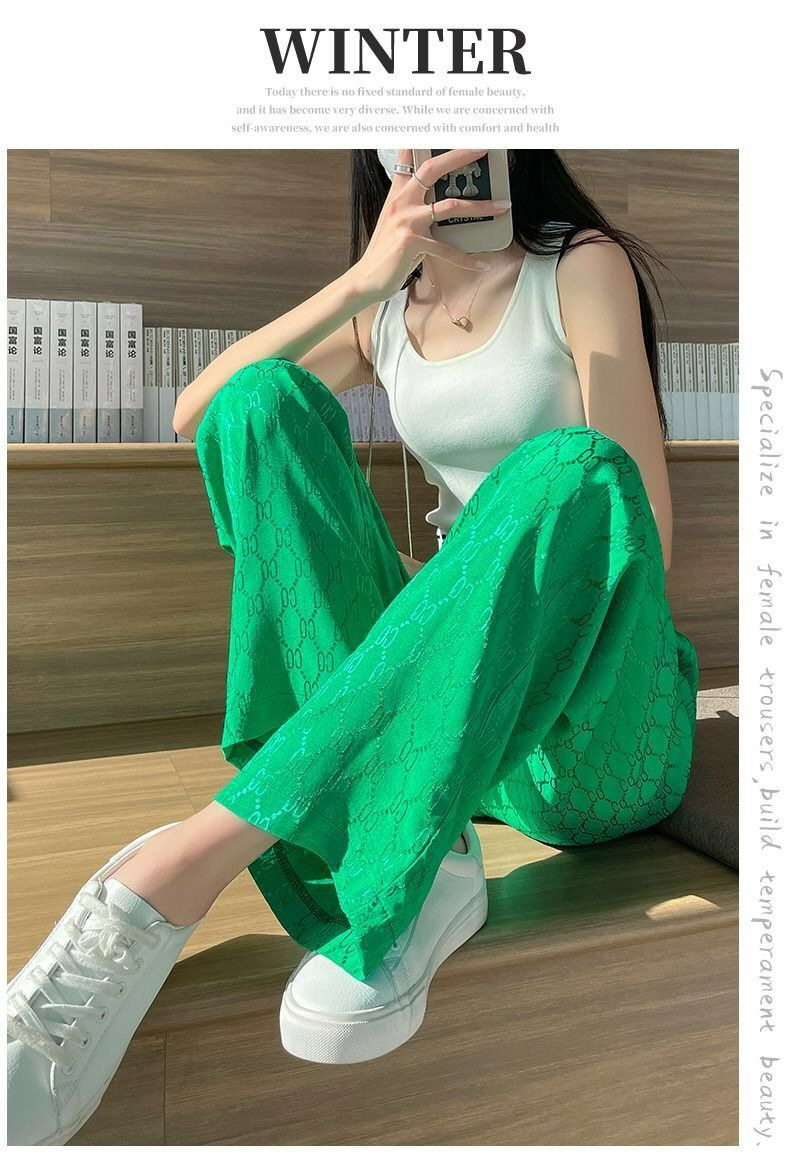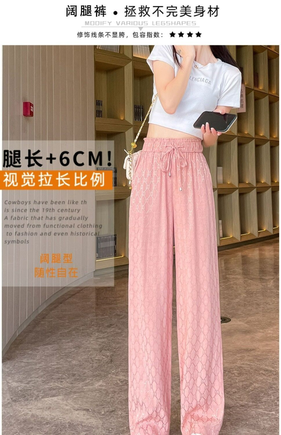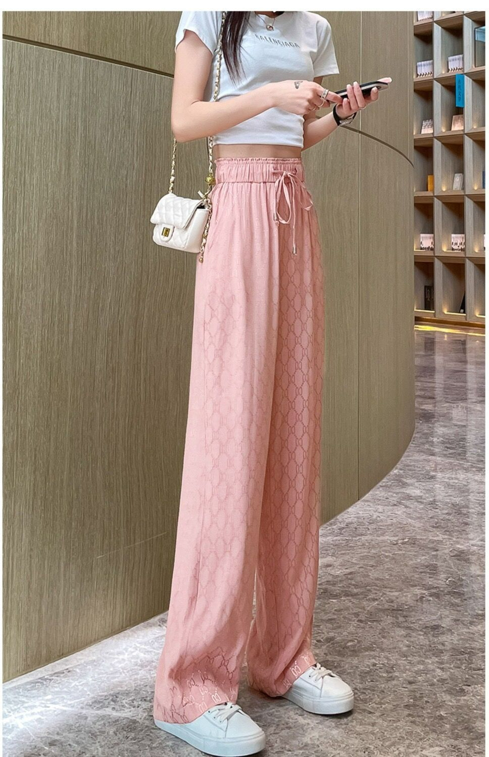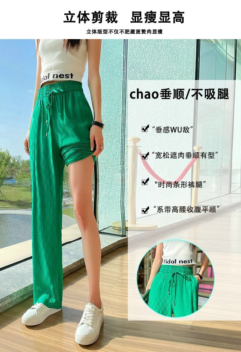 Celana kaki lebar wanita, bawahan tipis pinggang tinggi menggantung lurus longgar ukuran besar musim panas 2024
