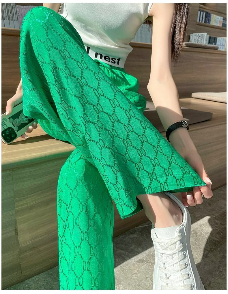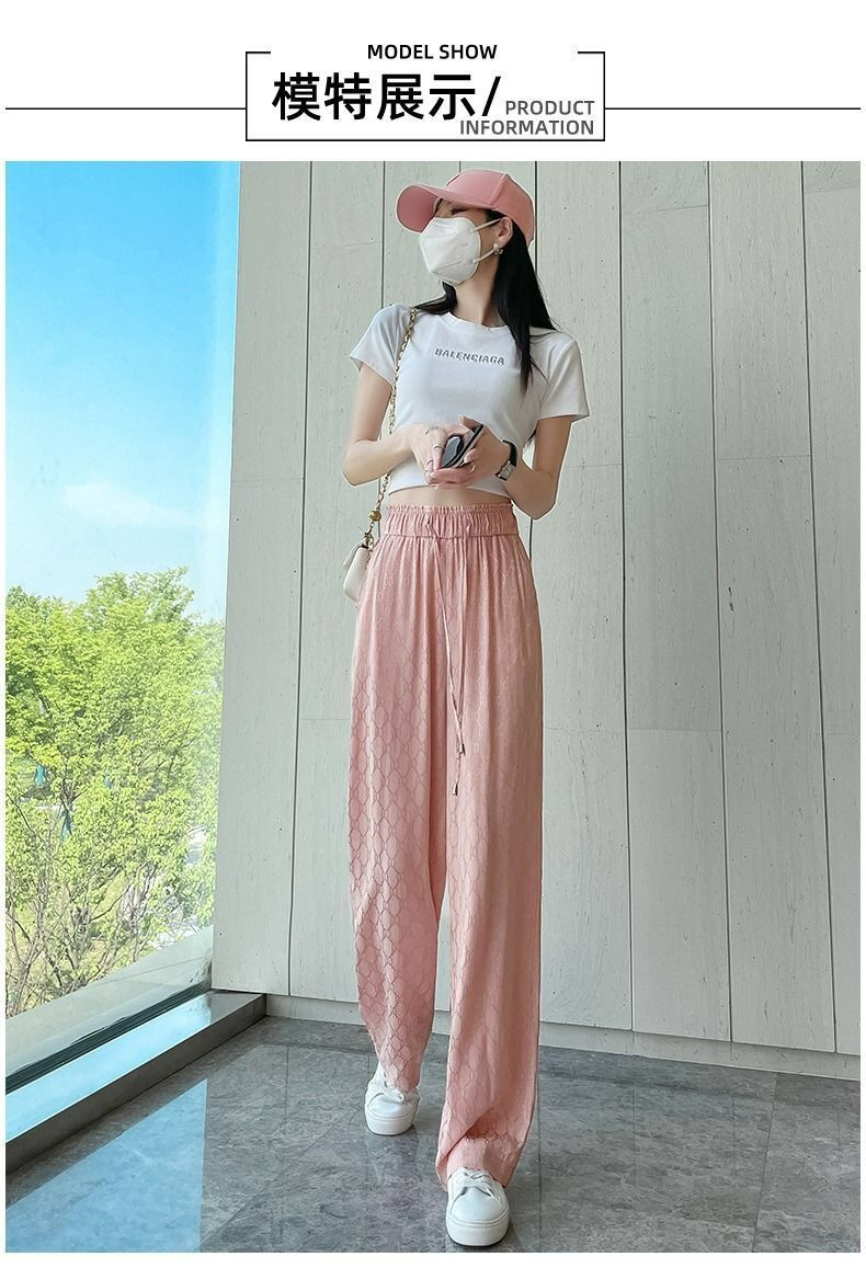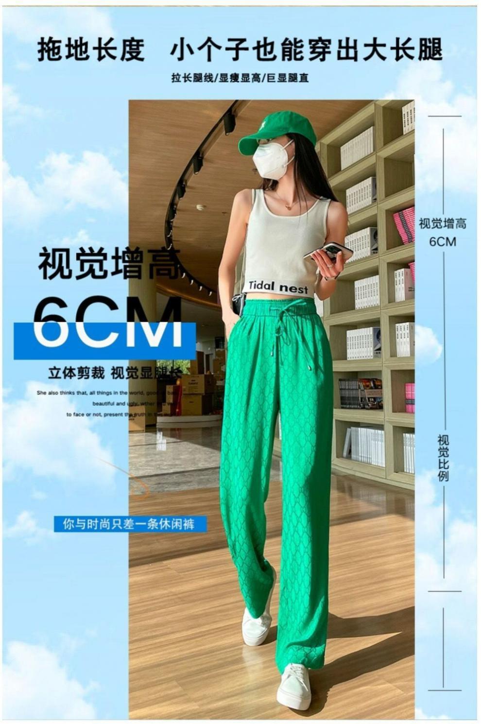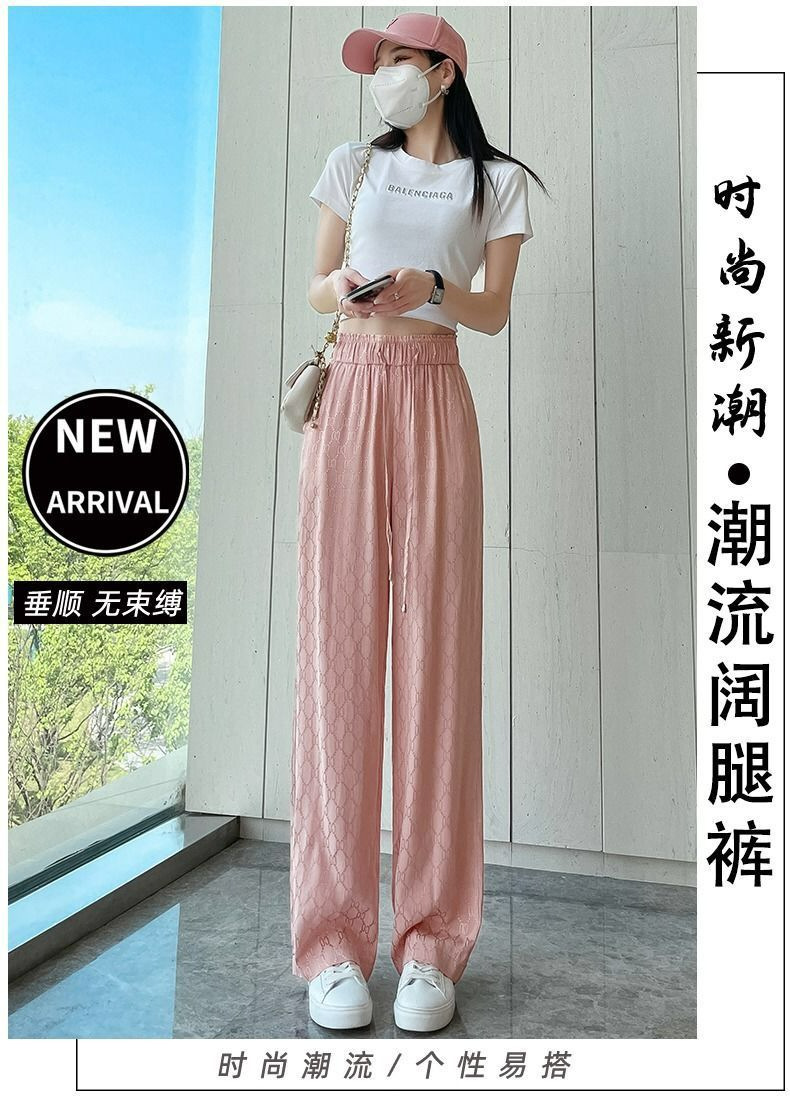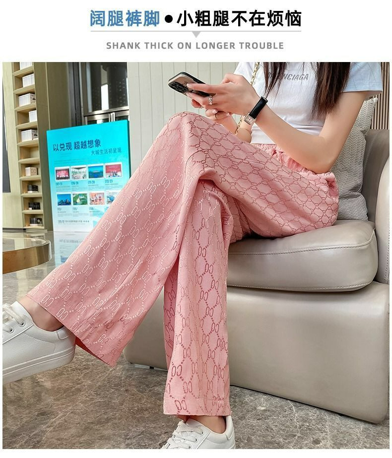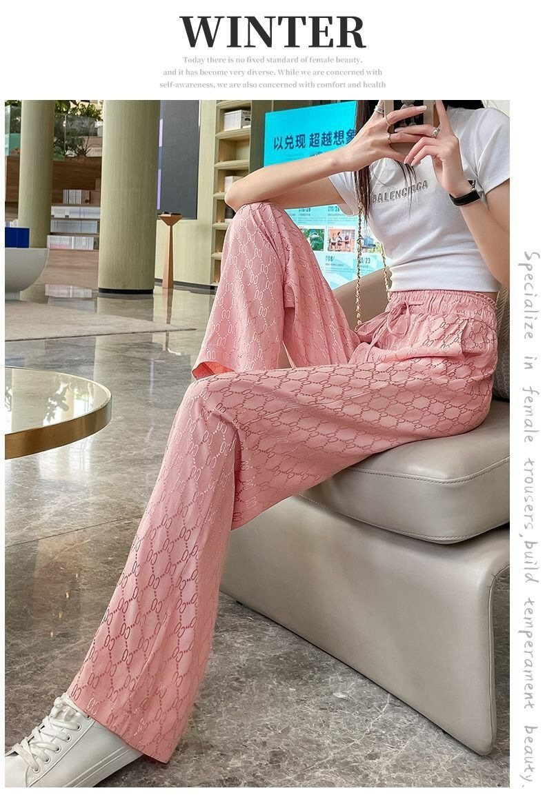 Celana kaki lebar wanita, bawahan tipis pinggang tinggi menggantung lurus longgar ukuran besar musim panas 2024