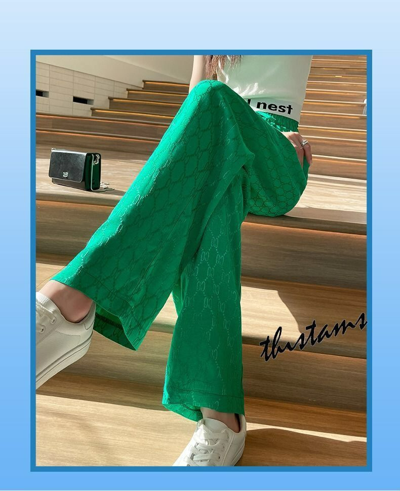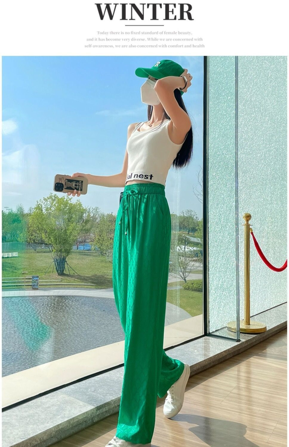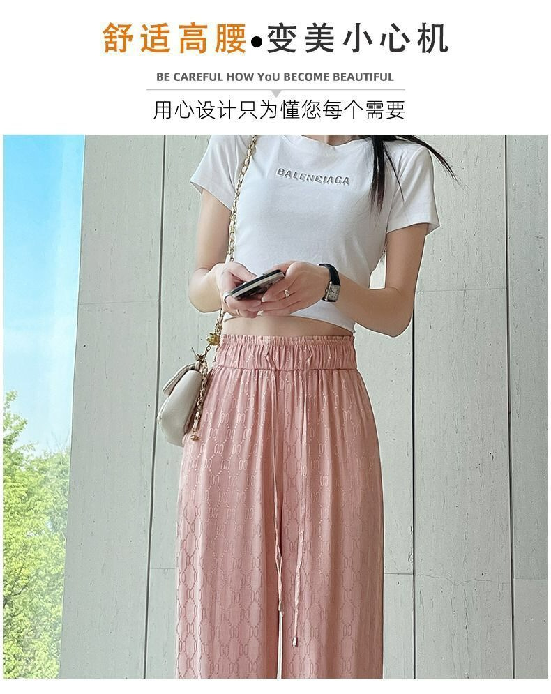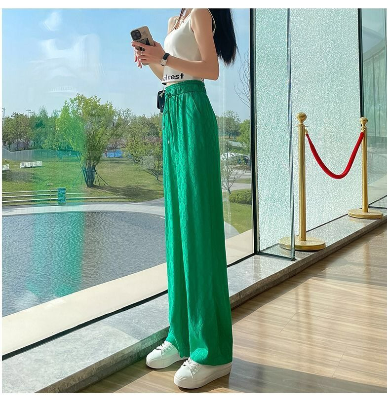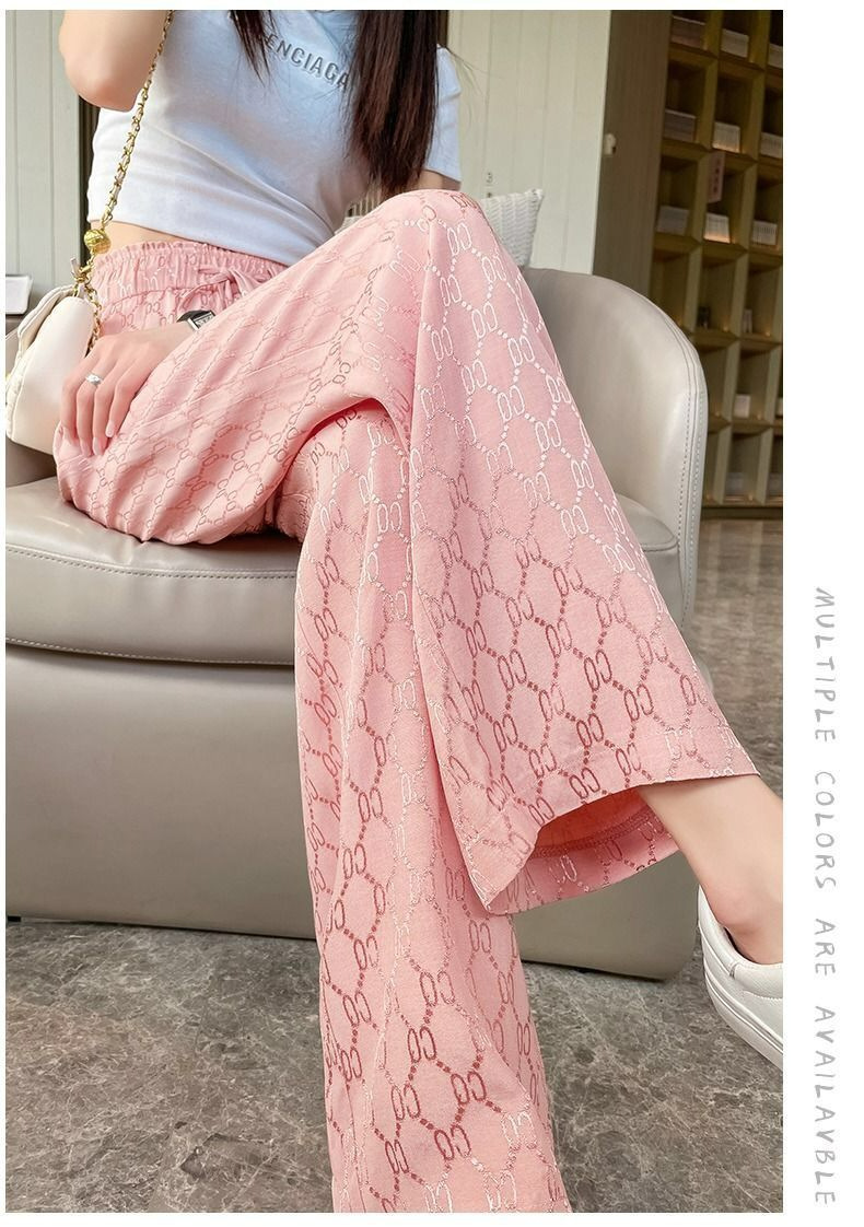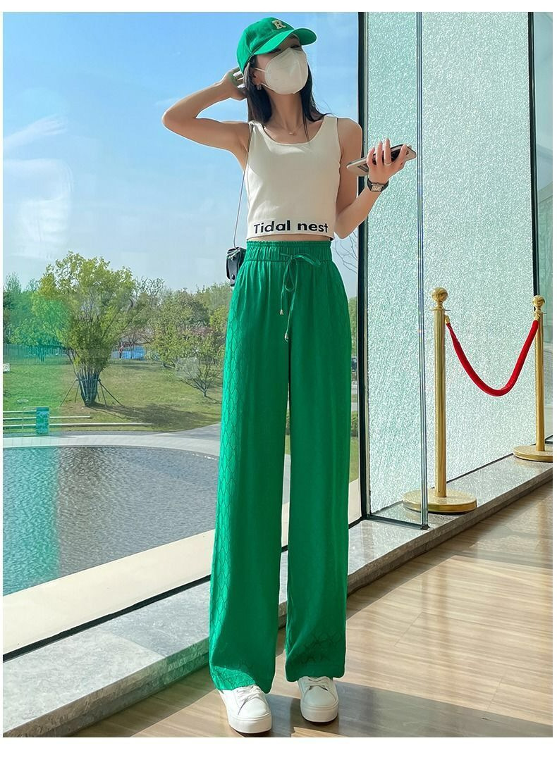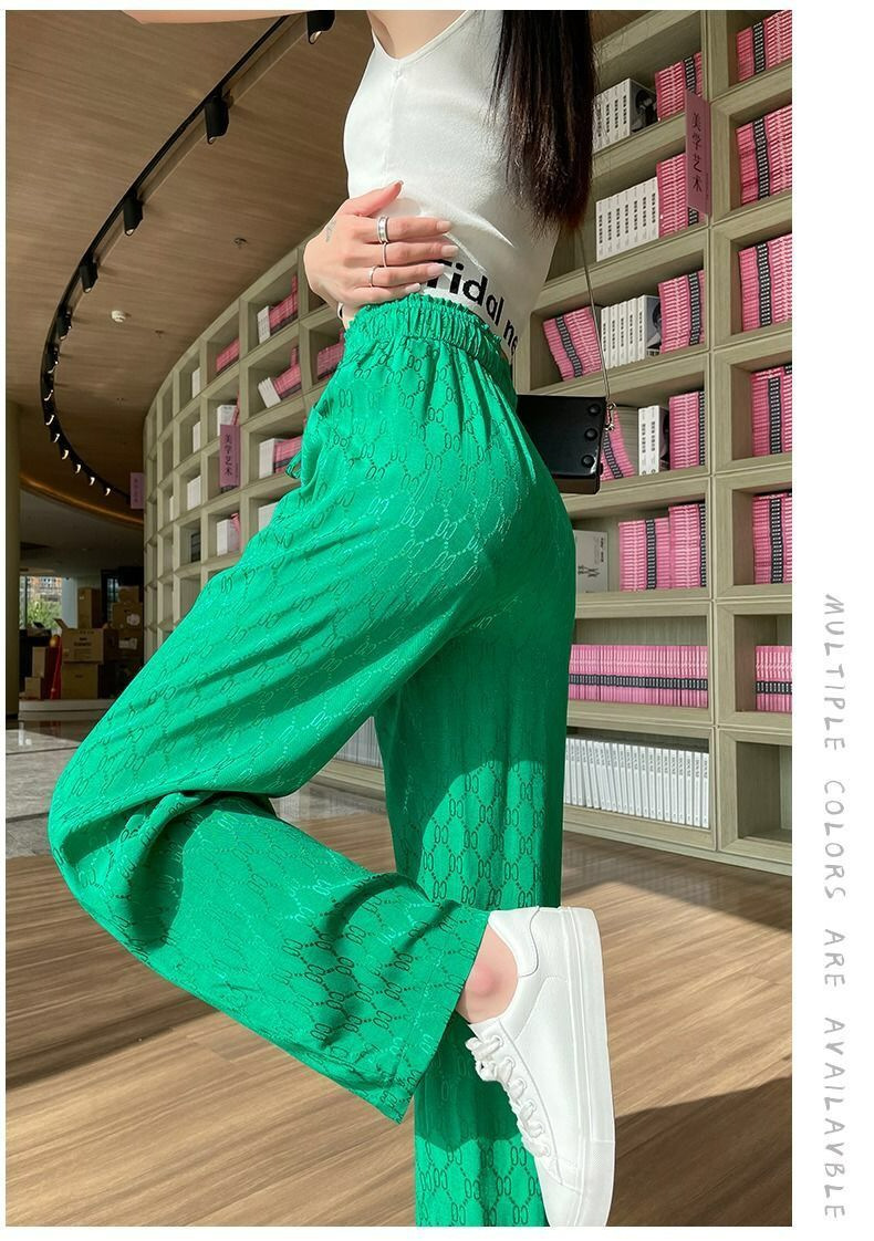Celana kaki lebar wanita, bawahan tipis pinggang tinggi menggantung lurus longgar ukuran besar musim panas 2024