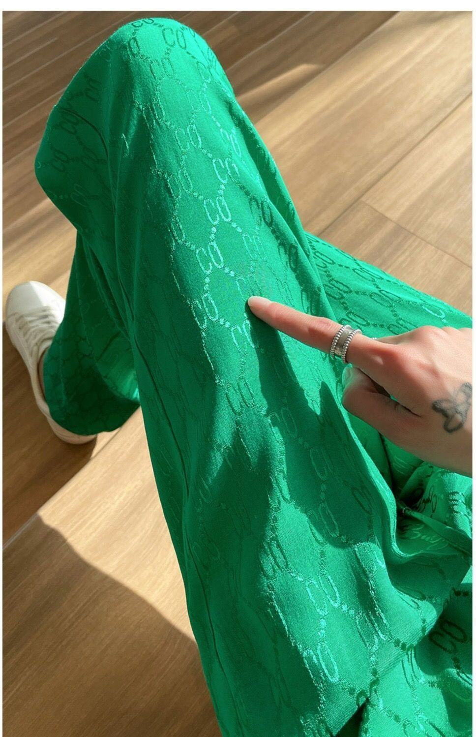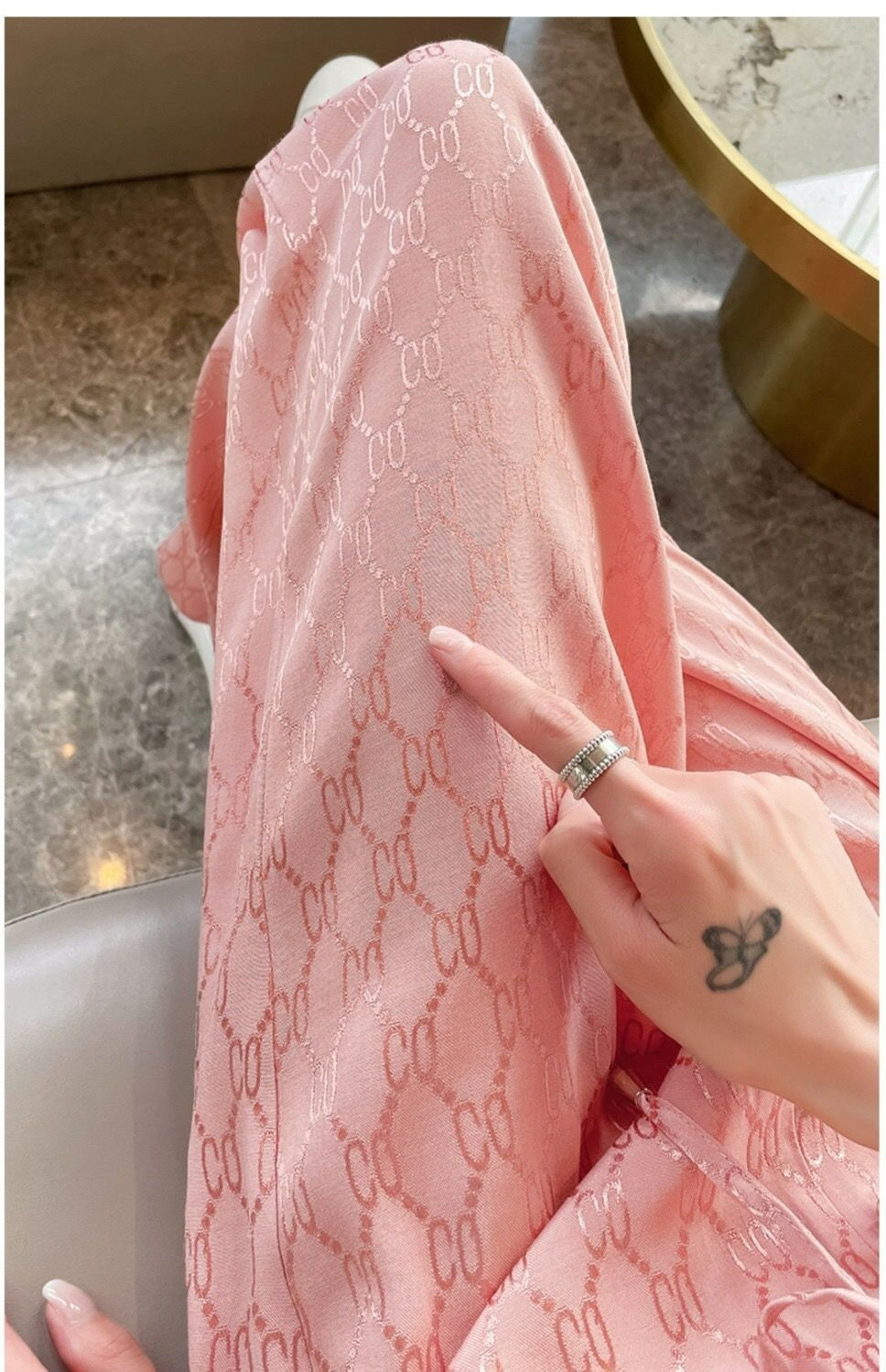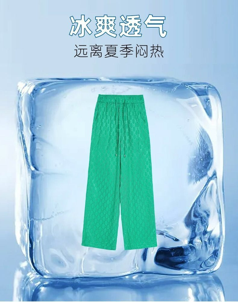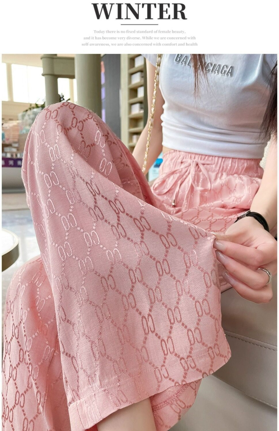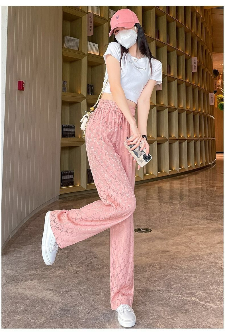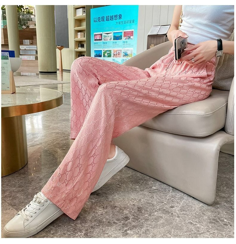 Celana kaki lebar wanita, bawahan tipis pinggang tinggi menggantung lurus longgar ukuran besar musim panas 2024