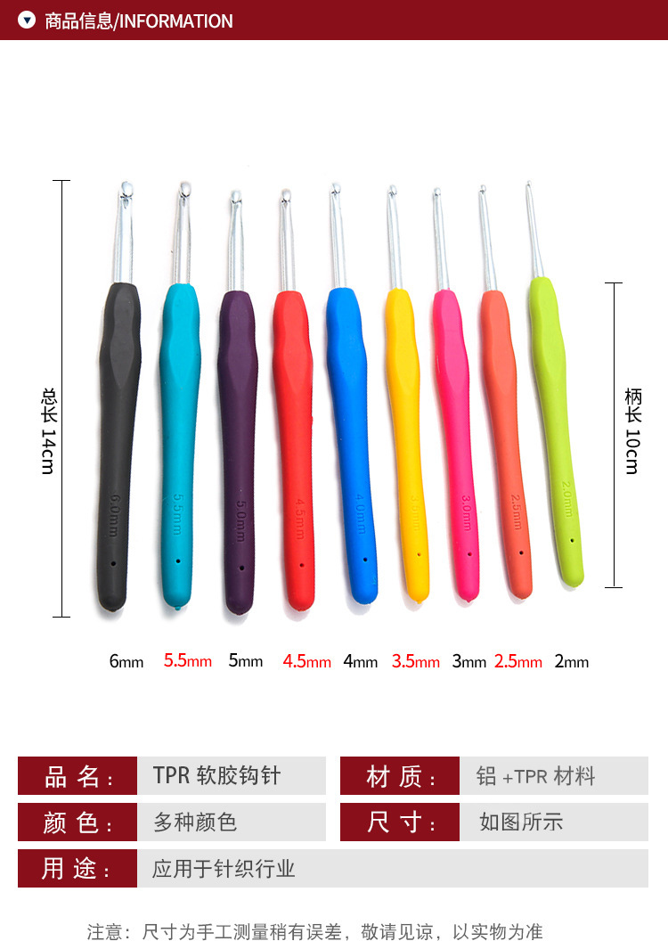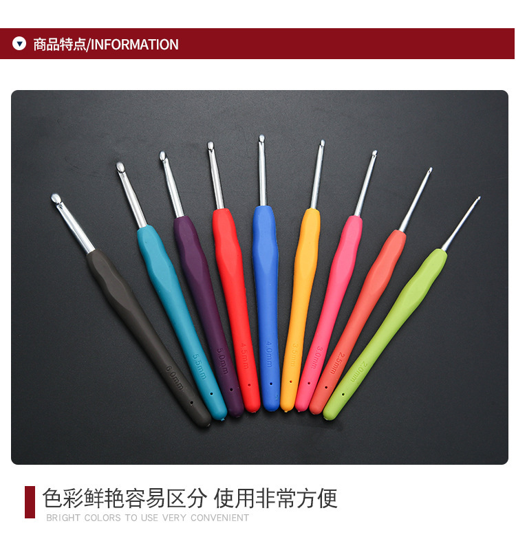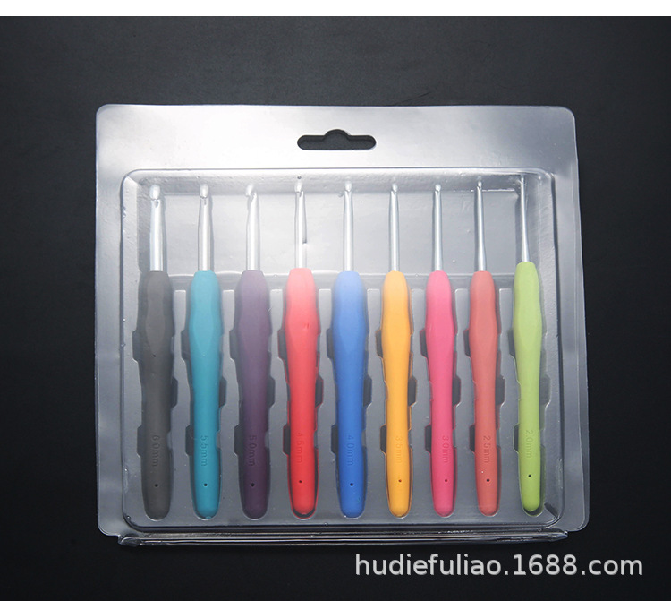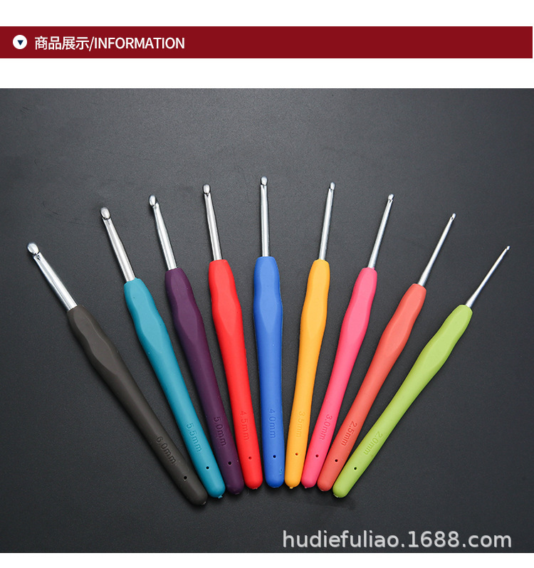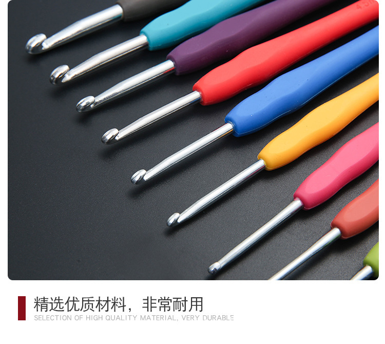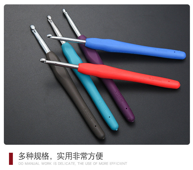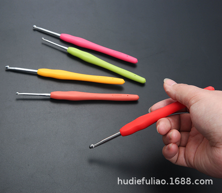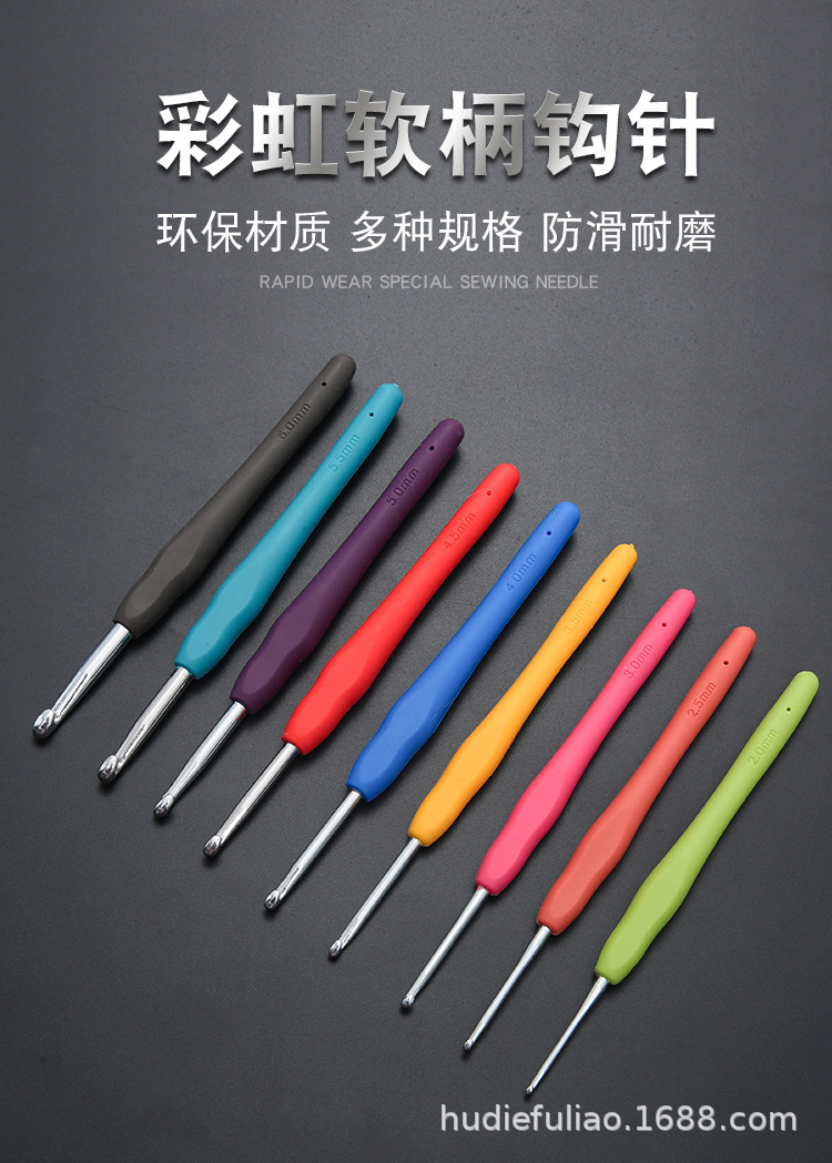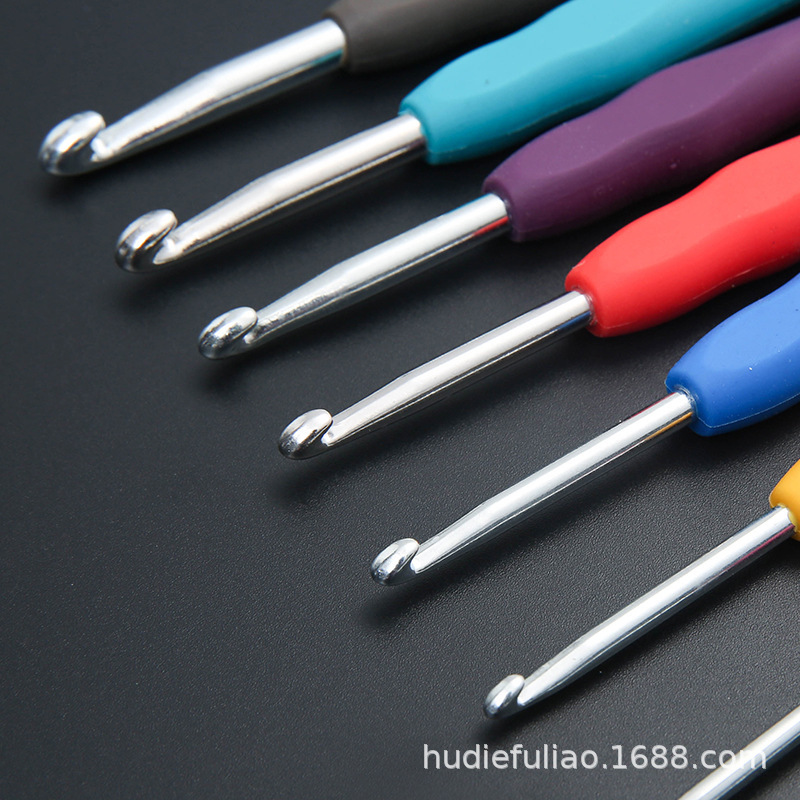 Alat rajut tangan crochet pegangan lembut warna-warni TPR pegangan lembut pelangi solid jarum wol silikon kualitas tinggi rajutan aluminium