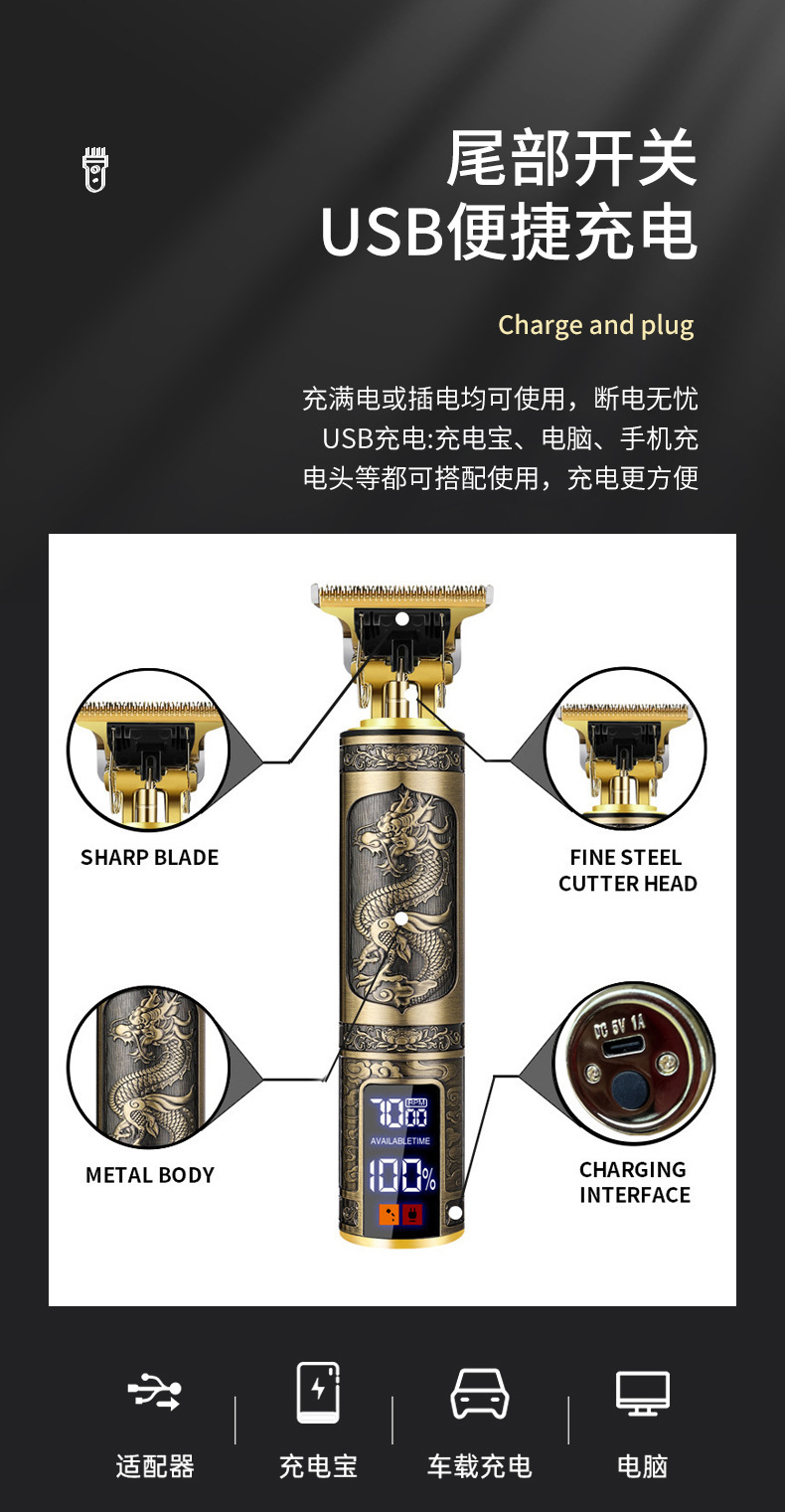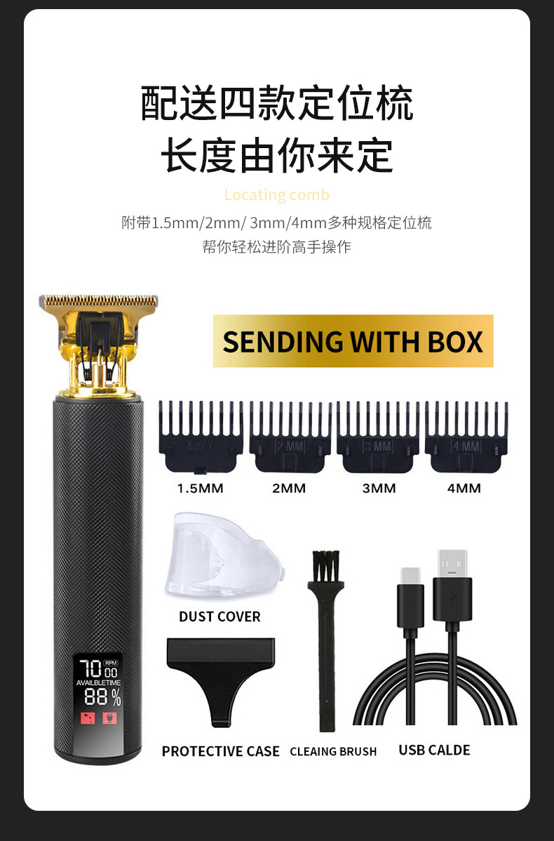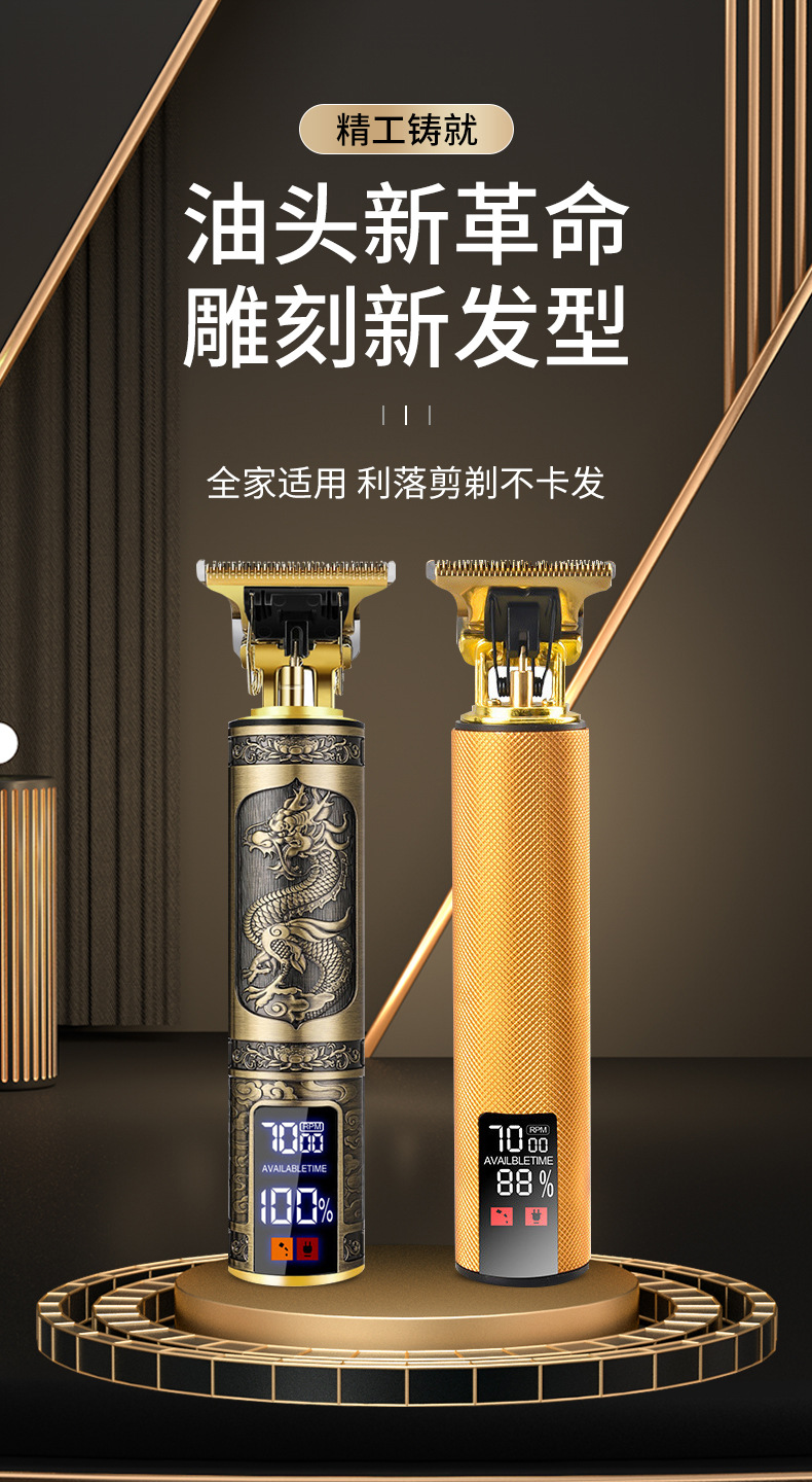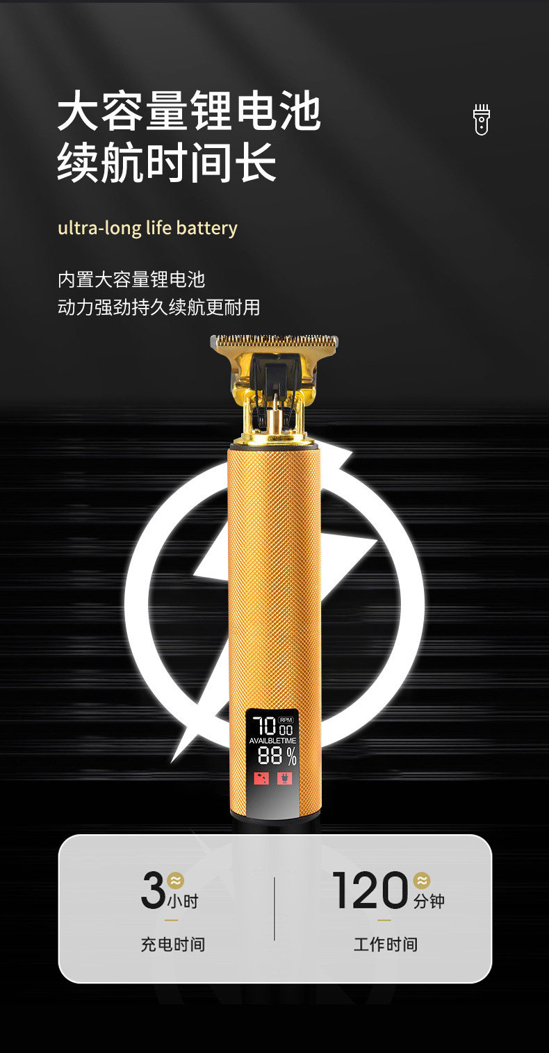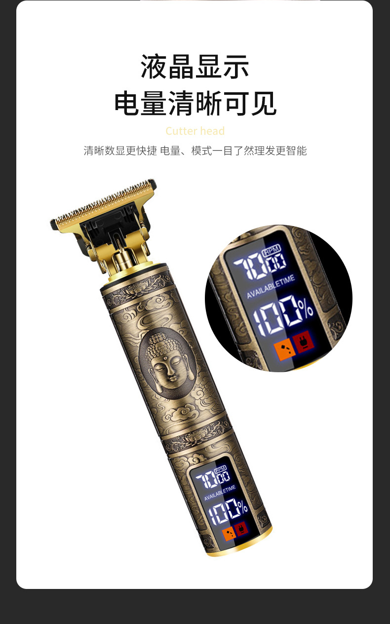 Cross-border gunting kepala minyak spesial tampilan digital salon rambut pemotong rambut T9 isi ulang khusus rumah tangga gunting rambut elektrik botak pria