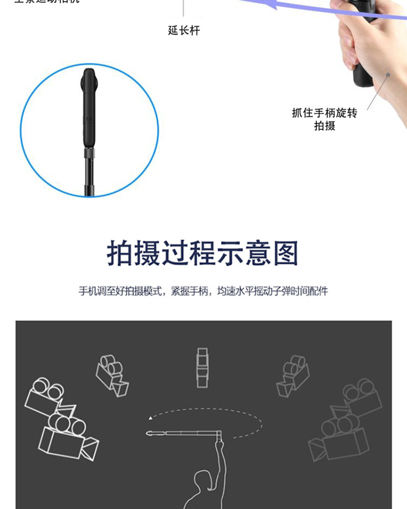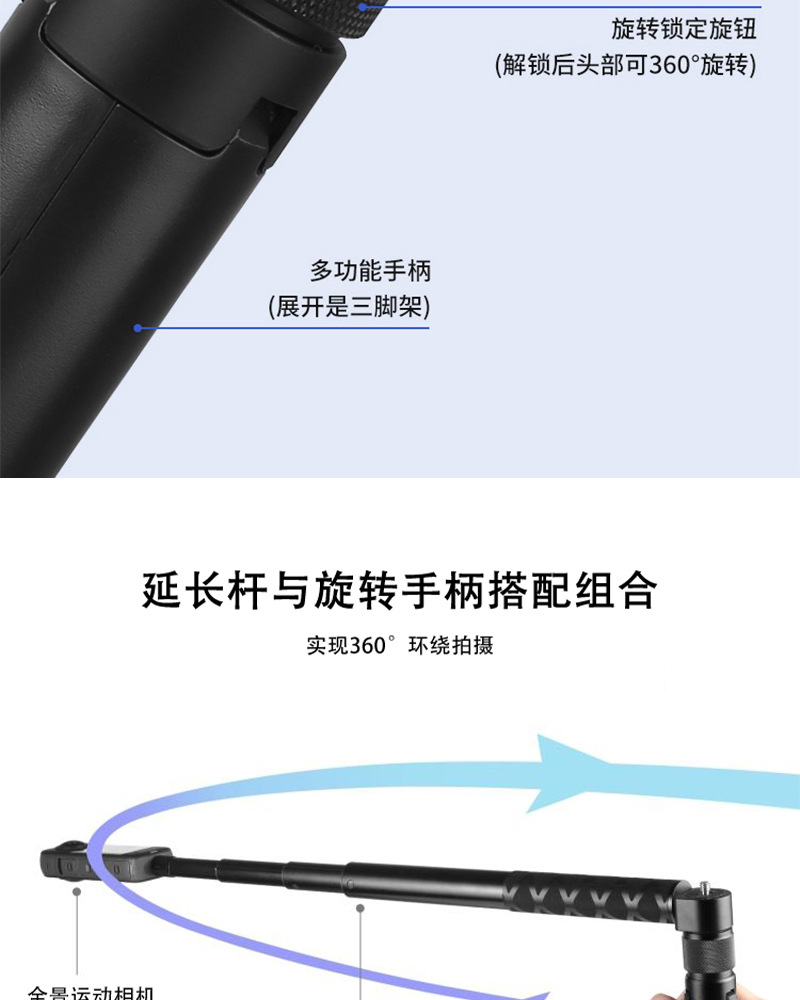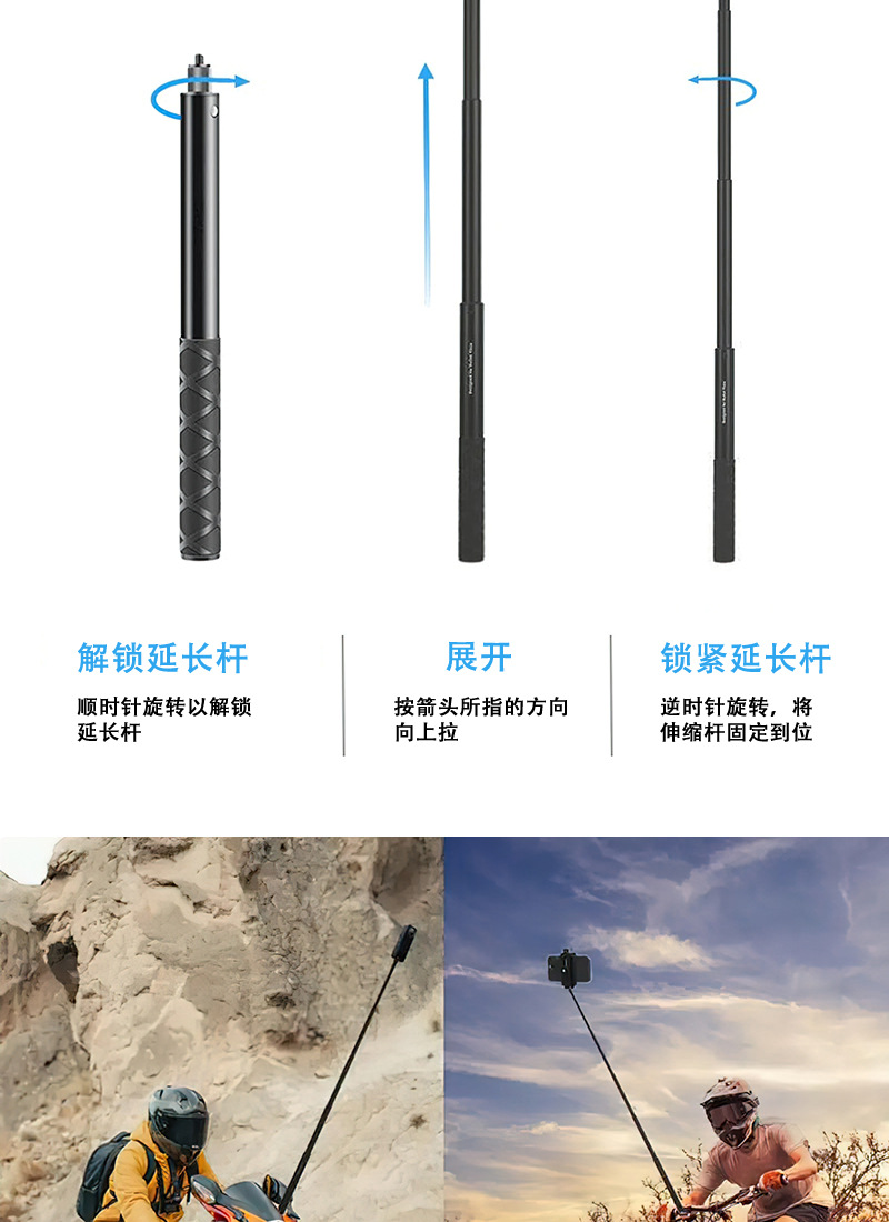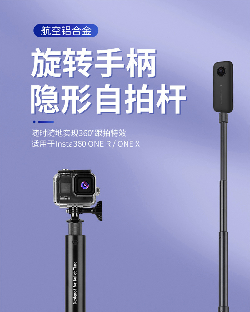 Tongkat selfie ekstensi kamera panoramic Insta360 ONE/X3, batang ekstensi alloy aluminium, gagang putar teleskopik, tersedia dalam stok