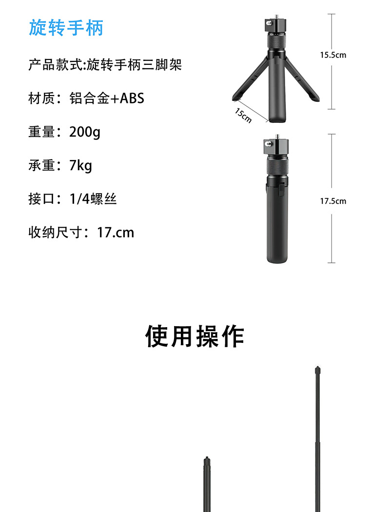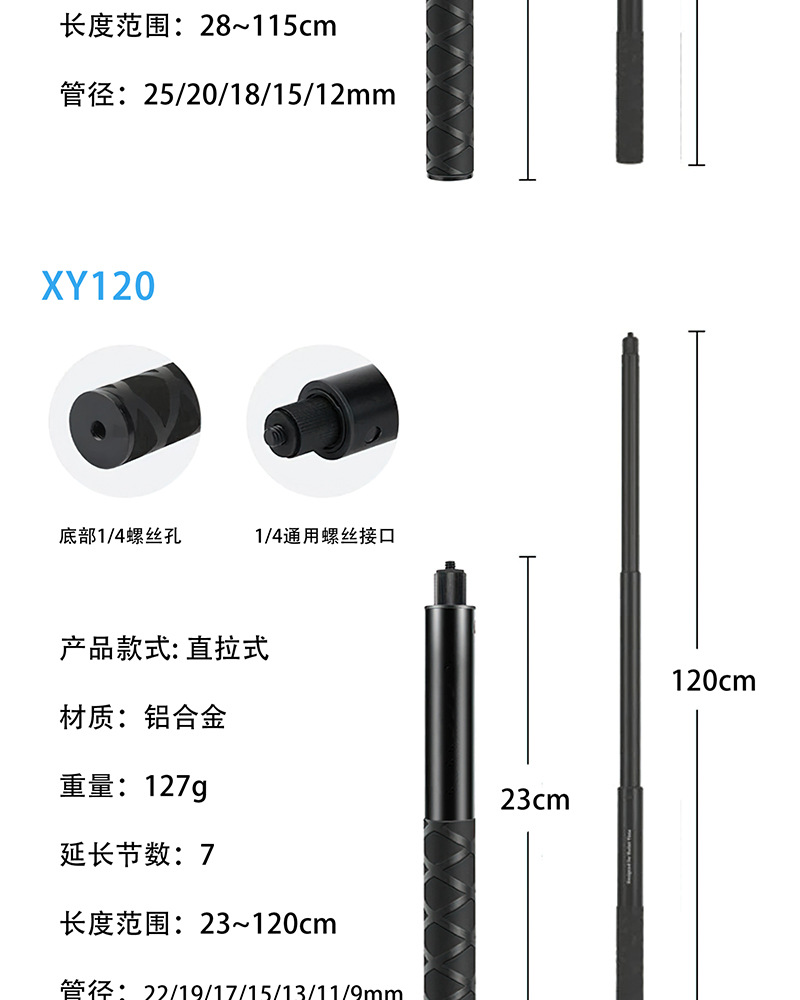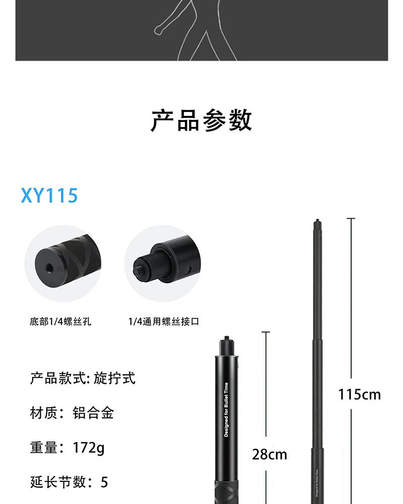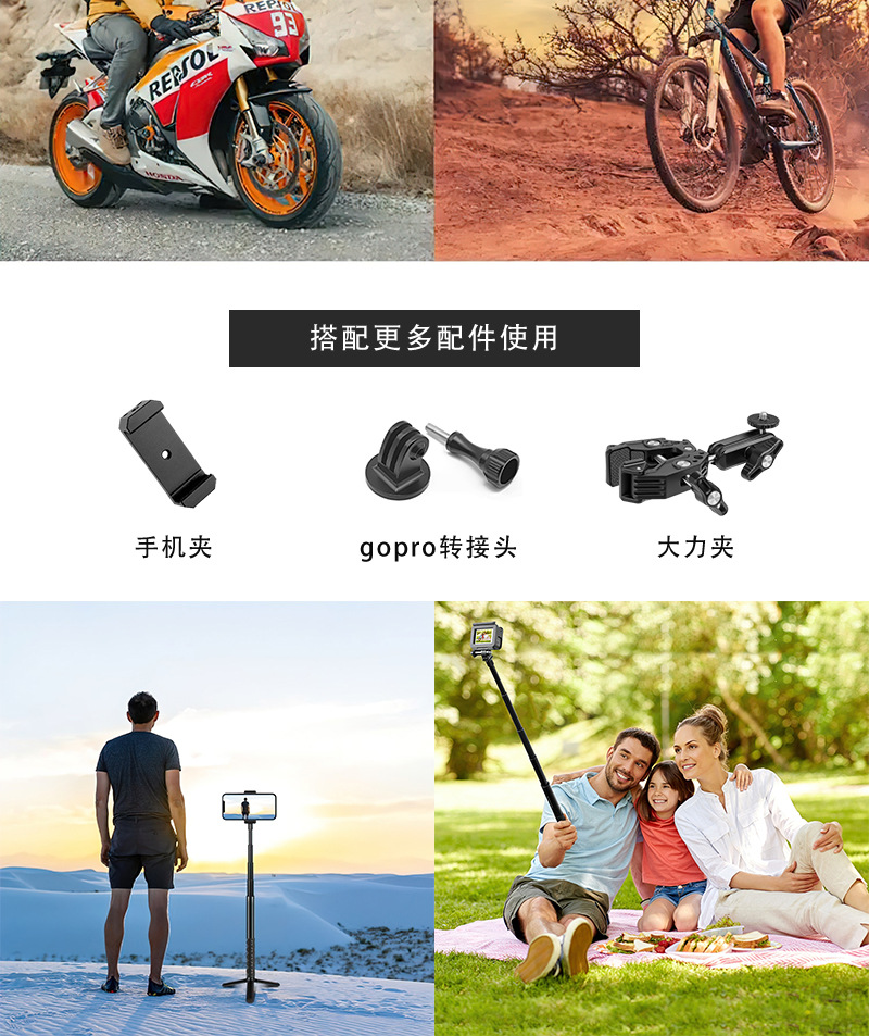 Tongkat selfie ekstensi kamera panoramic Insta360 ONE/X3, batang ekstensi alloy aluminium, gagang putar teleskopik, tersedia dalam stok