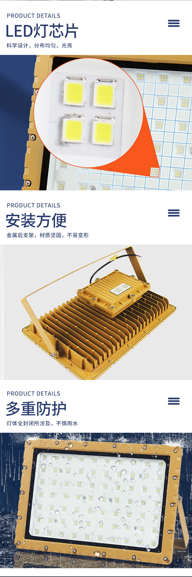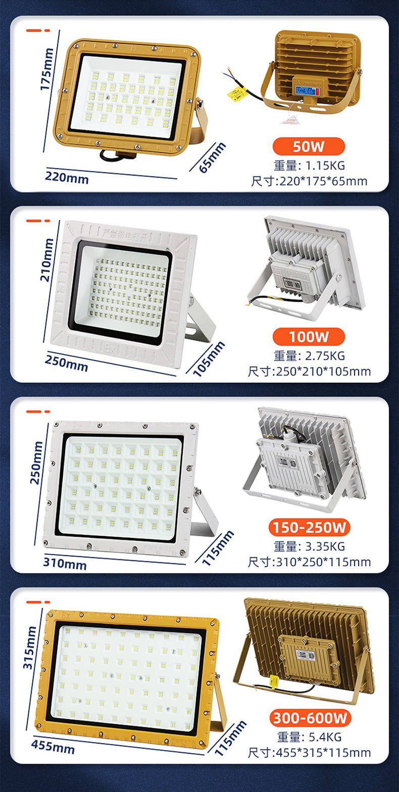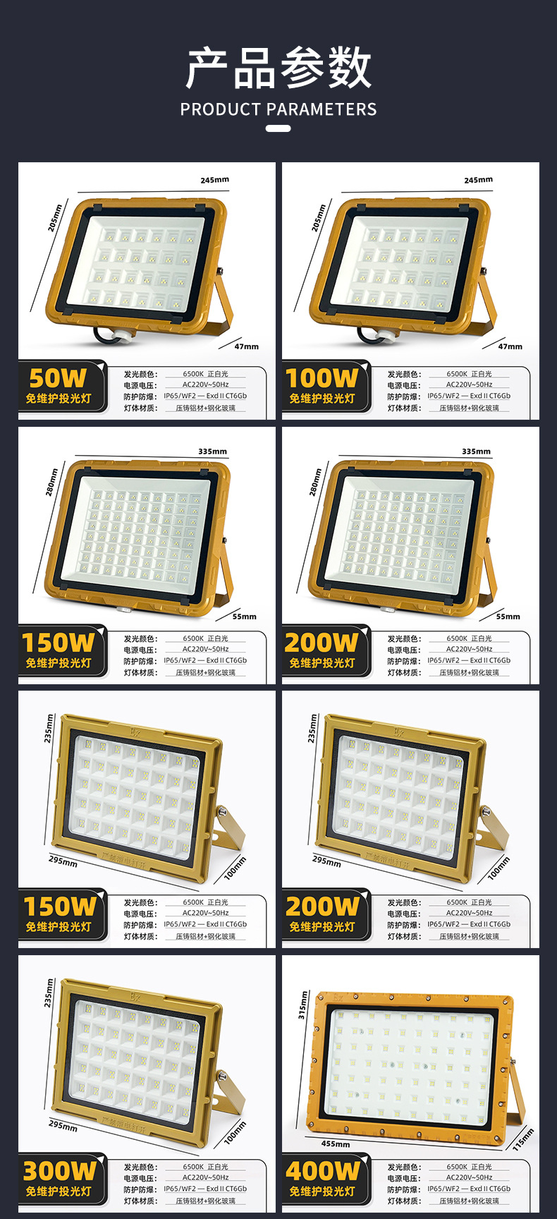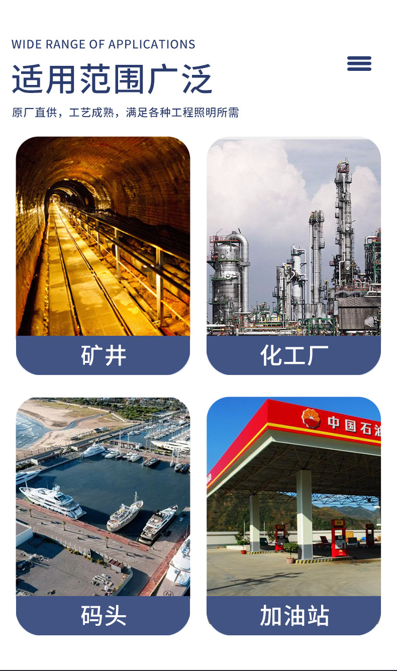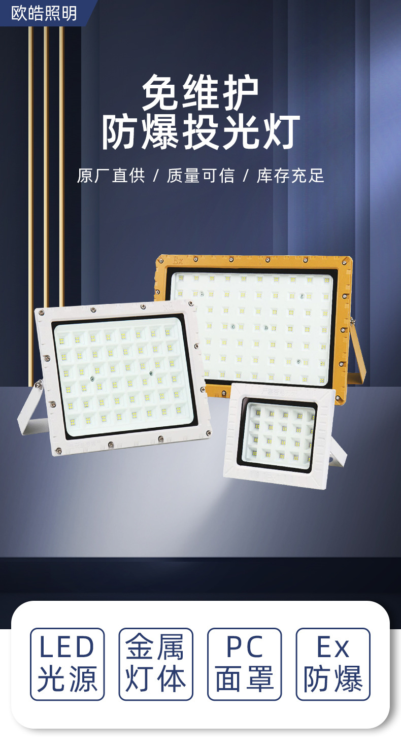 Lampu sorot LED untuk bengkel, lampu stasiun gas tahan ledakan bebas pemeliharaan, lampu sorot pabrik lampu gudang