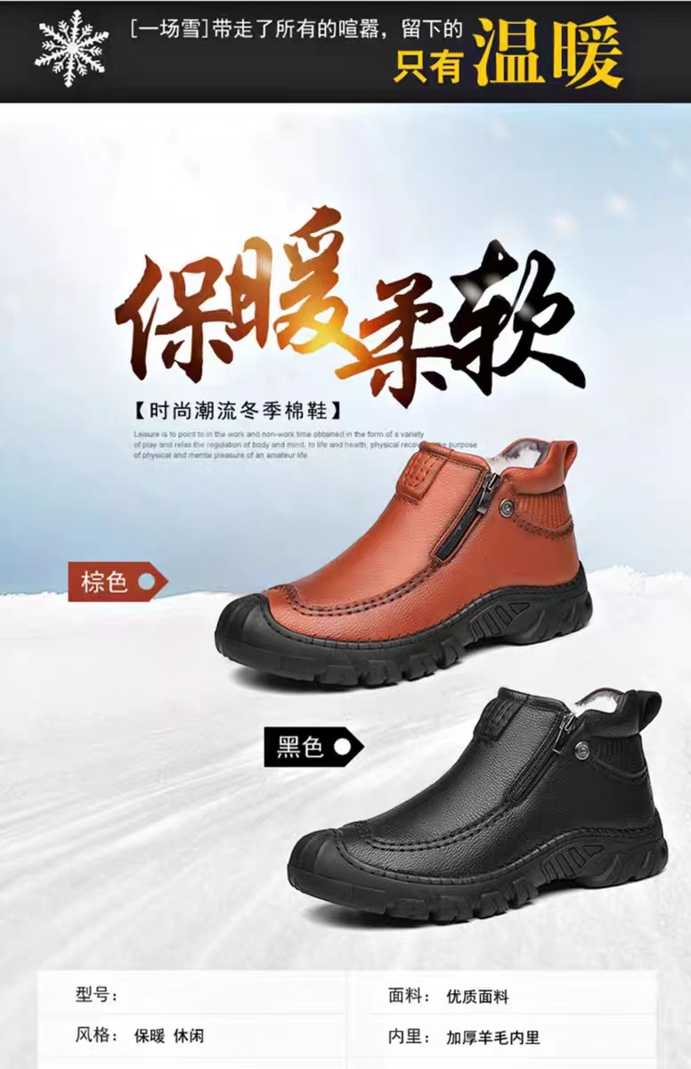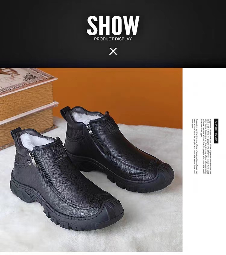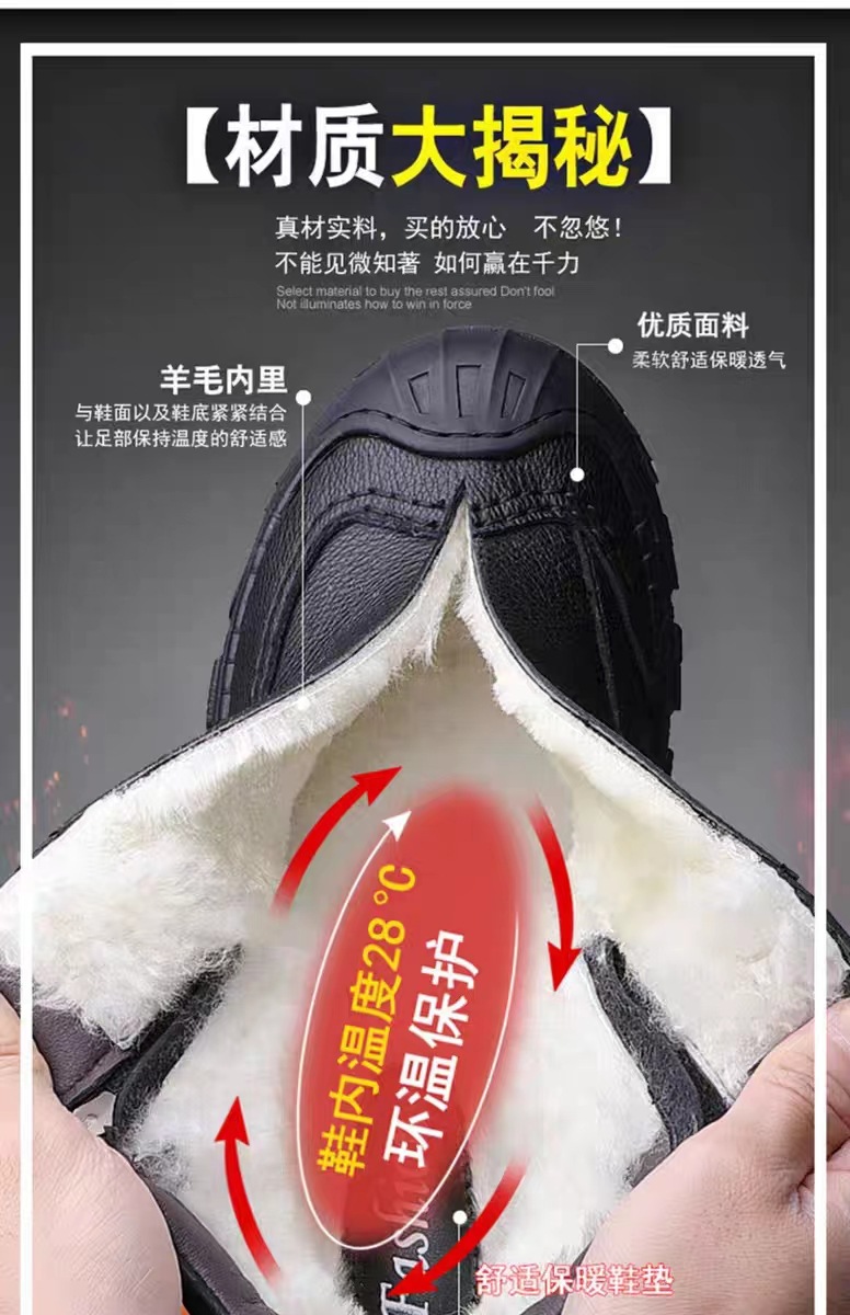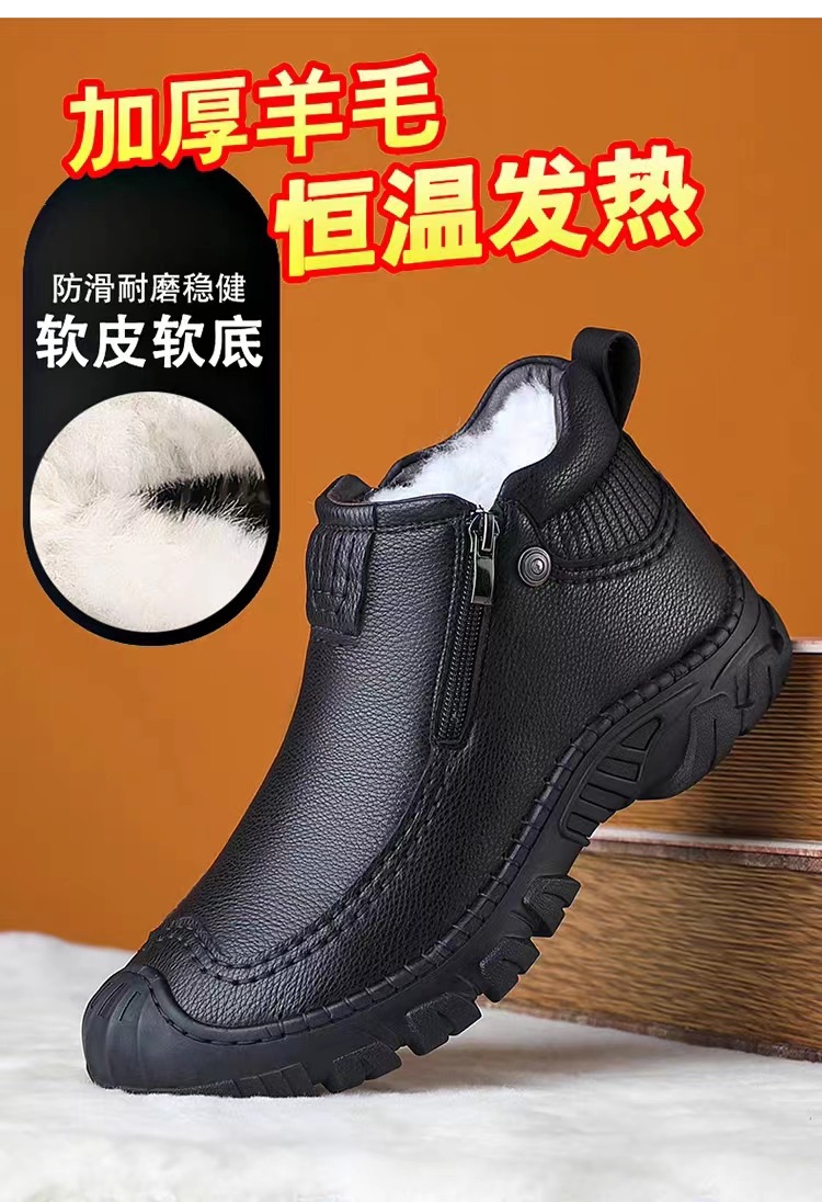 Sepatu berlapis katun pria, Kasut kulit hangat atasan tinggi kasual usia sedang dan tua, non slip terintegrasi wol tebal fleece-lined musim dingin
