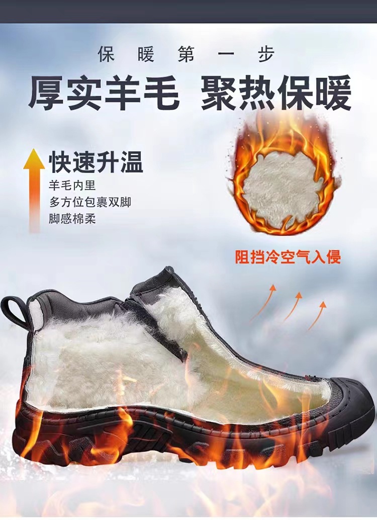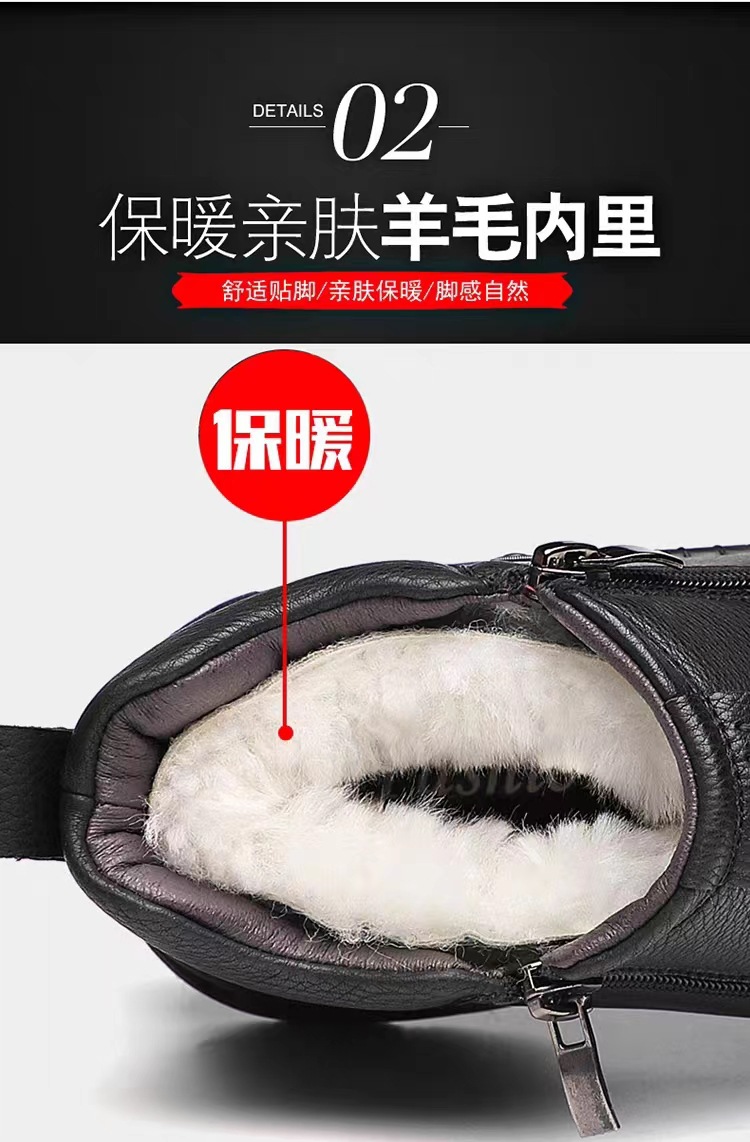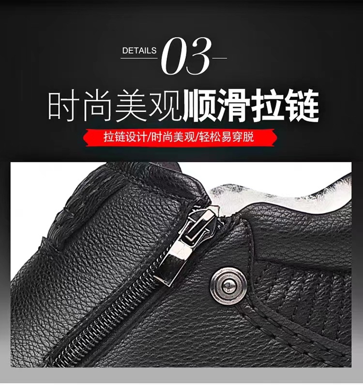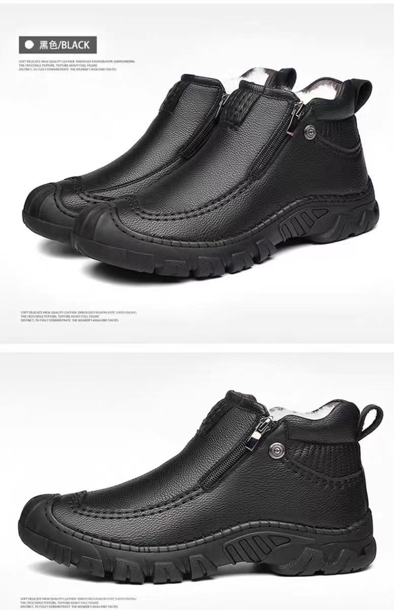 Sepatu berlapis katun pria, Kasut kulit hangat atasan tinggi kasual usia sedang dan tua, non slip terintegrasi wol tebal fleece-lined musim dingin