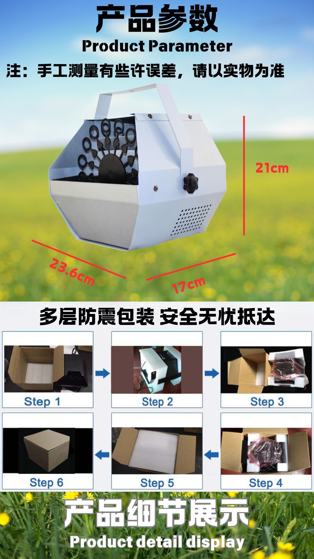 件配:提手一个、旋钮2个、说明书