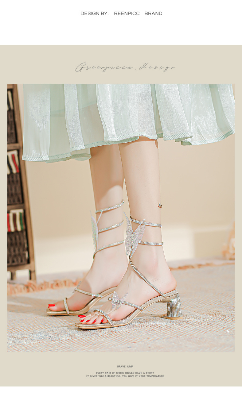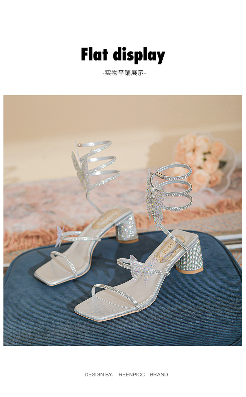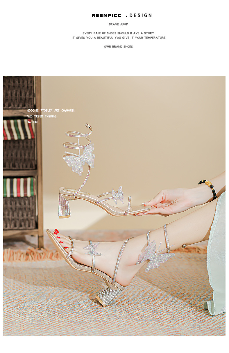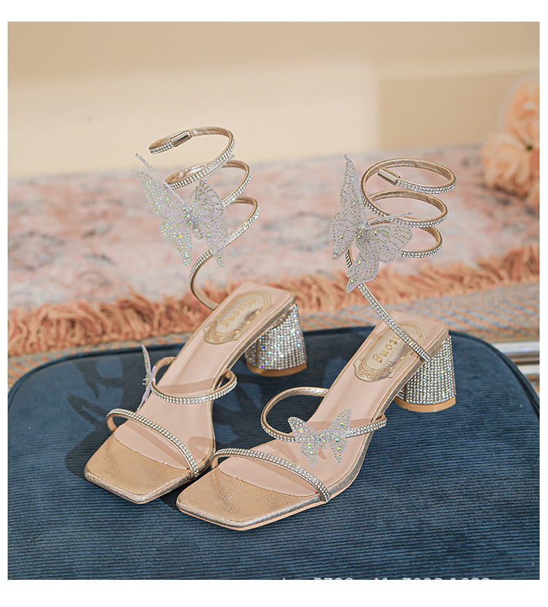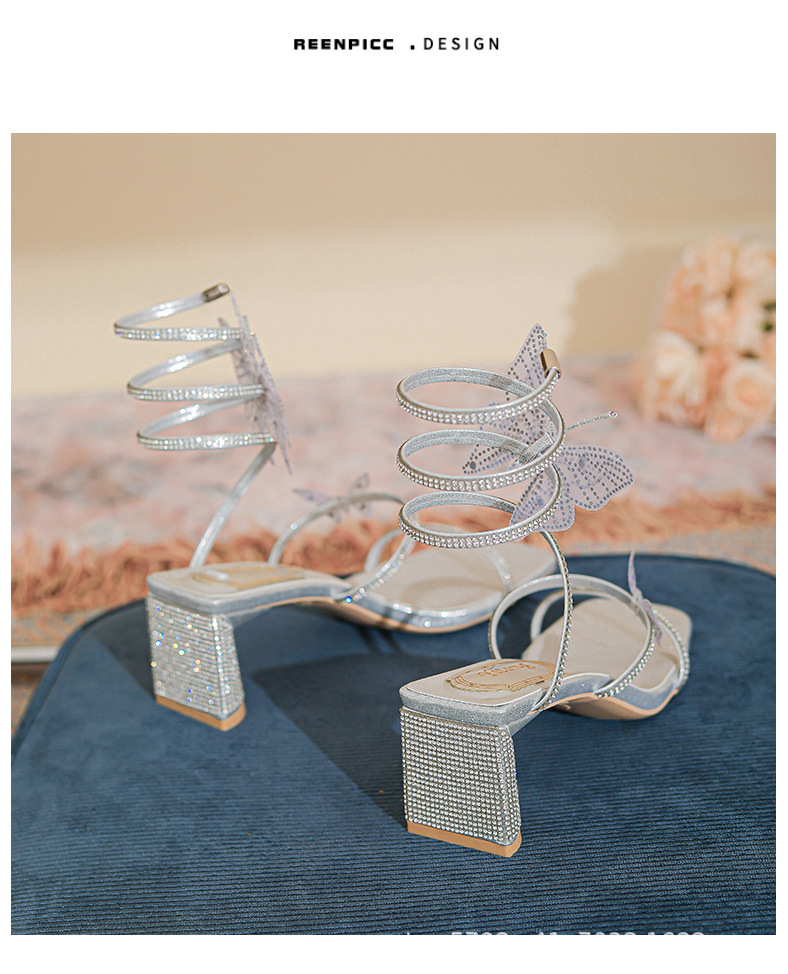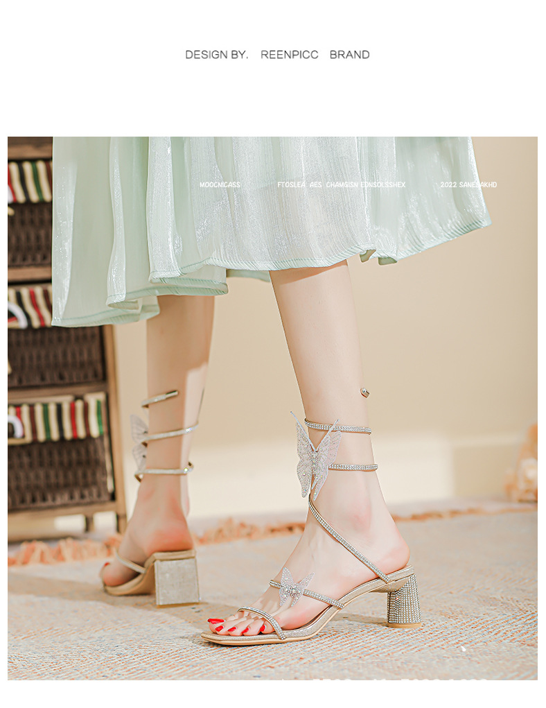 Sandal wanita, gaya peri, versi Korea baru musim panas 2025, sepatu Romawi hak tebal berbentuk ular yang trendi dan serbaguna untuk wanita.