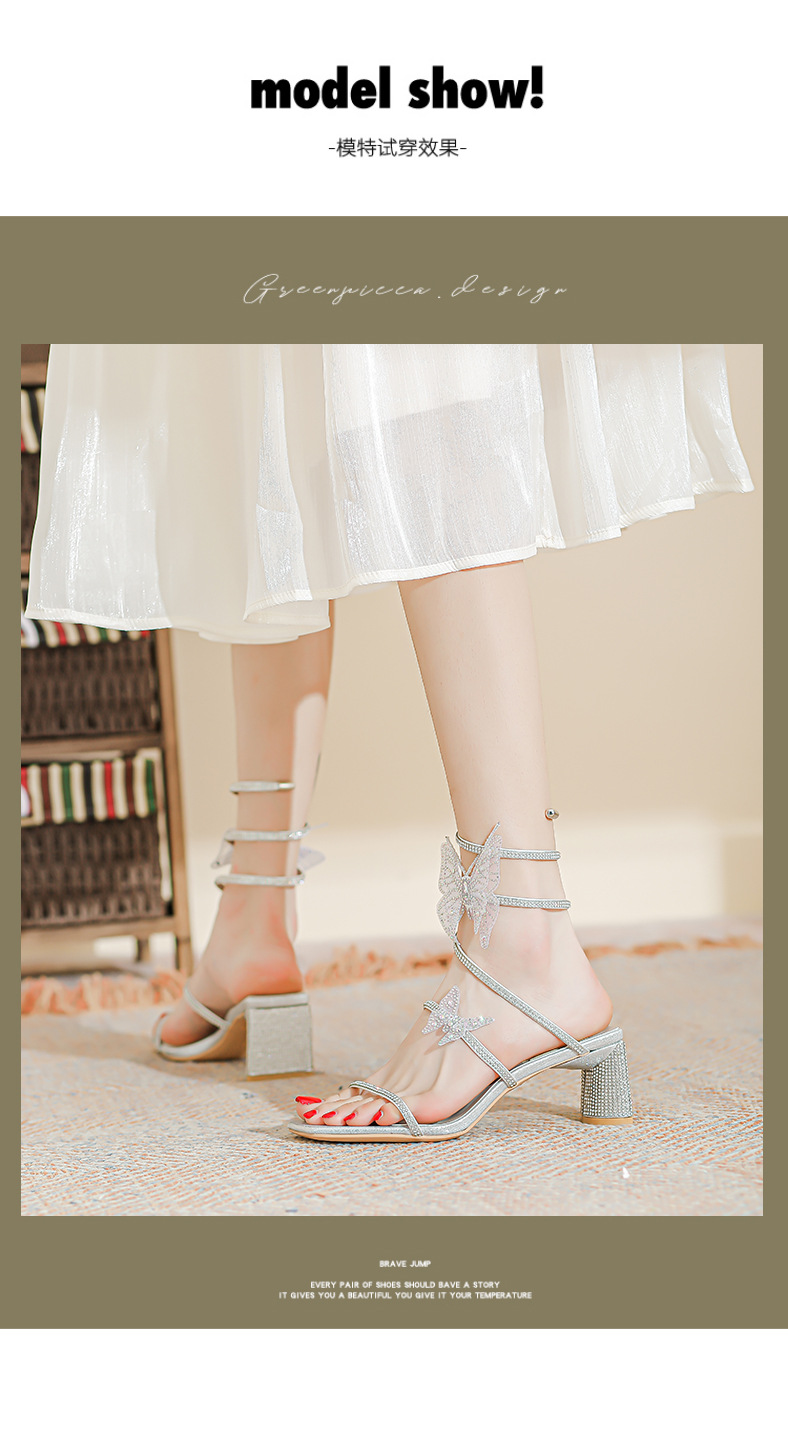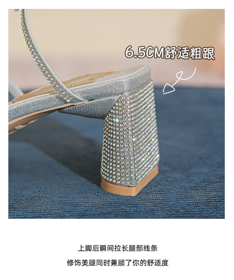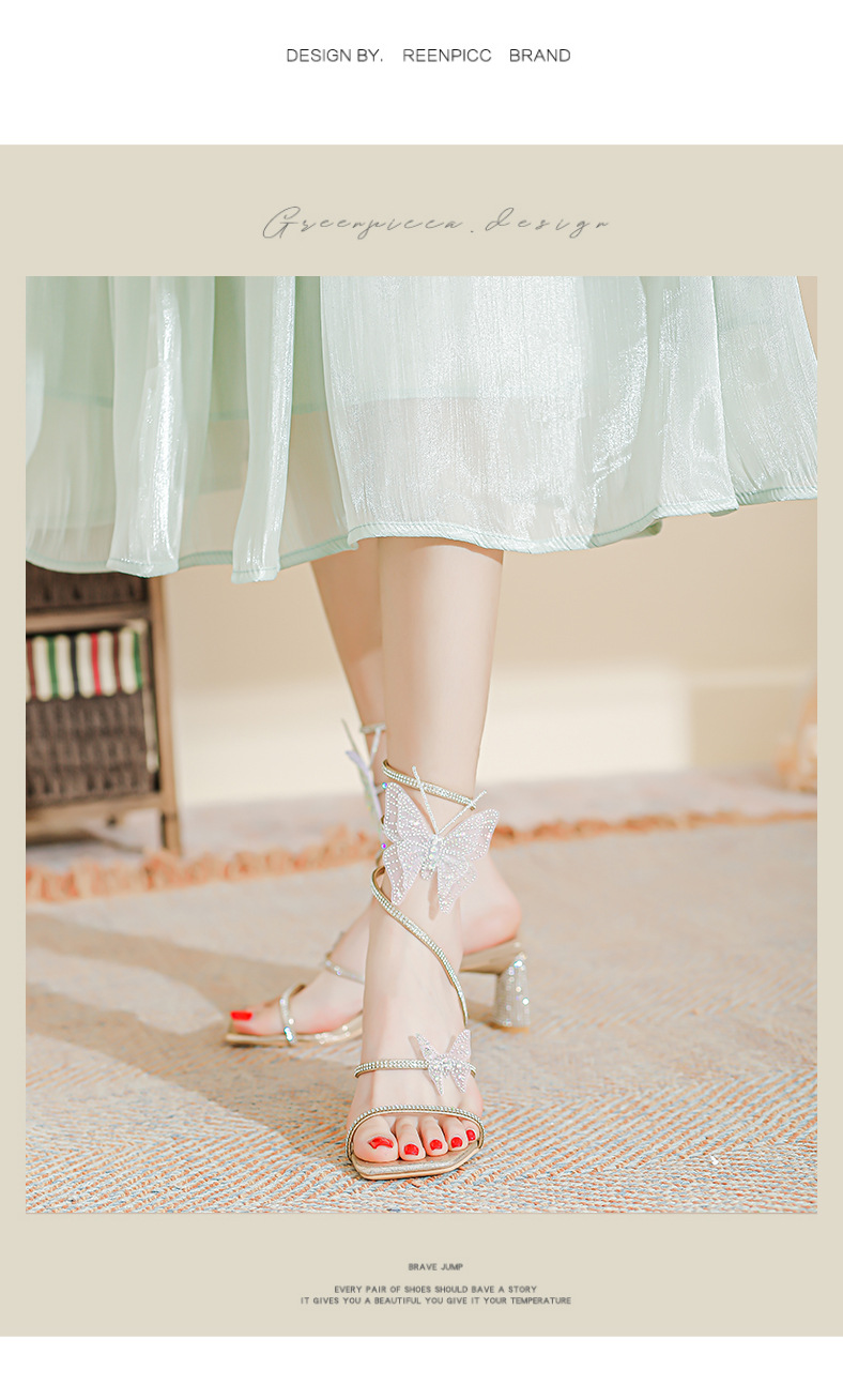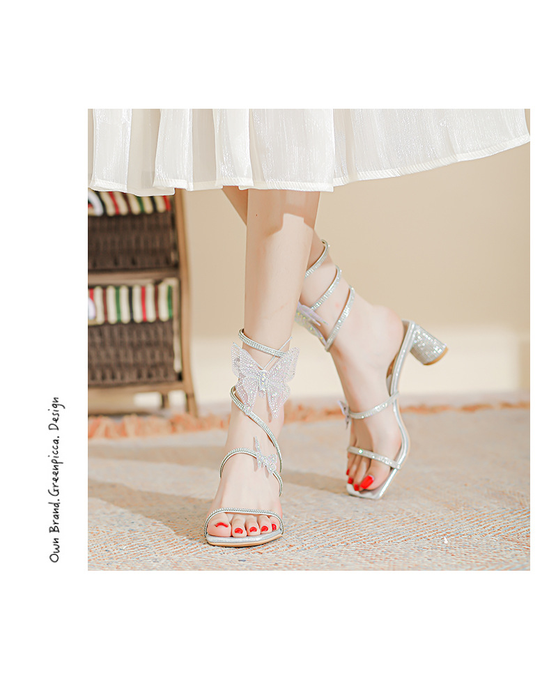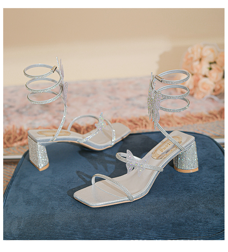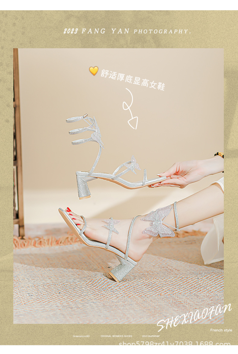 Sandal wanita, gaya peri, versi Korea baru musim panas 2025, sepatu Romawi hak tebal berbentuk ular yang trendi dan serbaguna untuk wanita.