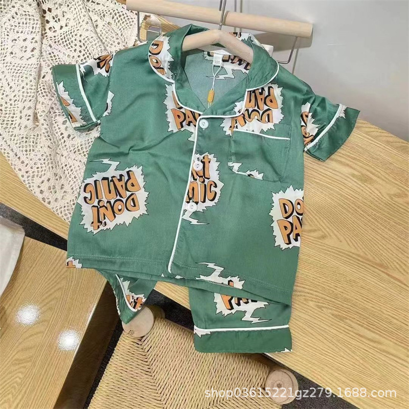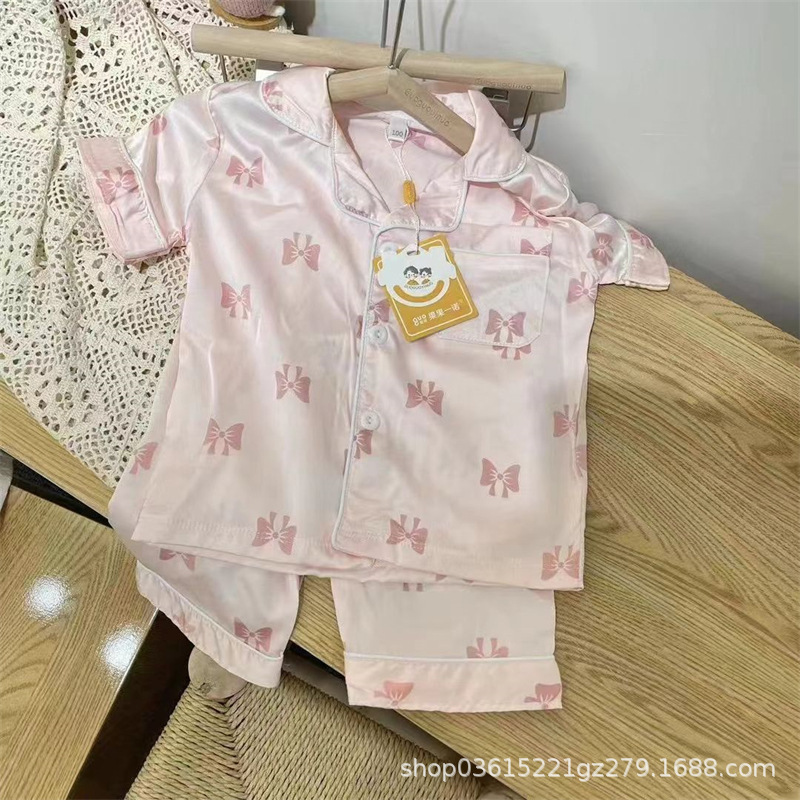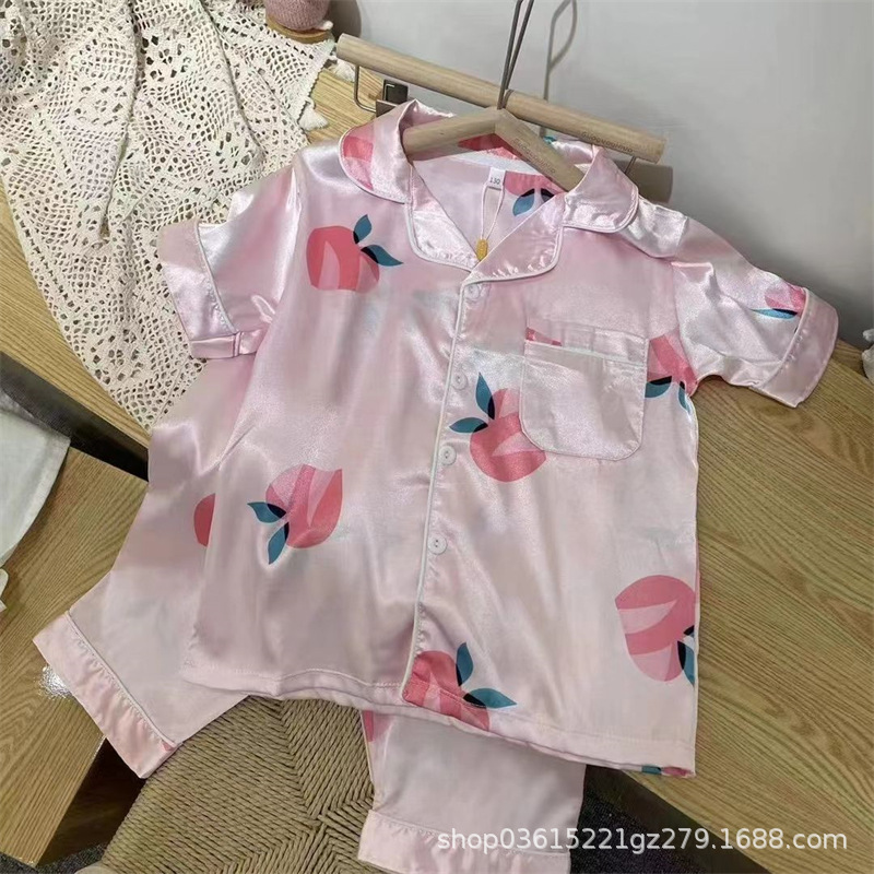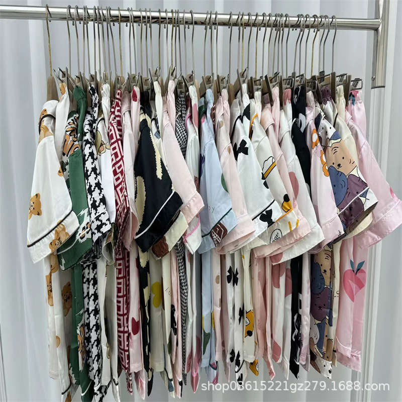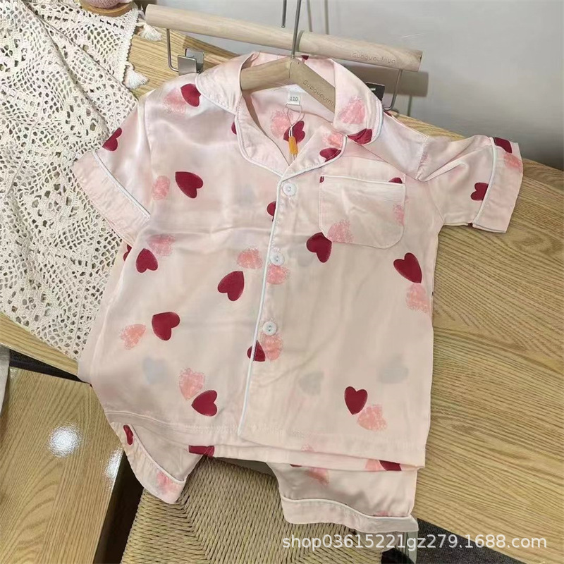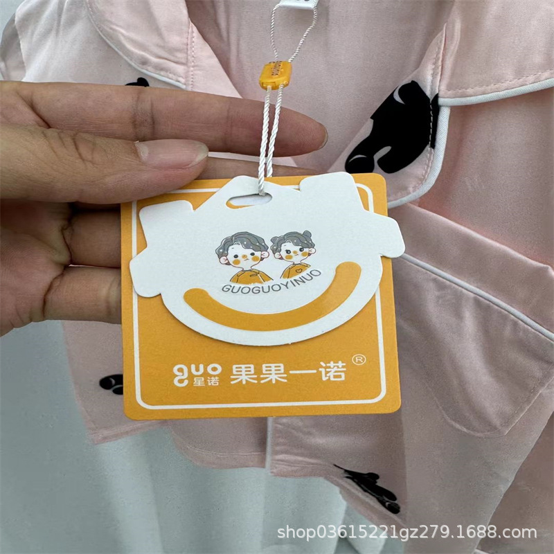 Guoguo Yinuo piama lengan pendek, baju tidur sutra es lengan pendek musim panas pelindung dada terbuka