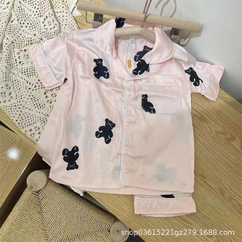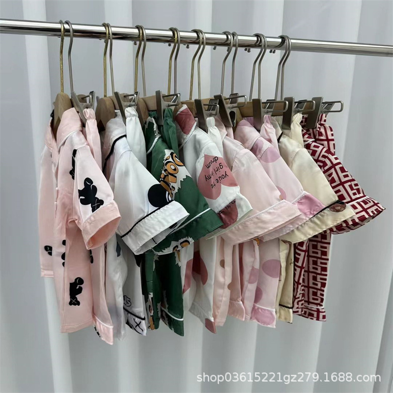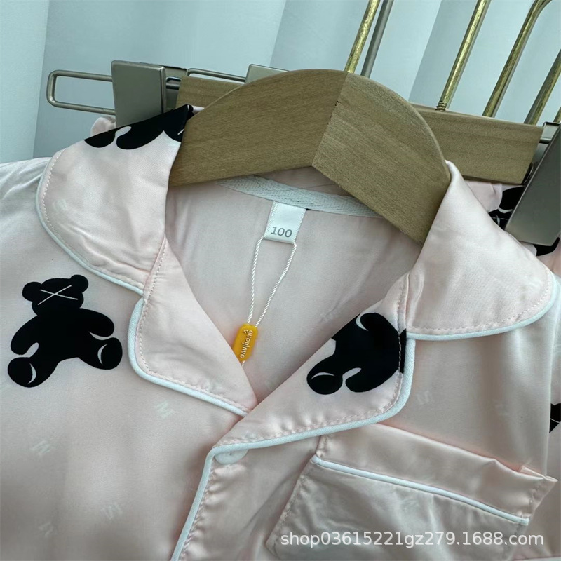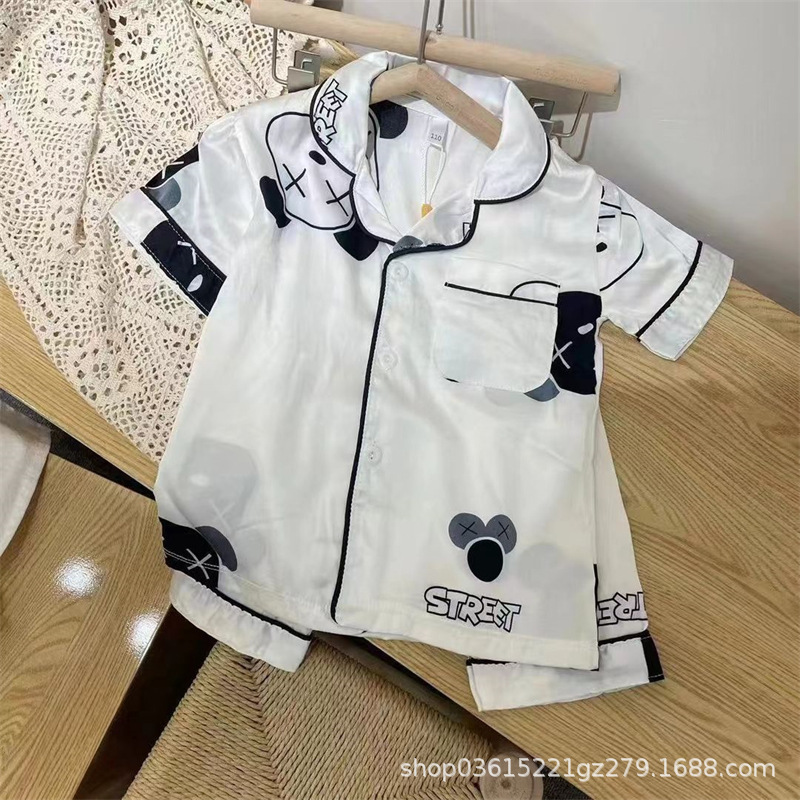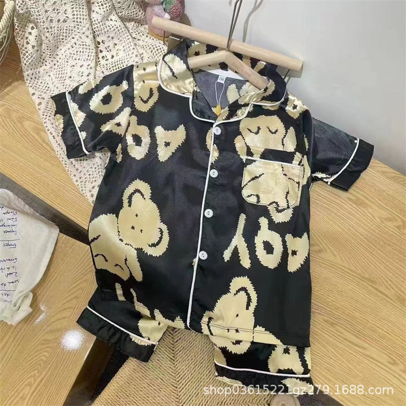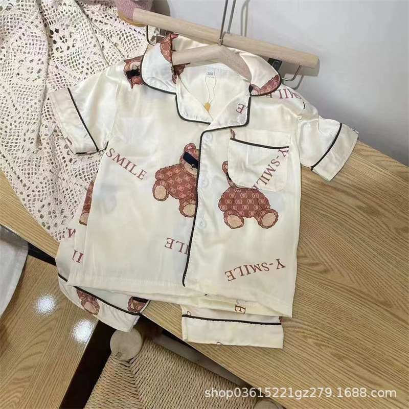 Guoguo Yinuo piama lengan pendek, baju tidur sutra es lengan pendek musim panas pelindung dada terbuka