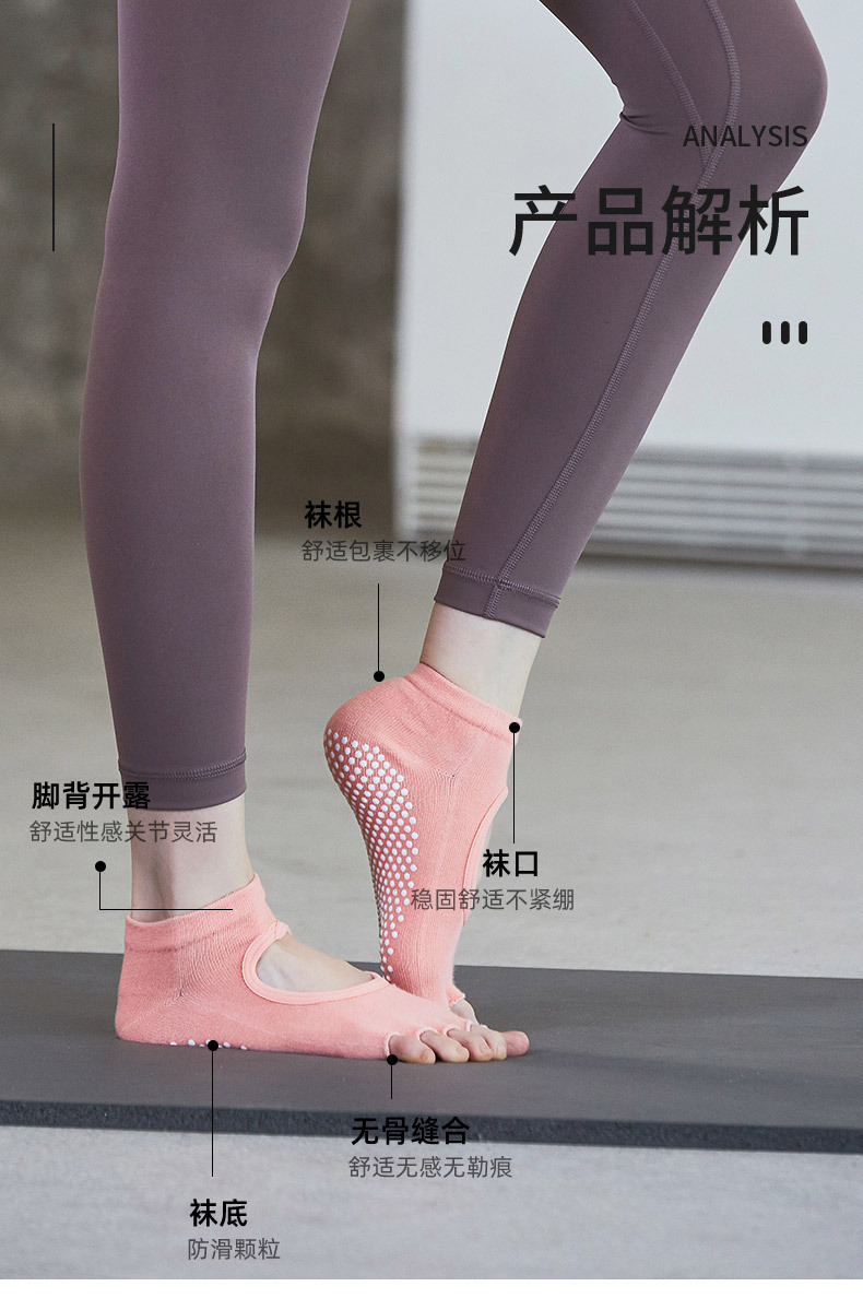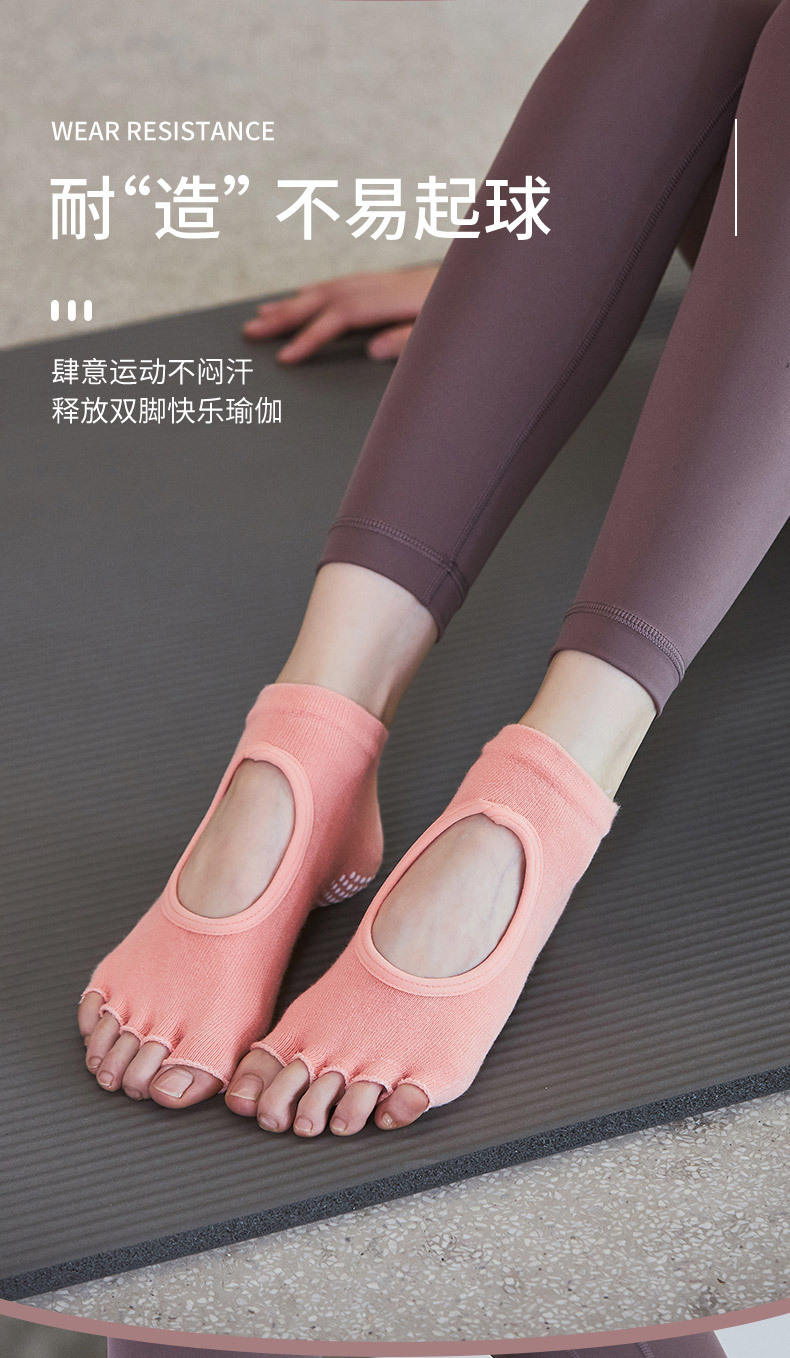瑜伽袜女防滑薄露趾露背五指普拉提袜纯色夏季健身瑜伽馆专用