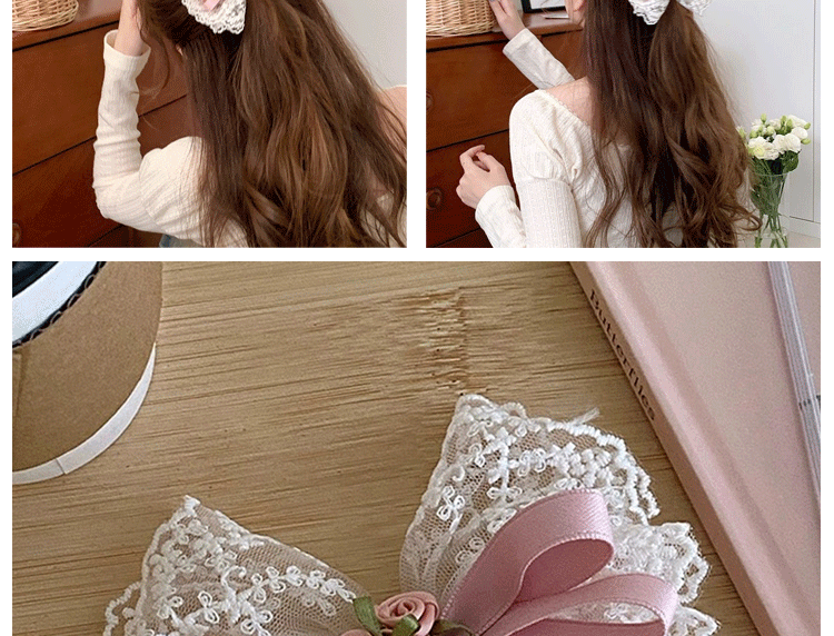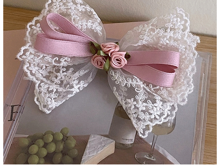 Klip bebek renda indah musim semi dan musim panas klip rambut setengah dasi selebriti internet manis aksesori rambut busur suasana bunga