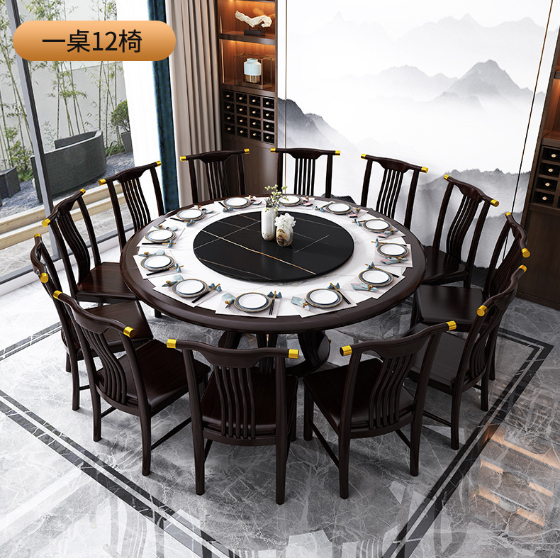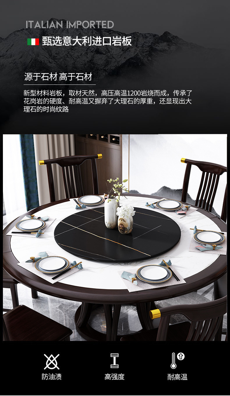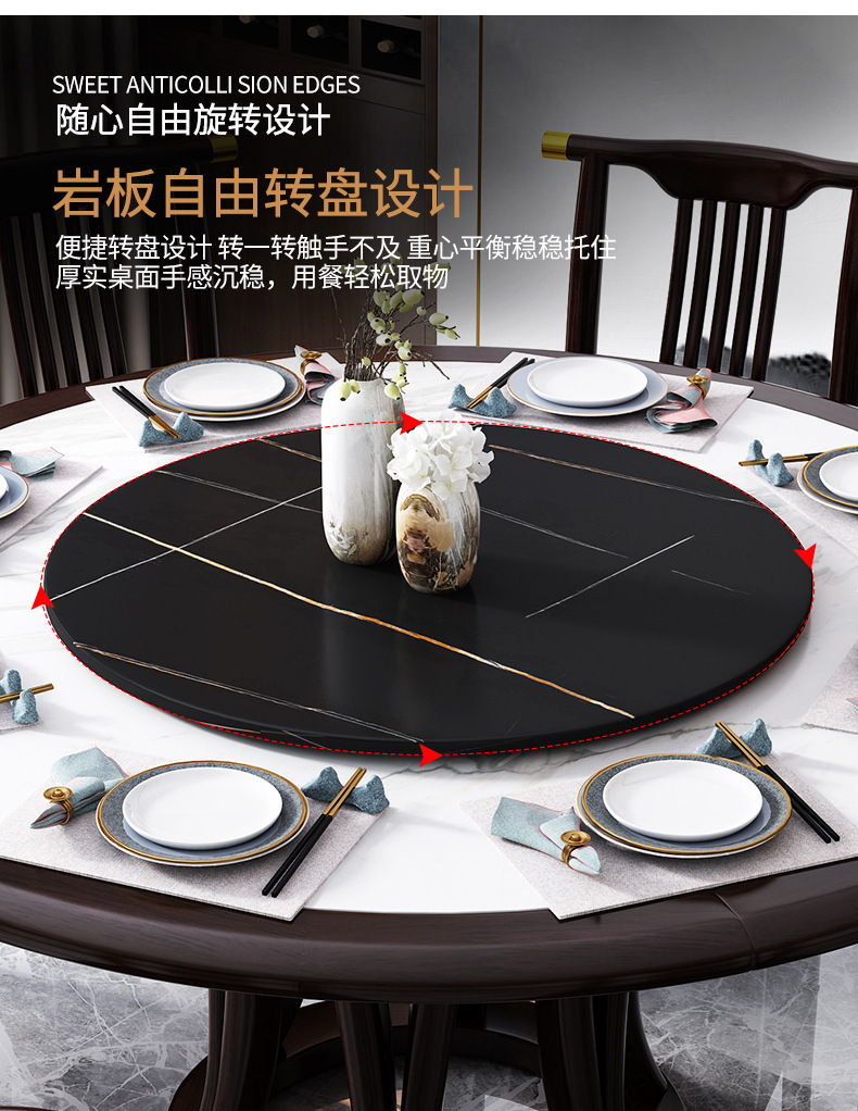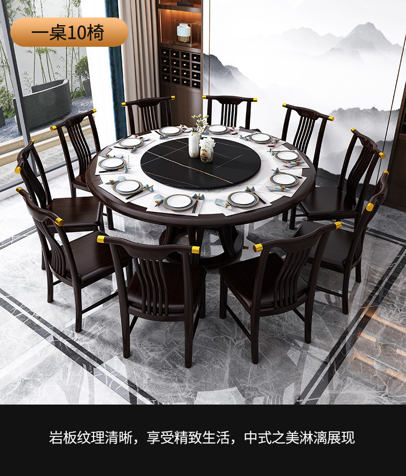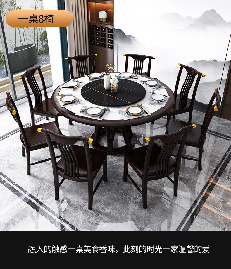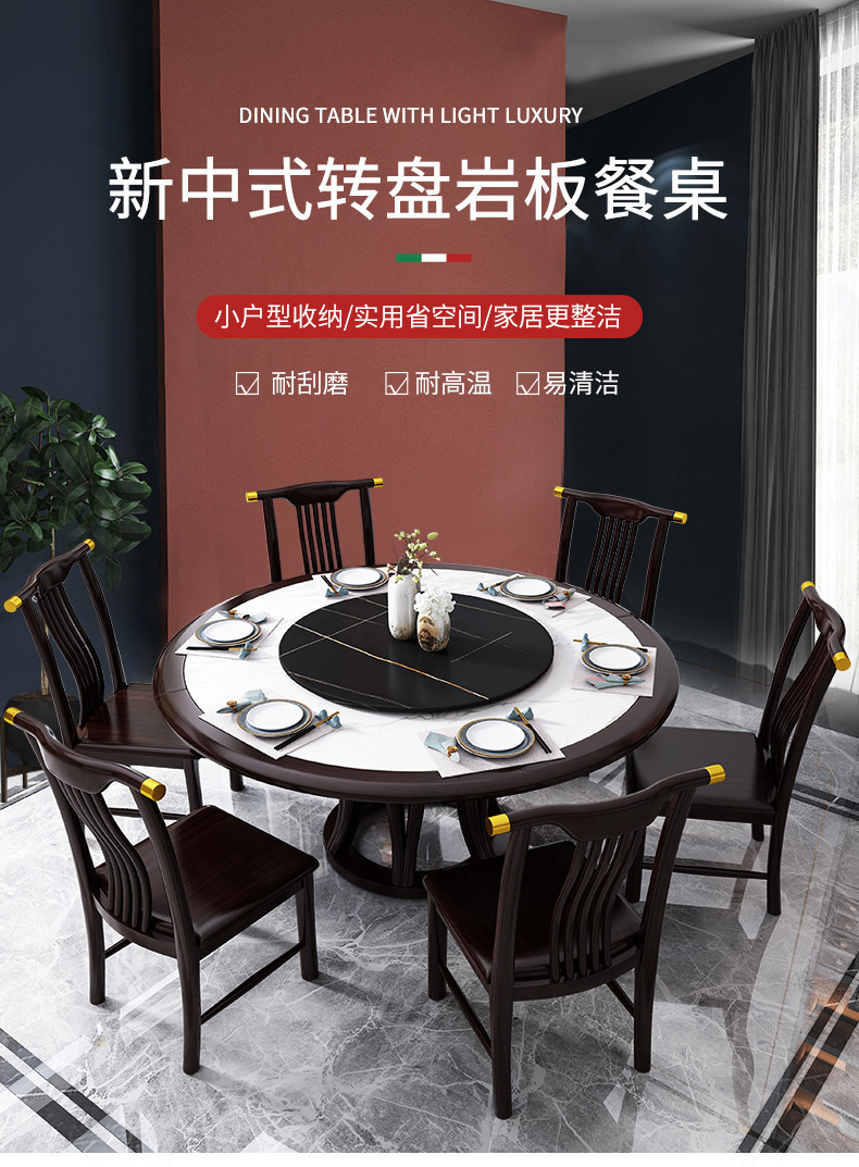 现代简约岩板餐桌椅组合新中式家用大小户型吃饭桌子实木轻奢圆桌