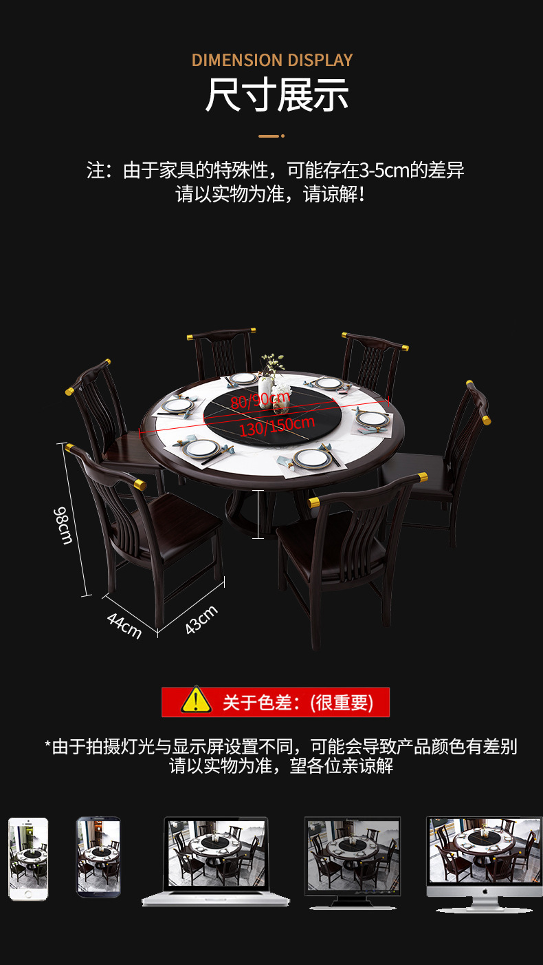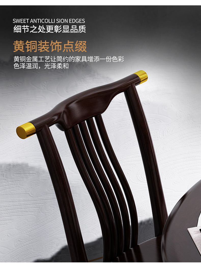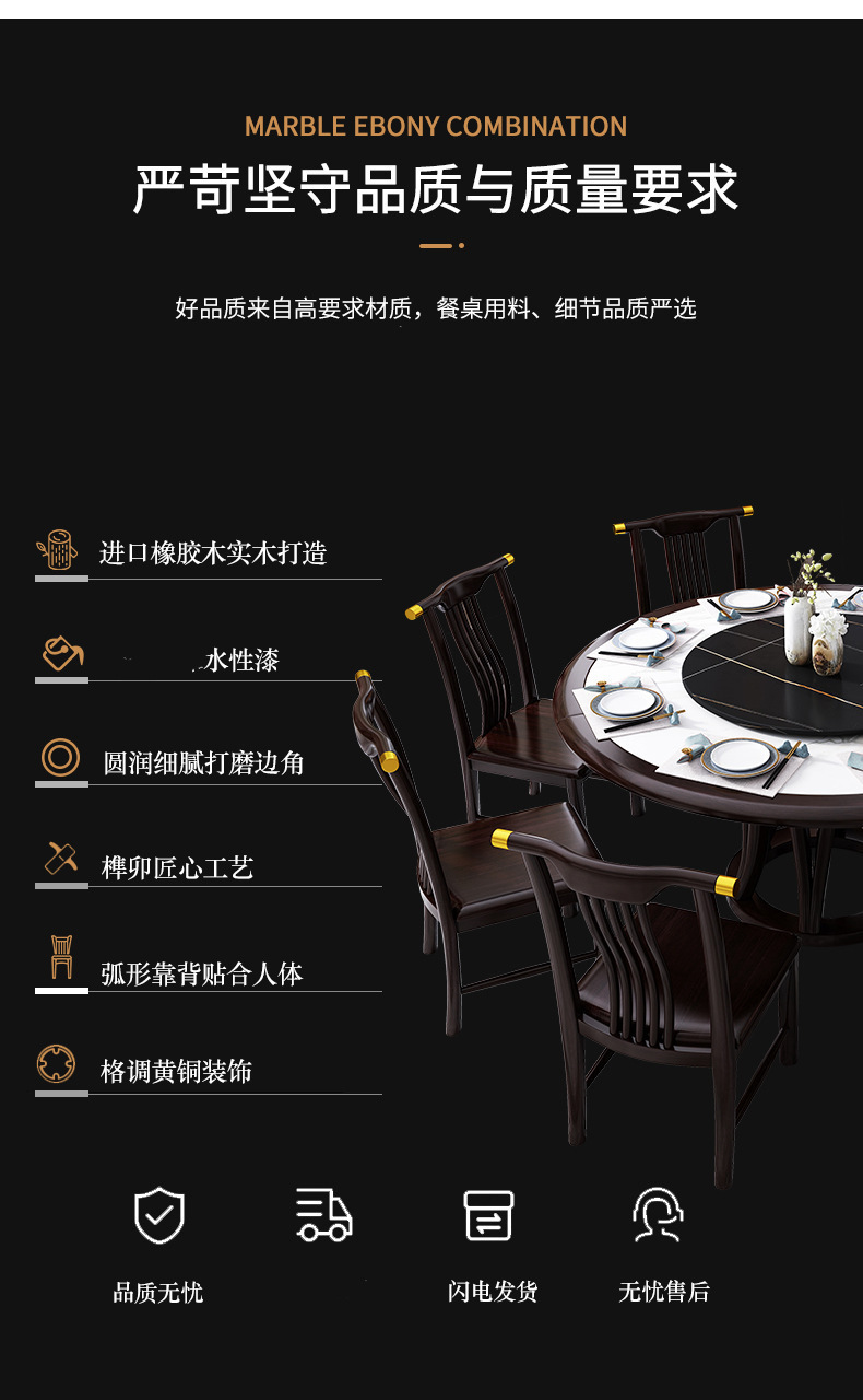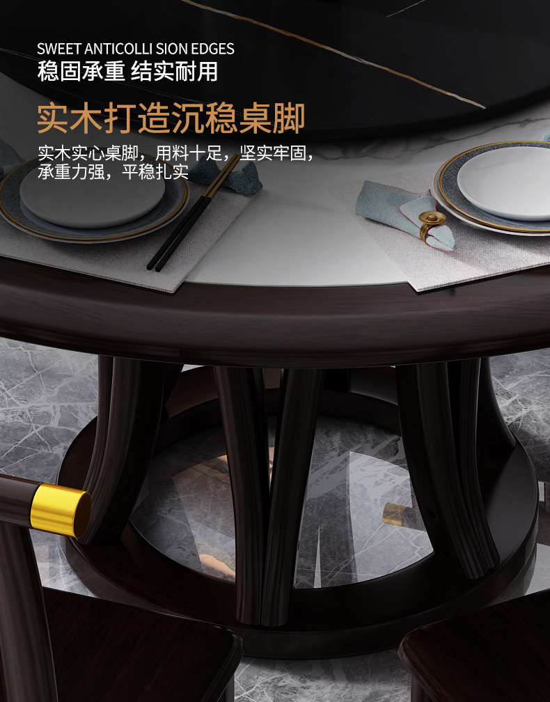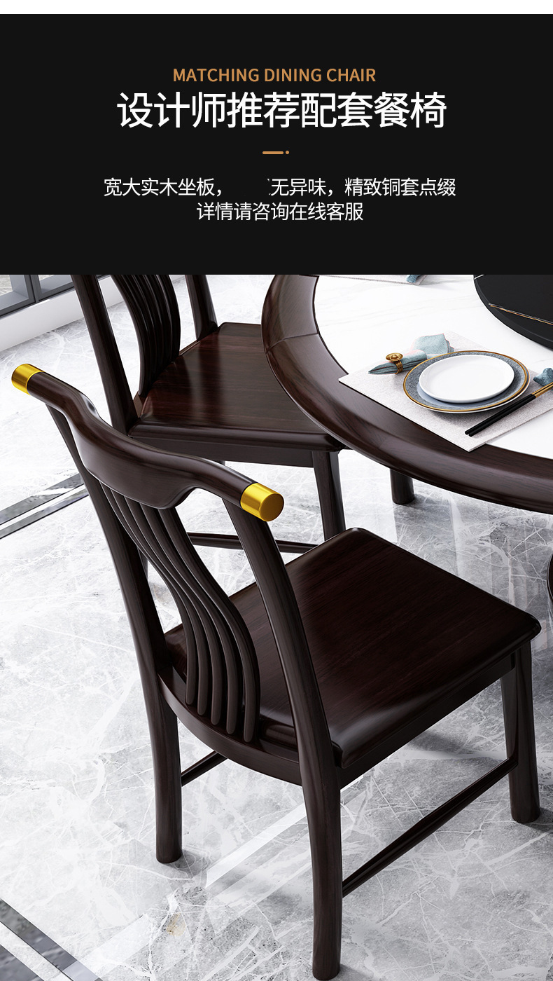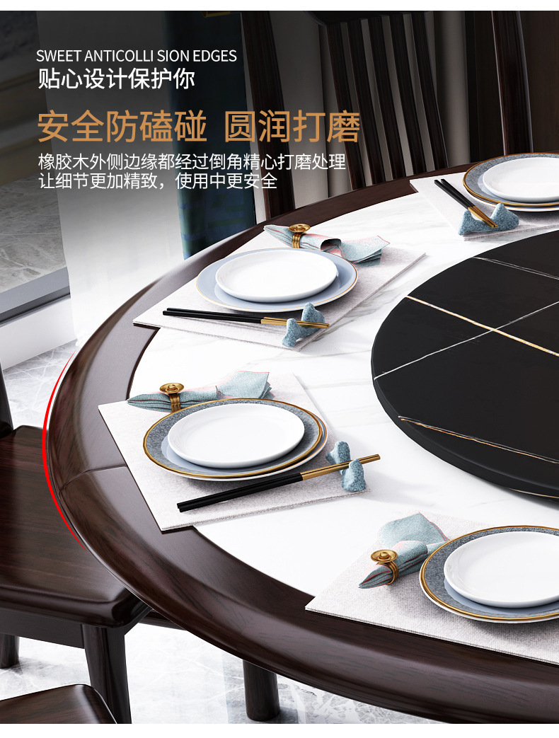 现代简约岩板餐桌椅组合新中式家用大小户型吃饭桌子实木轻奢圆桌