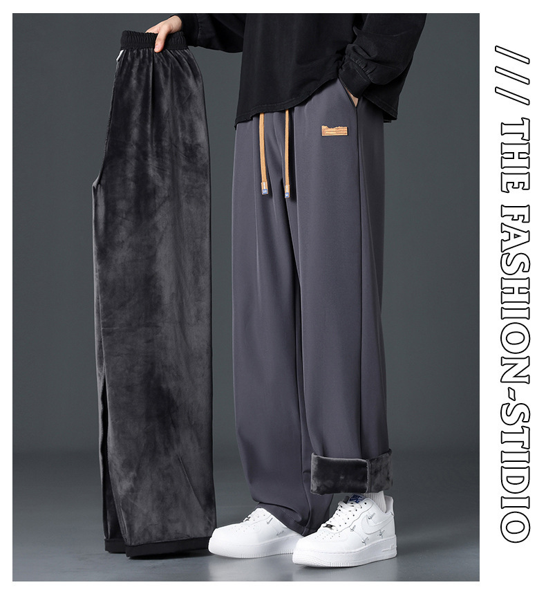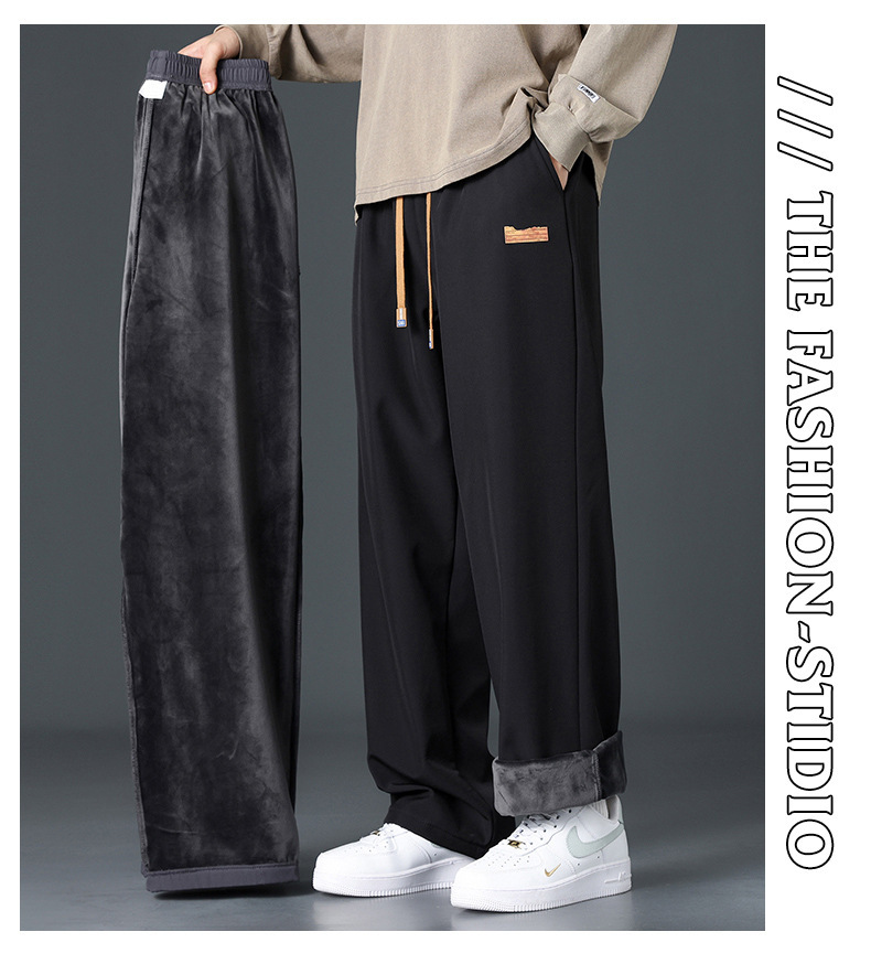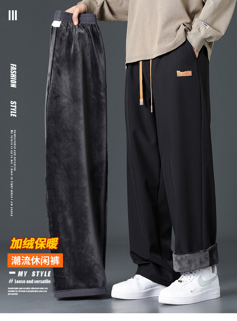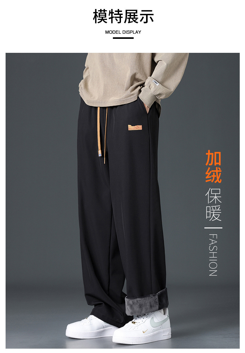 NASA celana olahraga pria, celana olahraga kaki lebar berlapis bulu longgar kasual lurus menggantung baru musim gugur dan musim dingin 2023