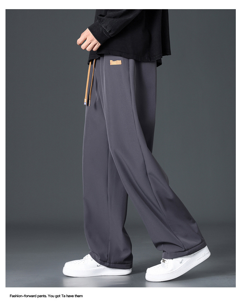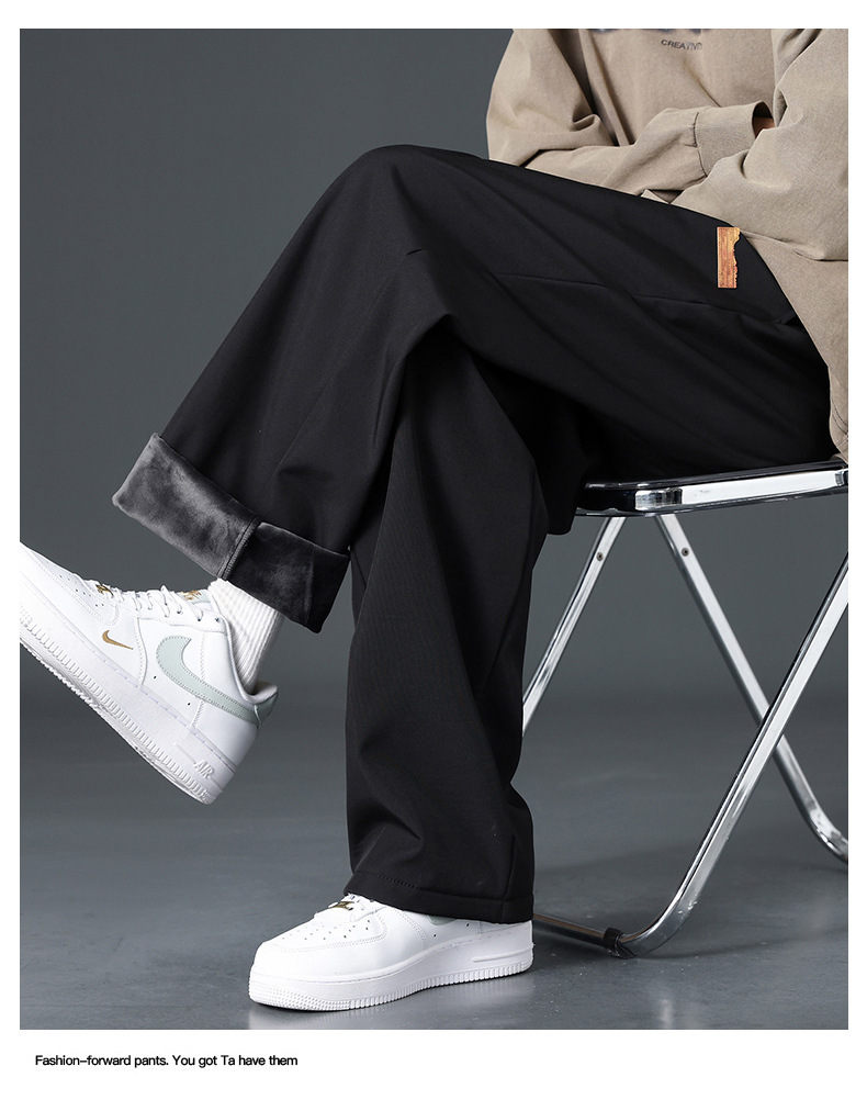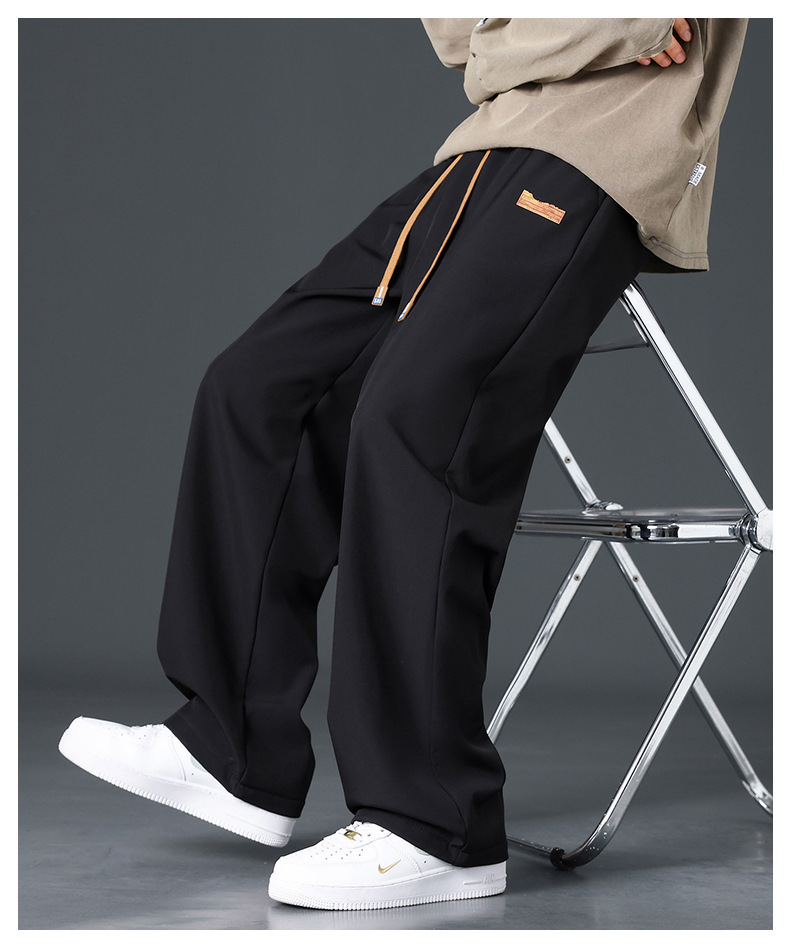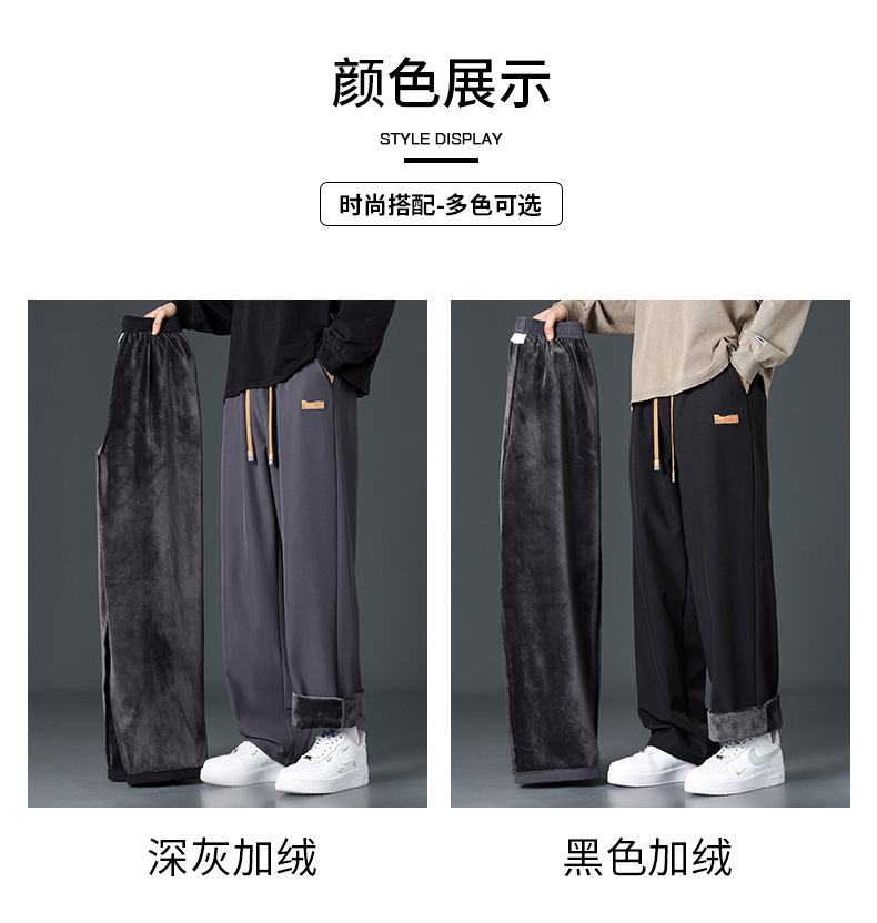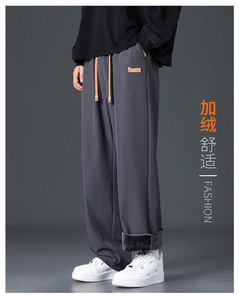 NASA celana olahraga pria, celana olahraga kaki lebar berlapis bulu longgar kasual lurus menggantung baru musim gugur dan musim dingin 2023