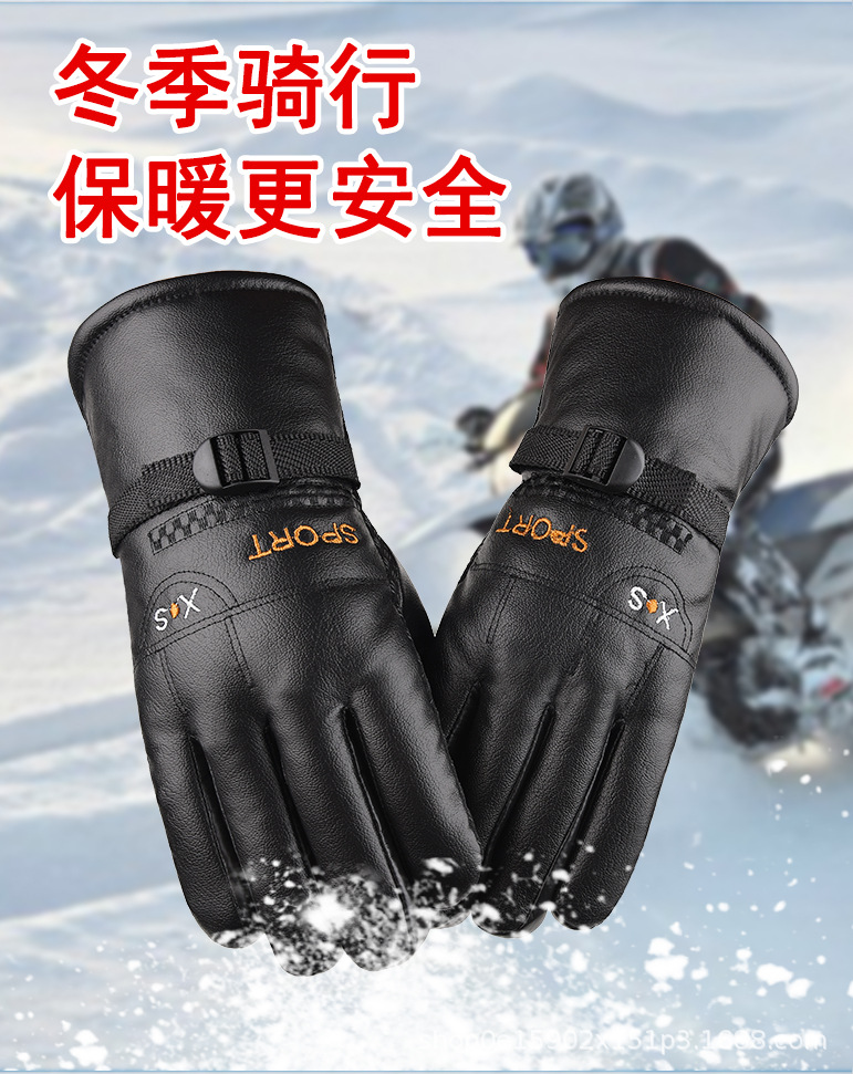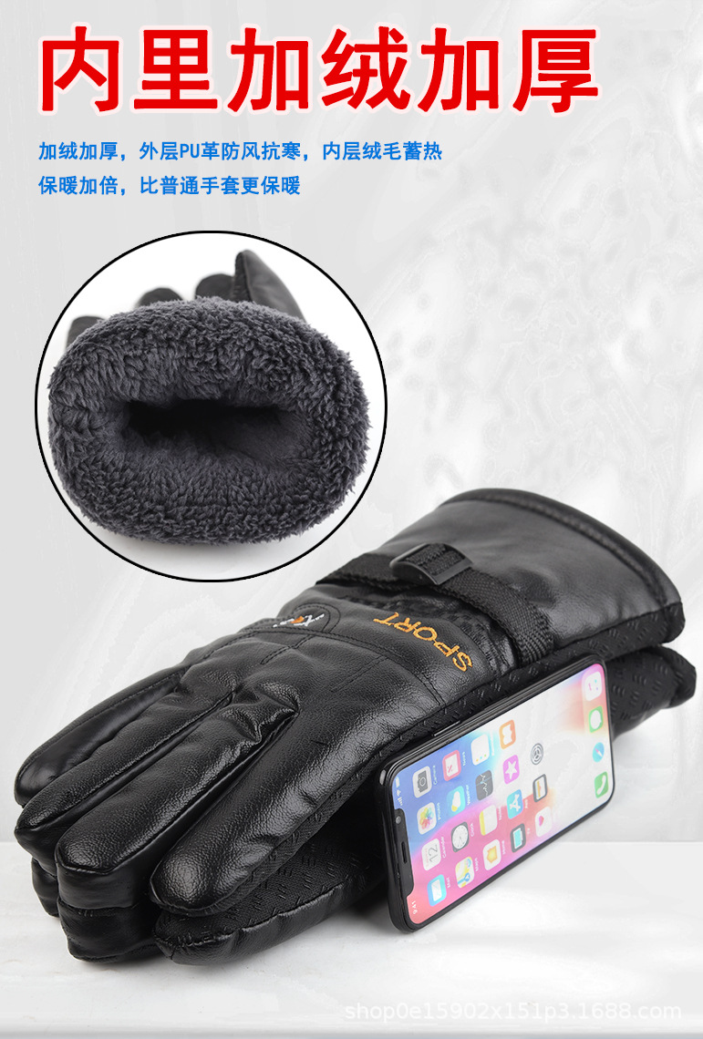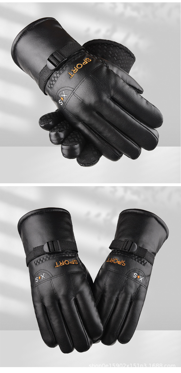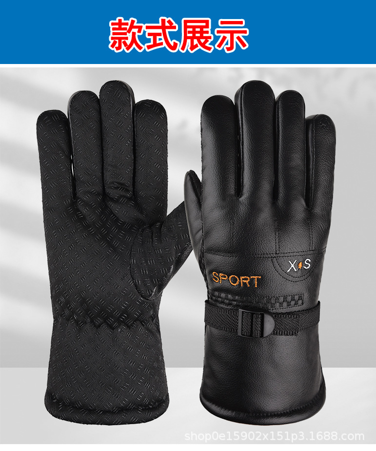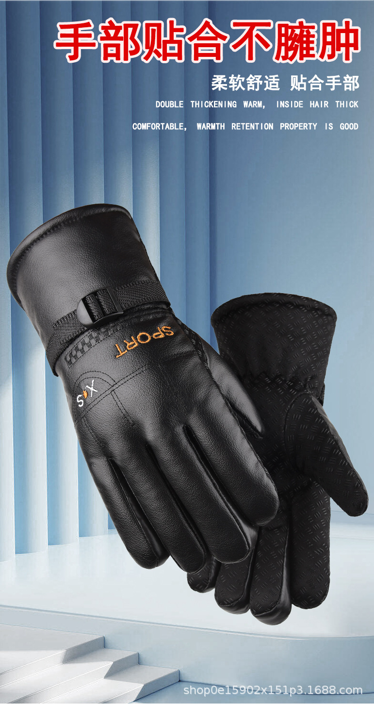 Sarung tangan berkendara motor katun PU pria, tahan dingin-40 ° tahan air hangat anti-beku tebal
