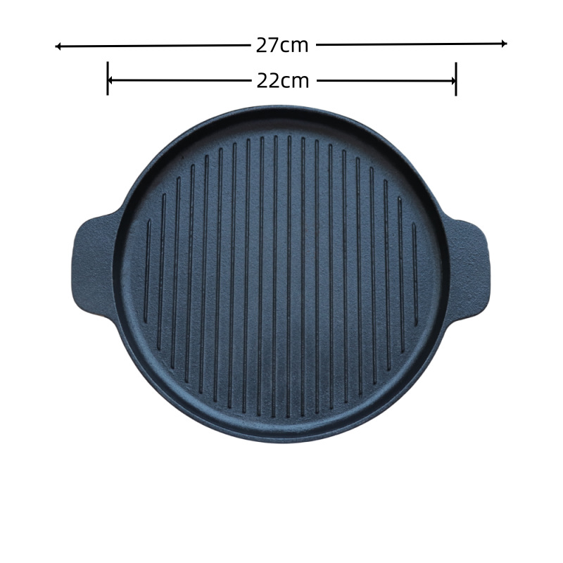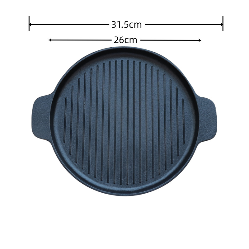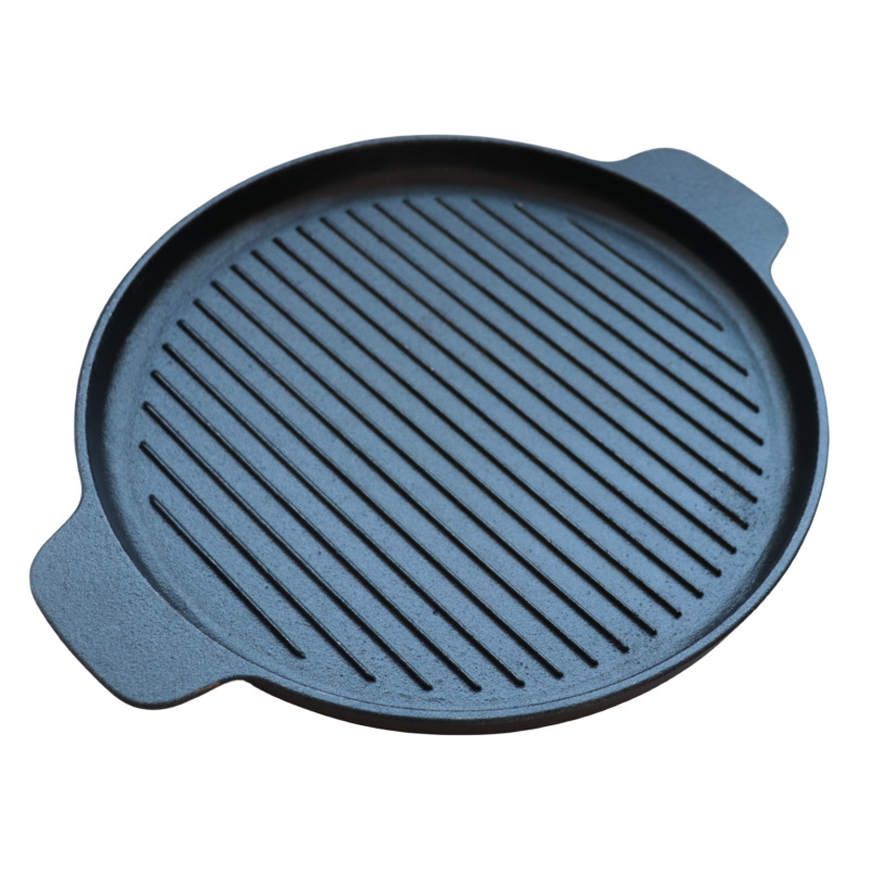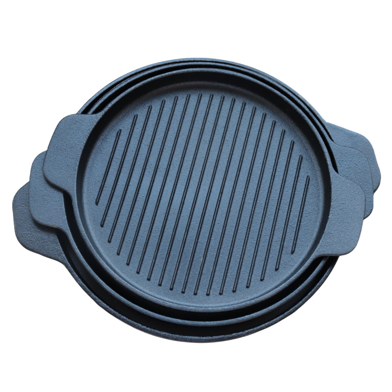 Piring panggang steak dari besi cor dengan dua pegangan, motif gelombang, piring barbeque, piring panggang bergaris horizontal, piring tusuk sate bundar, teppanyaki untuk luar ruangan, penjualan langs...